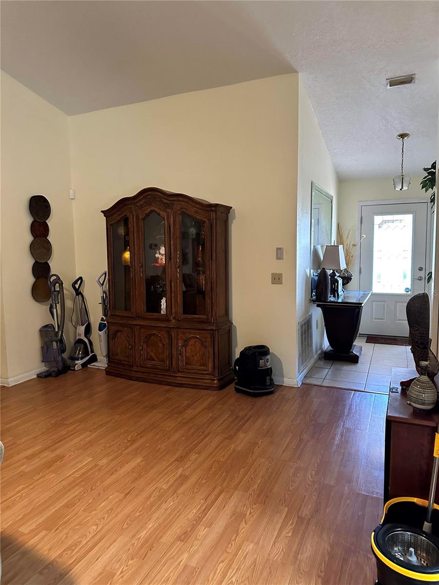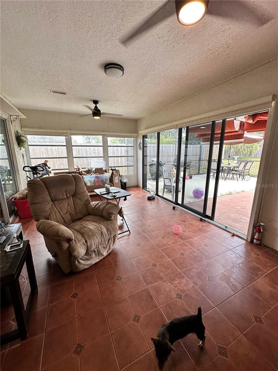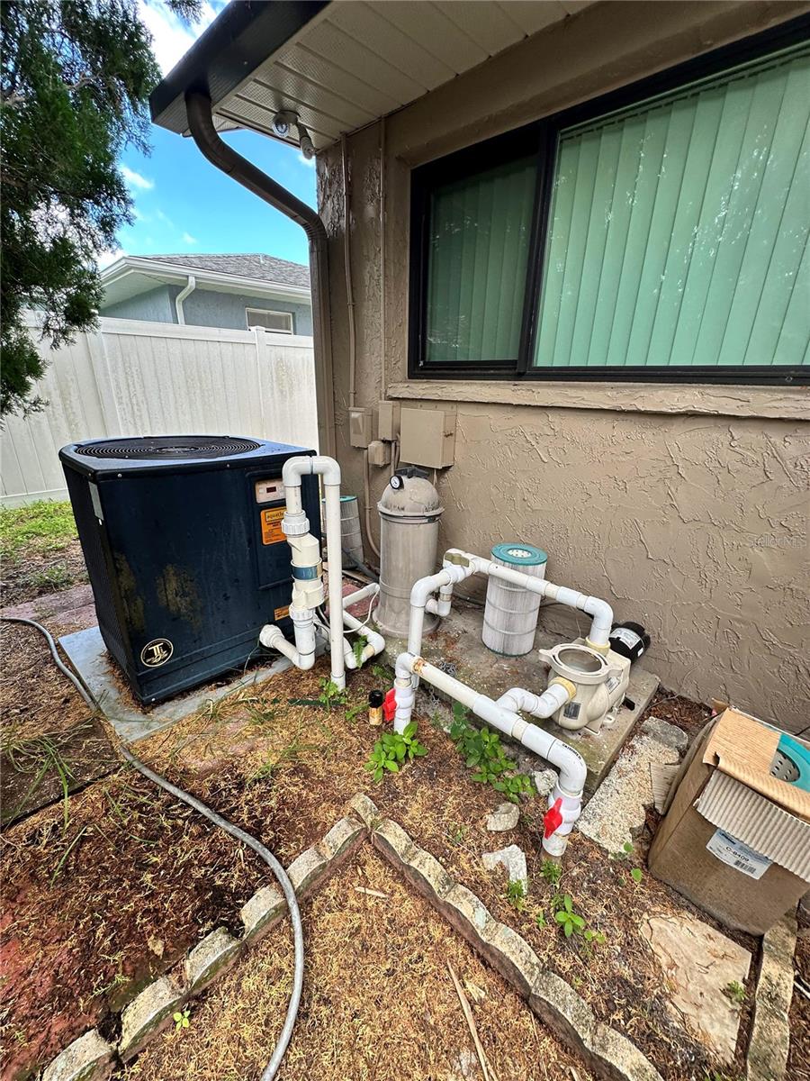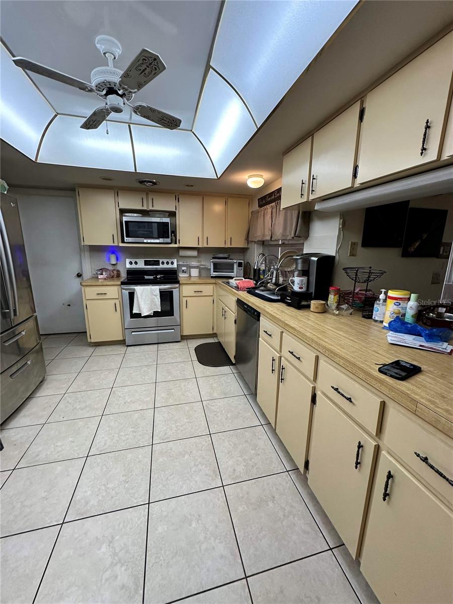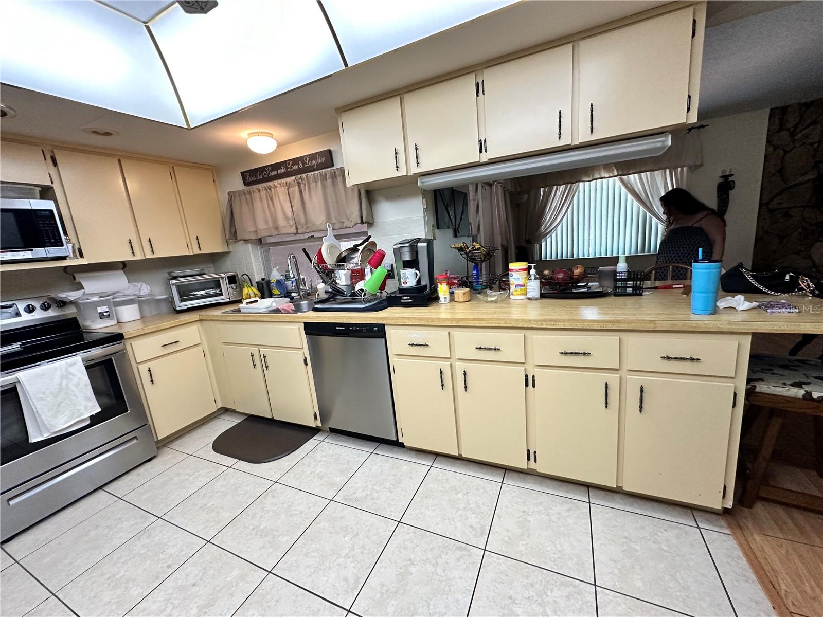 Great Open Floor Plan - Den with French Doors - Laminate & Tile Flooring, Split Bedrooms + Den / Study could be 3rd Bedroom & Beautiful newly refinished In-ground Pool too! Spacious family room with Stone Wood Burning Fireplace with an electro flame insert for cozy/chilly nights. Stainless steel energy star appliances in the spacious kitchen, lots of room to create. This home has a nice size breakfast bar in the kitchen and room for dining set. A few updates include Roof in 2014, Fans in 2019, AC in 2016 and hurricane proof tinted picture window in 2017, 15 x 30 Pool Updated in 2024 and has sliding canopies for shade on large screened in lanai. Air conditioned porch between kitchen & lanai. Quiet community with bike trails leading into Starkey Park. Call for apt to view. OWNER Motivated