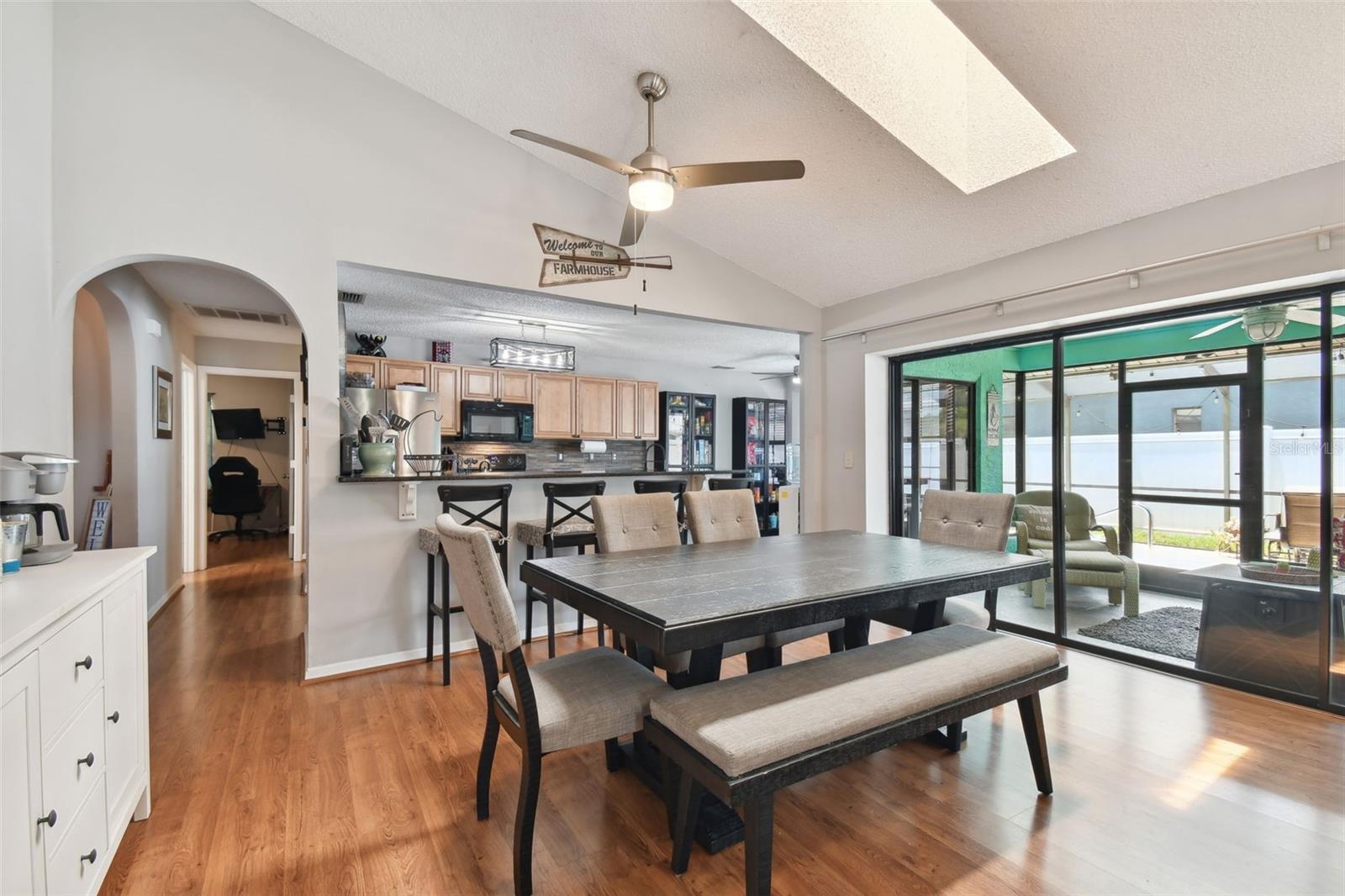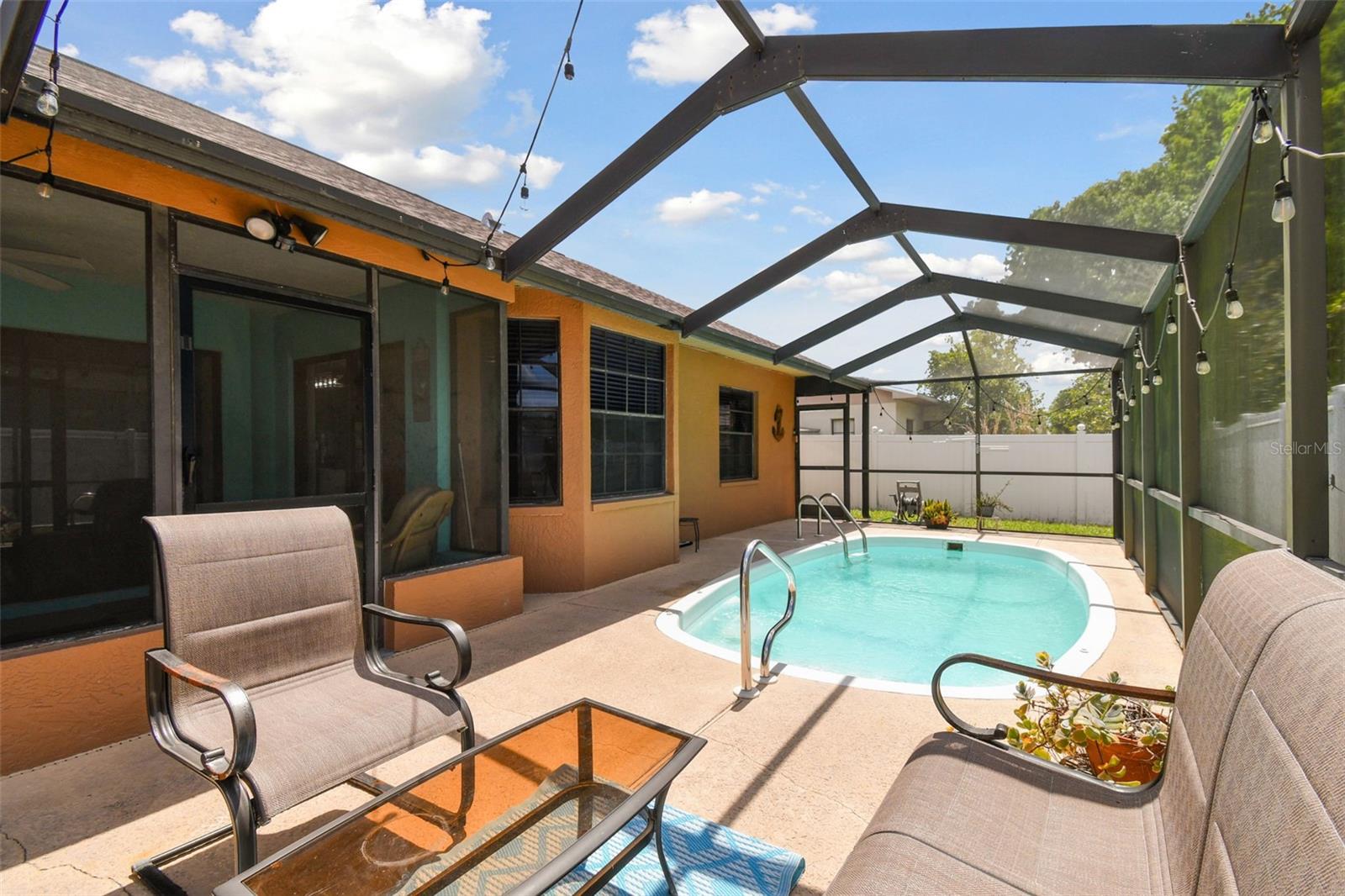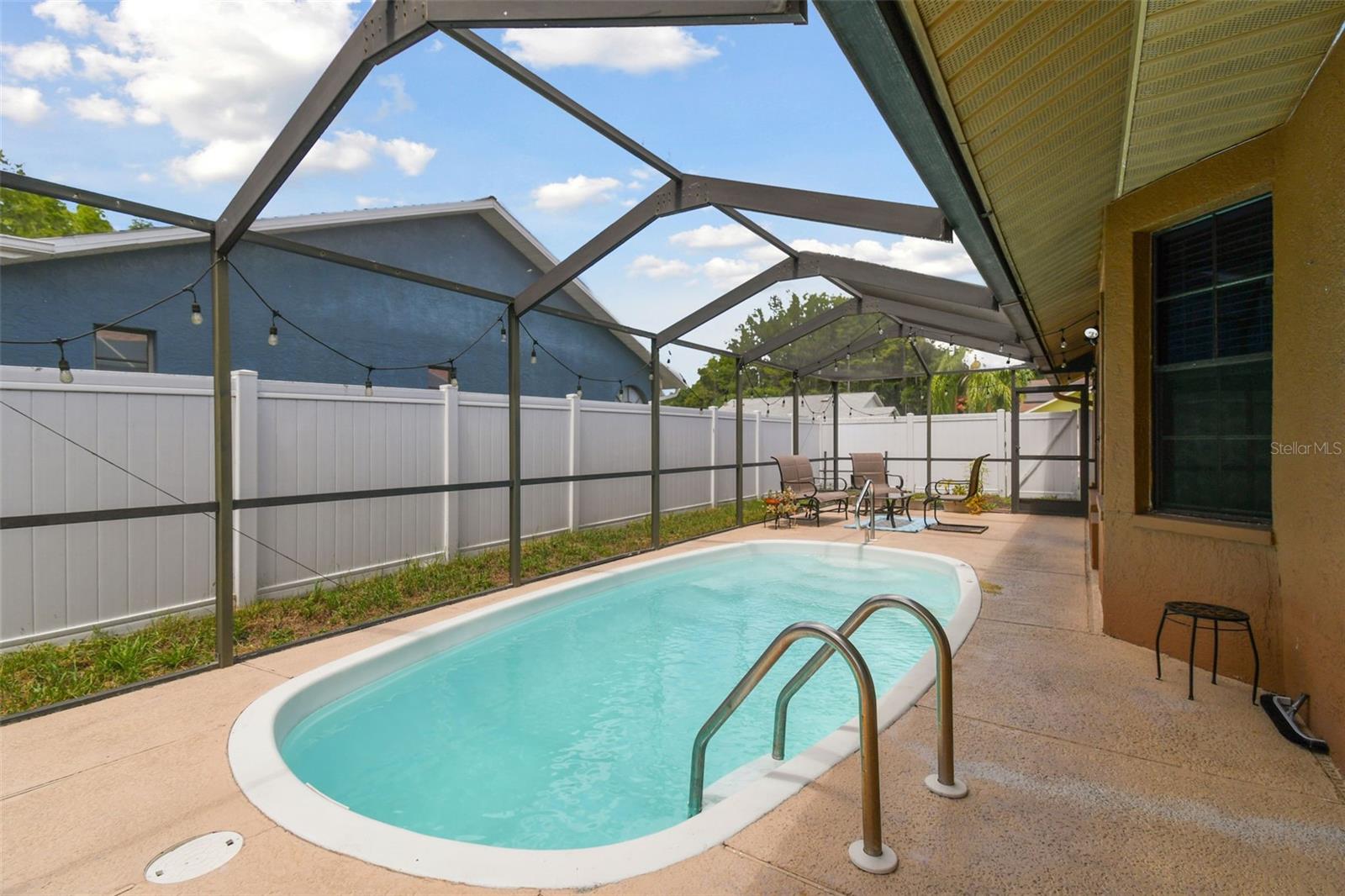 Welcome to your dream home in Cypress Lakes! This spacious and immaculate 3-bedroom, 2-bath POOL home boasts an array of impressive features. Nestled in the serene community of Cypress Lakes this home has much to offer. As you approach the front doors, you are greeted by a double door entry creating a warm and inviting entrance that welcomes visitors. As you enter the home, note the expansive and airy living/dining room area complete with vaulted ceilings, skylights and sleek sliding glass doors. These doors open up to your private pool area, where you'll find your own personal oasis. Soak up the Florida sunshine, entertain friends and family, or simply relax and unwind in this inviting outdoor space. The updated galley-style kitchen, features granite countertops, stainless steel appliances and overlooks the living/dining area. Additionally, the kitchen boasts an eat-in dinette area, which is perfect for enjoying your morning coffee while taking in the views. The home's well-thought-out split bedroom plan ensures privacy for all. The master bedroom is a spacious retreat with an adjoining master bathroom, and spacious walk-in closet. Two more bedrooms provide plenty of space for family and guests. Roof 2024, A/C 2018, LOW HOA and NO CDD. Walking distance to WH Jack Mitchell Jr Park and conveniently located near schools, shopping and restaurants and SR 54 for easy access to Tampa.