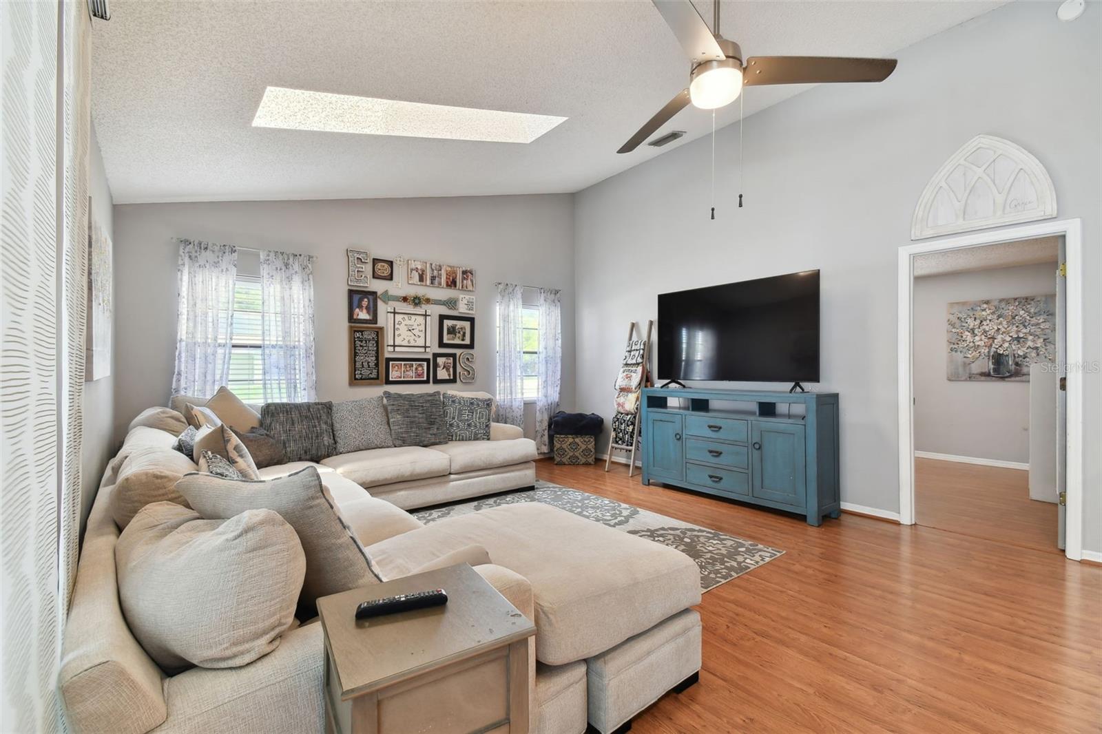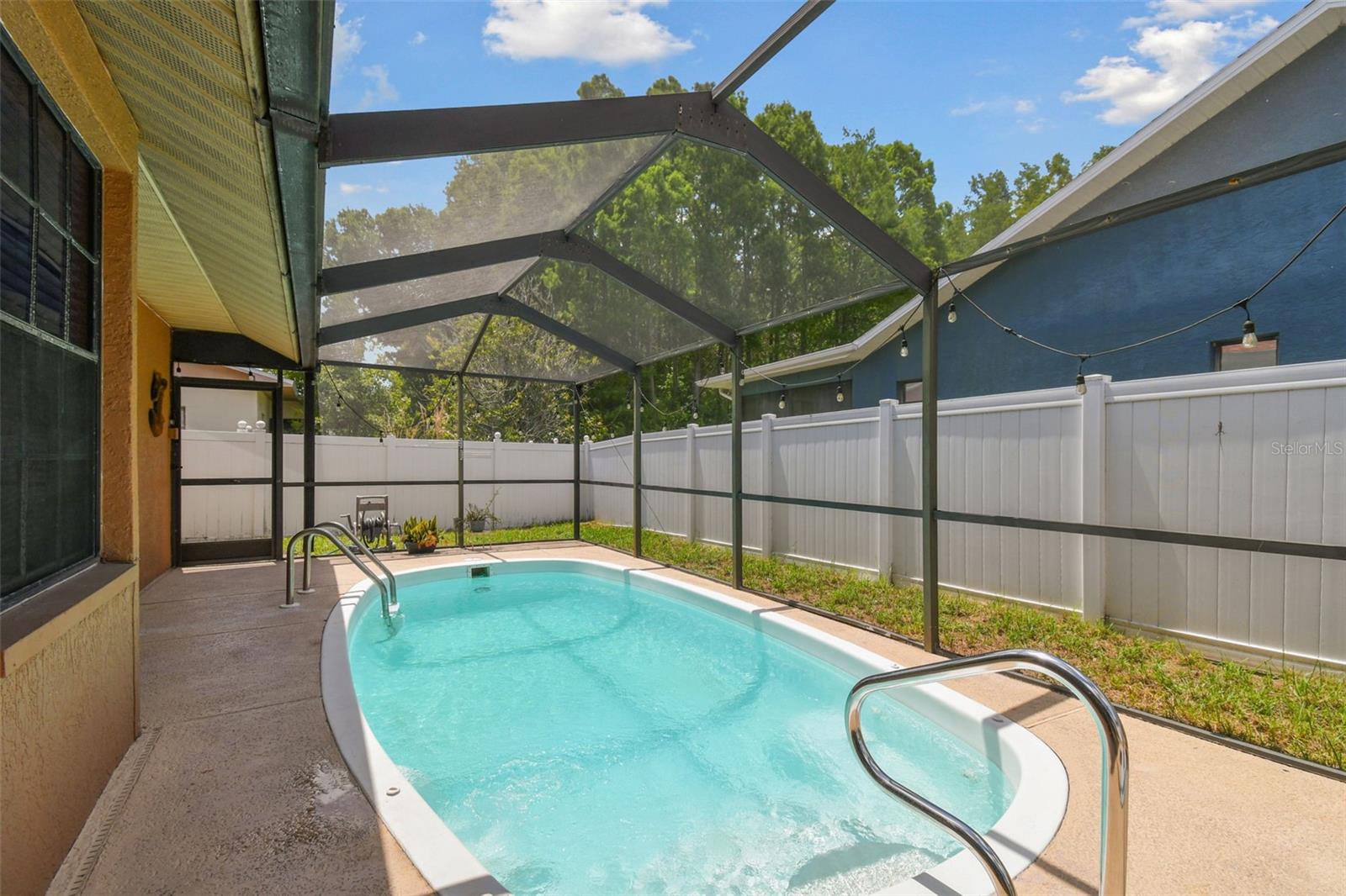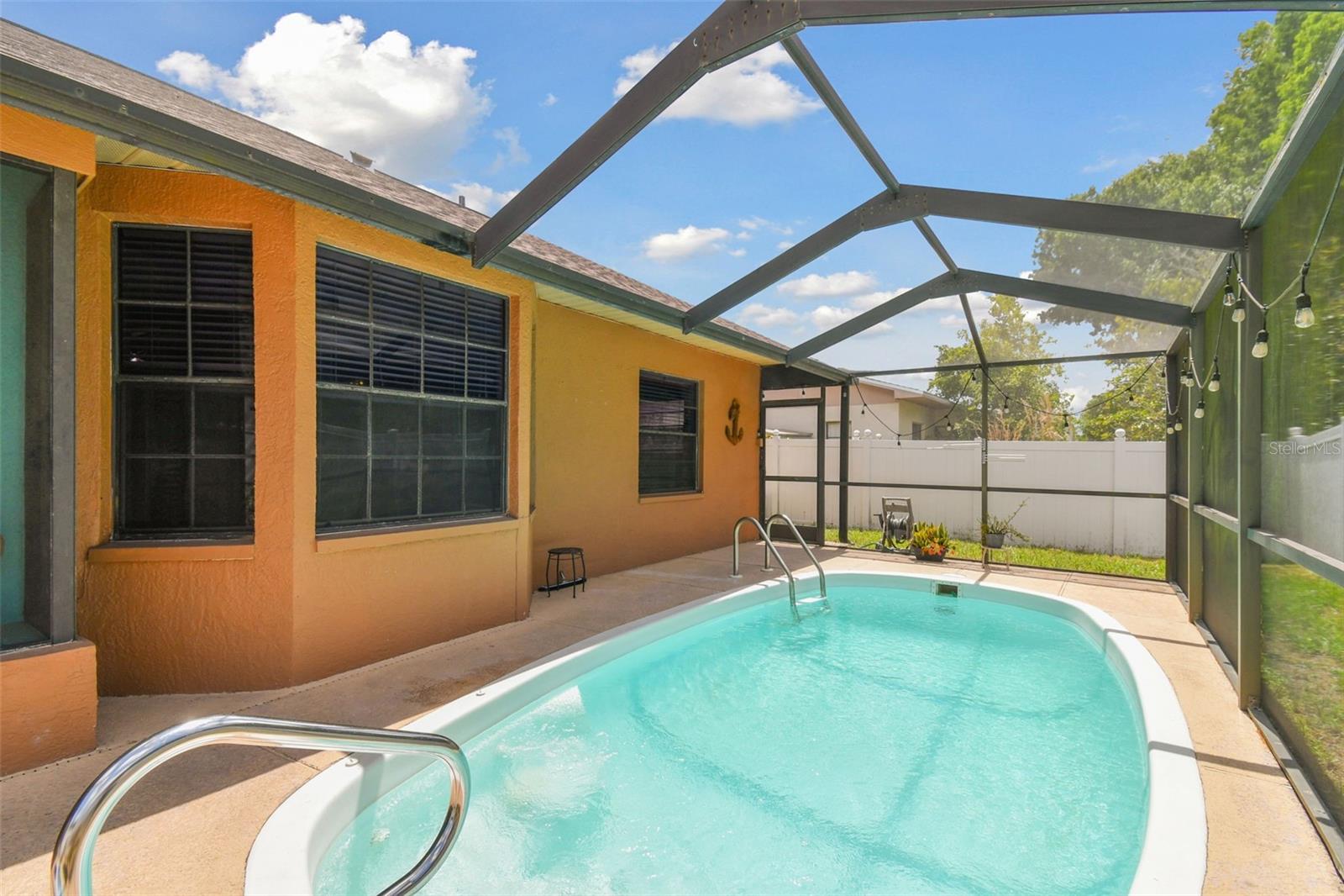 Welcome to your dream home in Cypress Lakes! This spacious and immaculate 3-bedroom, 2-bath POOL home boasts an array of impressive features. Nestled in the serene community of Cypress Lakes this home has much to offer. As you approach the front doors, you are greeted by a double door entry creating a warm and inviting entrance that welcomes visitors. As you enter the home, note the expansive and airy living/dining room area complete with vaulted ceilings, skylights and sleek sliding glass doors. These doors open up to your private pool area, where you'll find your own personal oasis. Soak up the Florida sunshine, entertain friends and family, or simply relax and unwind in this inviting outdoor space. The updated galley-style kitchen, features granite countertops, stainless steel appliances and overlooks the living/dining area. Additionally, the kitchen boasts an eat-in dinette area, which is perfect for enjoying your morning coffee while taking in the views. The home's well-thought-out split bedroom plan ensures privacy for all. The master bedroom is a spacious retreat with an adjoining master bathroom, and spacious walk-in closet. Two more bedrooms provide plenty of space for family and guests. Roof 2024, A/C 2018, LOW HOA and NO CDD. Walking distance to WH Jack Mitchell Jr Park and conveniently located near schools, shopping and restaurants and SR 54 for easy access to Tampa.