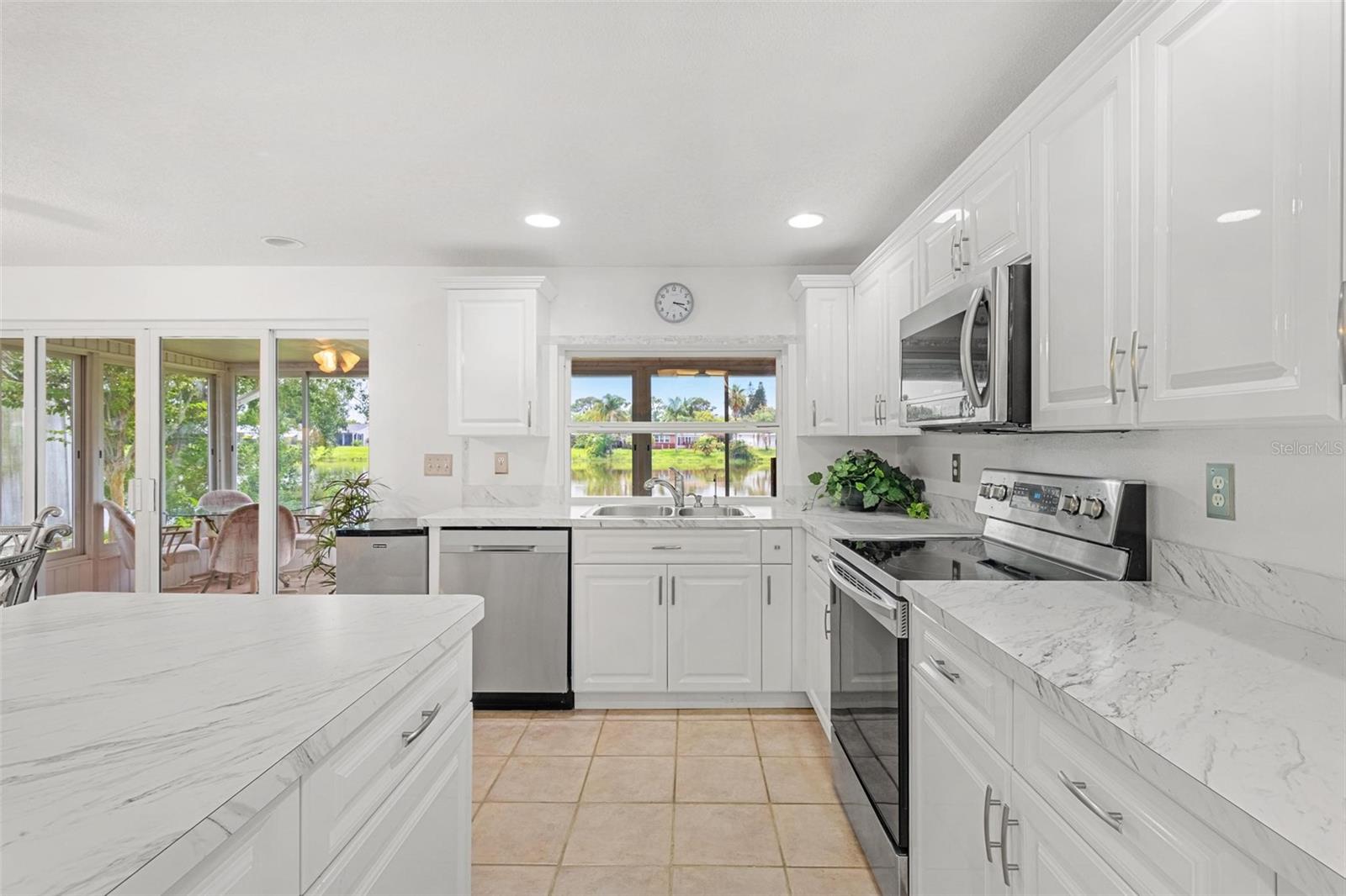 Welcome to 4035 Glissade Drive! This 2-bedroom, 2-bathroom home boasts over 1,700 sq ft of living space and peaceful waterfront views. Nestled in the Beacon Square community, you'll enjoy a prime location in New Port Richey, just moments from the Gulf of Mexico. The home features a remodeled kitchen and a newly installed main drain line, offering a fantastic opportunity for you to add your personal touch. As a resident, you can choose to join the Beacon Square Civic Association, which grants access to a heated pool, a spacious clubhouse, and convenient boat and RV storage. Don't miss the chance to make this waterfront retreat your own!