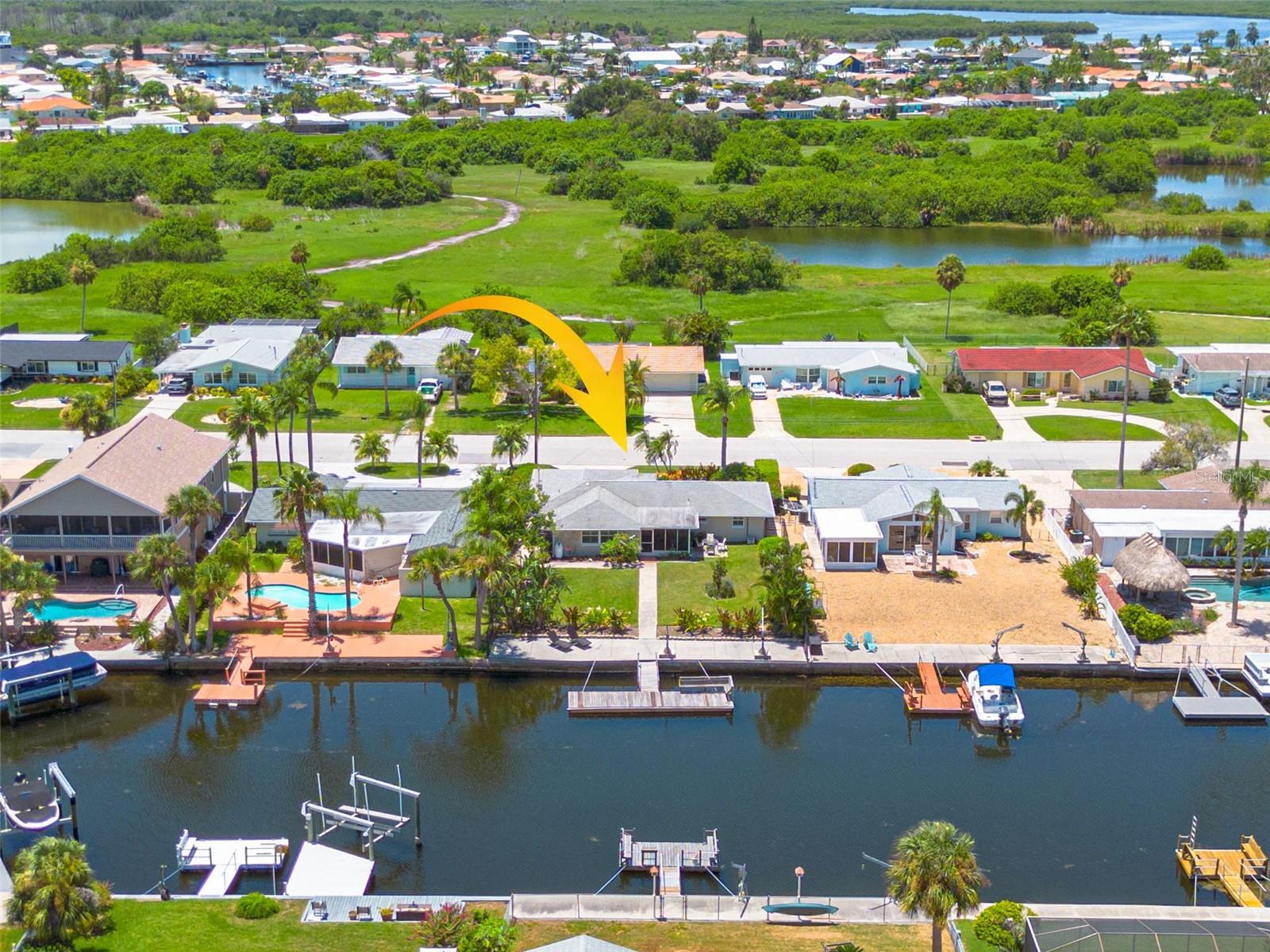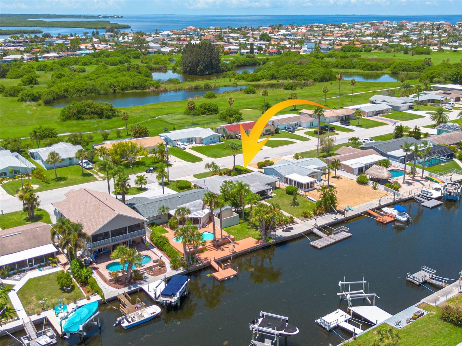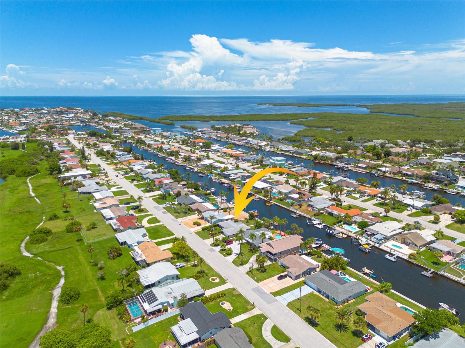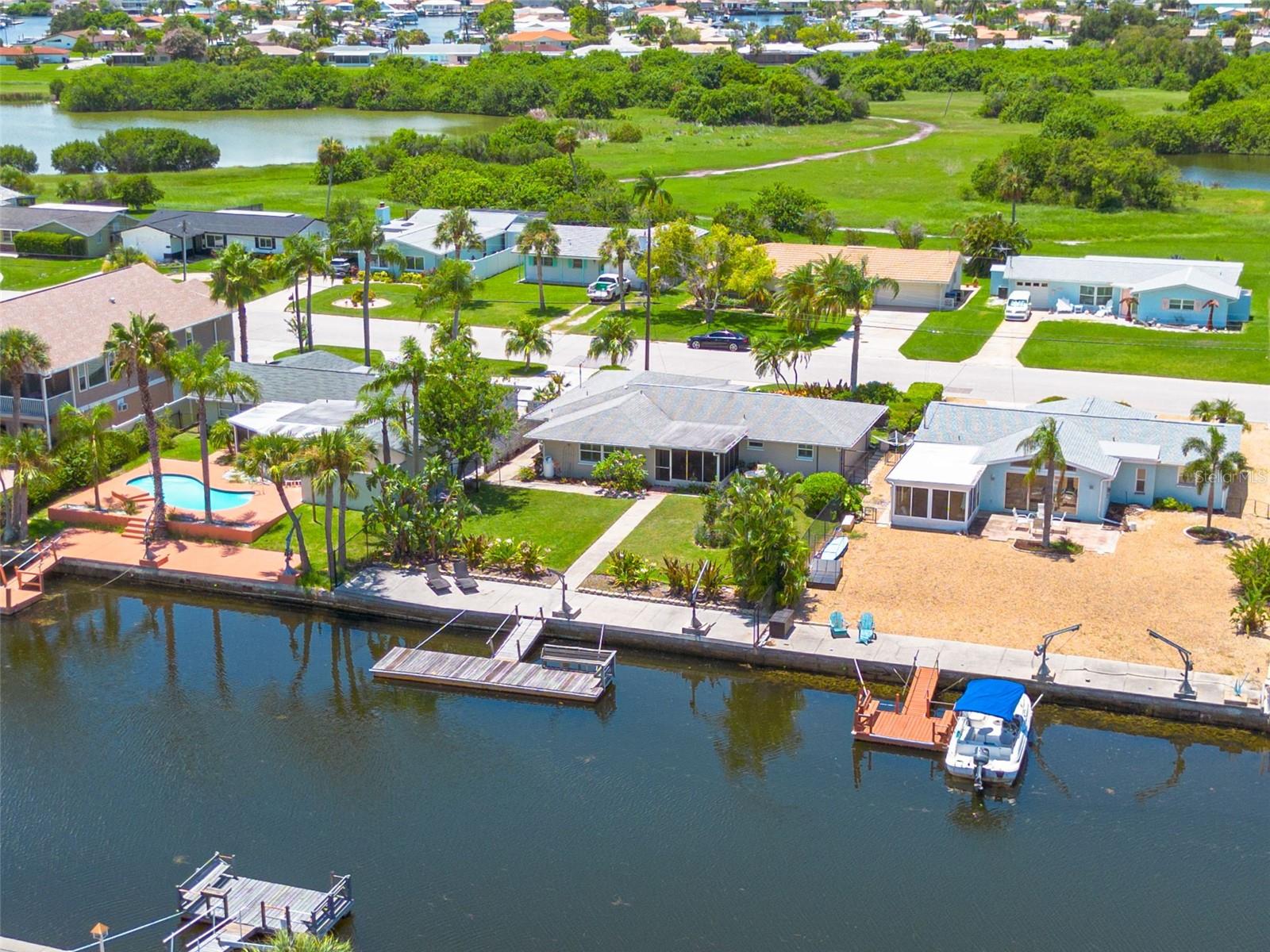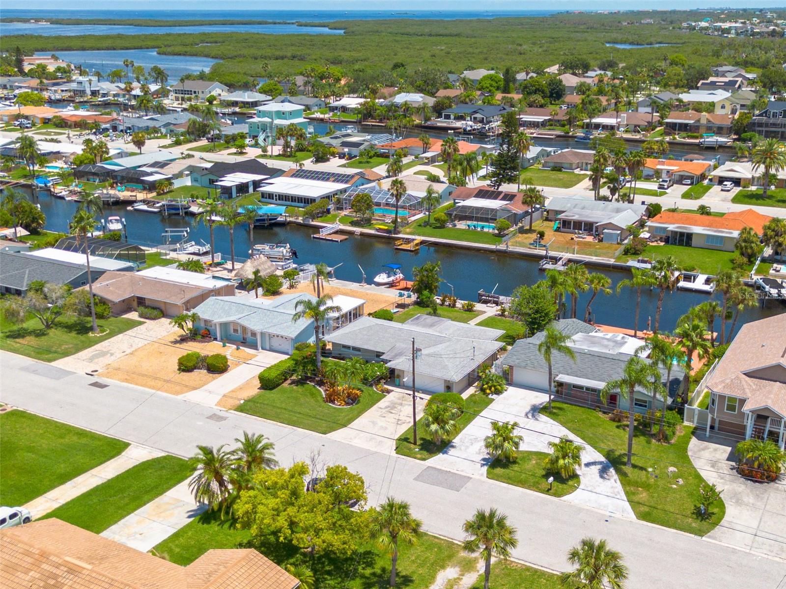 Resort-style living all year round! Waterfront home with Gulf of Mexico access, bring the water toys. Direct water views from almost every room in the home. 2 bedrooms, 2 baths, 2 car garage with workshop. Mature draught-friendly, tropical landscaping, which is great for privacy while enjoying the large fully fenced yard, patio, and screened-in porch. So many upgrades and updates they can't all be listed! Since 2019 this home has had hurricane impact windows installed, upgraded electrical panel, the entire home has been replumbed, new AC 2019, a new tankless water heater, new fencing. There is a contract for a new roof (you can choose the roof color). There is light-colored Travertine flooring throughout the home. There are interior shutters throughout the home. The fully remodeled custom kitchen features a breakfast bar, full pull-out pantry, stainless steel appliances, gas cooktop, vented hood, and granite counters. The guest bathroom has been fully remodeled. This home has great space and light. The family room is used as a dining room and office. The bump-up counter of the open floor plan kitchen offers additional storage space. For only $325 in annual dues, this neighborhood has a Private neighborhood beach on the Gulf of Mexico, a very active Civic Association Club House with two halls available for rent, and a members-only game room/library. Members also have access to two boat ramps. This active community offers a Yoga Club, Fishing Club, Social Club, Boating Club, Sailing Club, Card Club, and many more. For an additional cost, there is a Yacht Club within the Gulf Harbors neighborhood. Gulf Harbors is a Golf Cart Friendly neighborhood. The neighborhood has many parades and festivities year-round. Boat parades, Golf cart parades, Markets with many local artists, concerts, and holiday celebrations. You will be only 10 minutes to The Historic Downtown New Port Richey. Shops, Restaurants, Boutique Historic Hotel, Microw Breweries, An Aquatic Center with pools, a gym, pickleball courts, and more. The historic Sims Park has a fabulous children's park, concerts, movies in the park, and festivals year-round. You must see this home to appreciate the space inside. Furniture is negotiable.