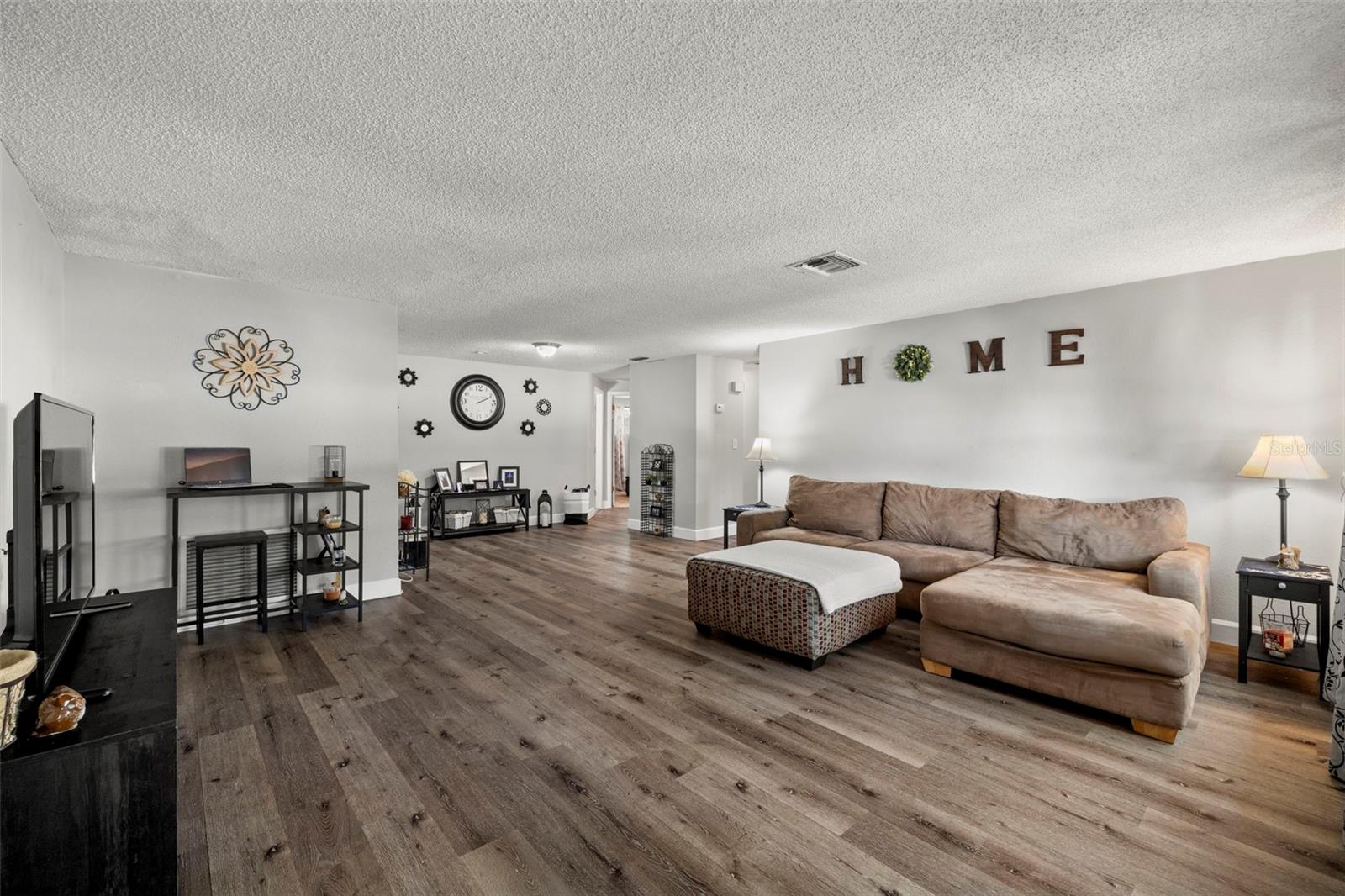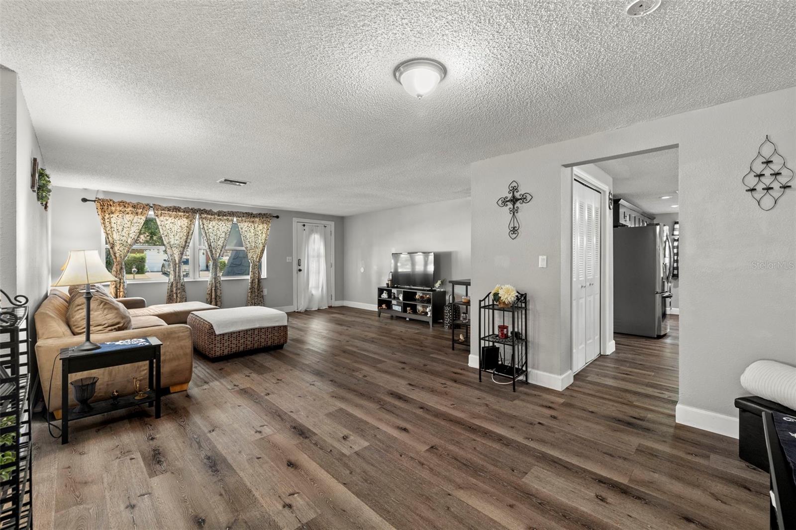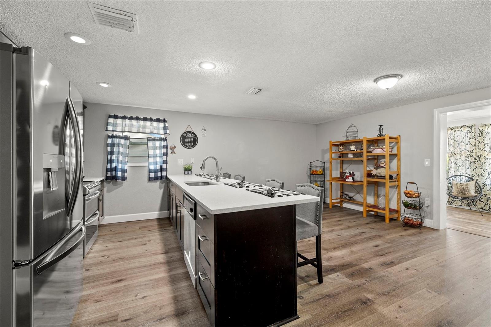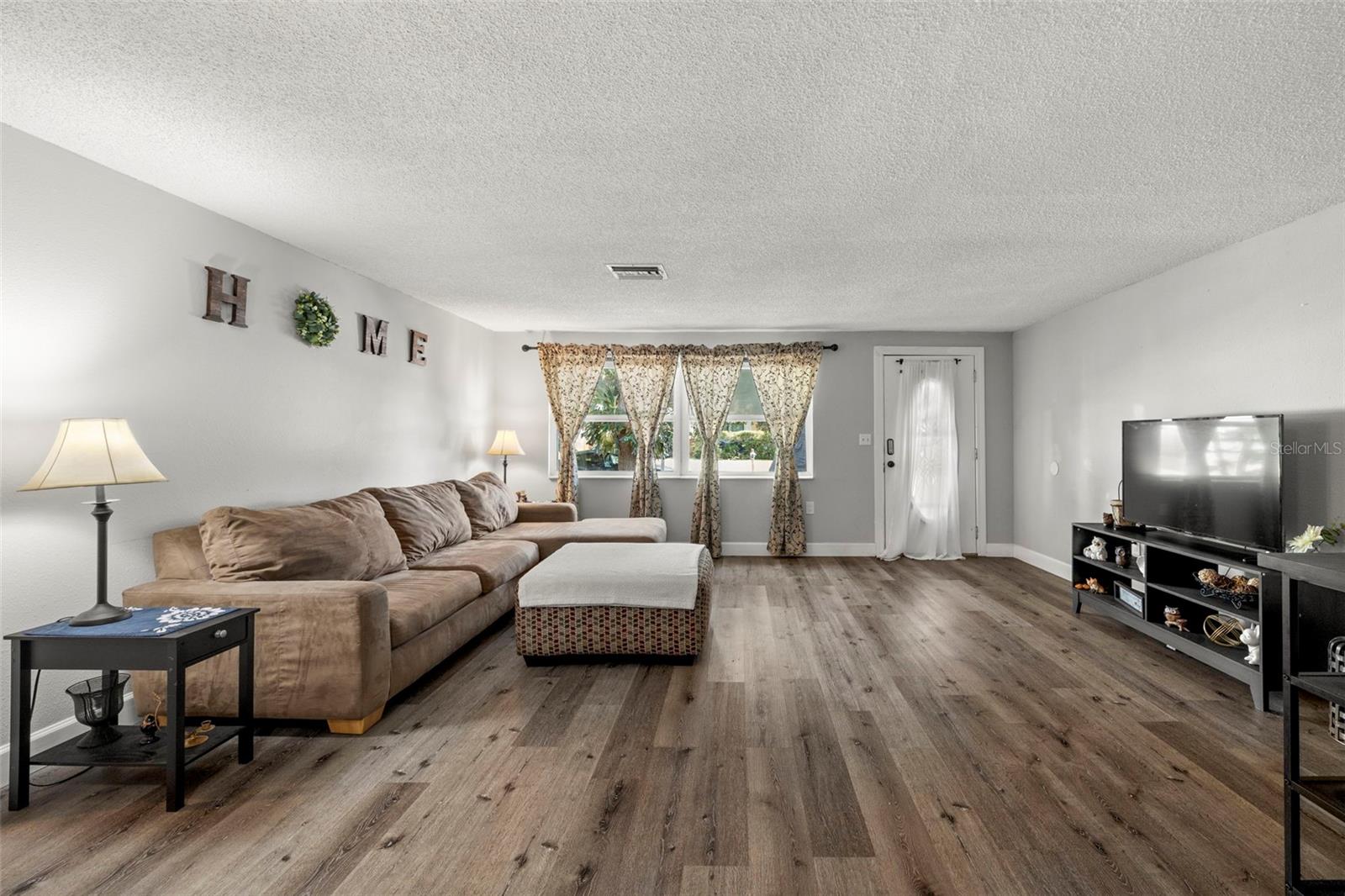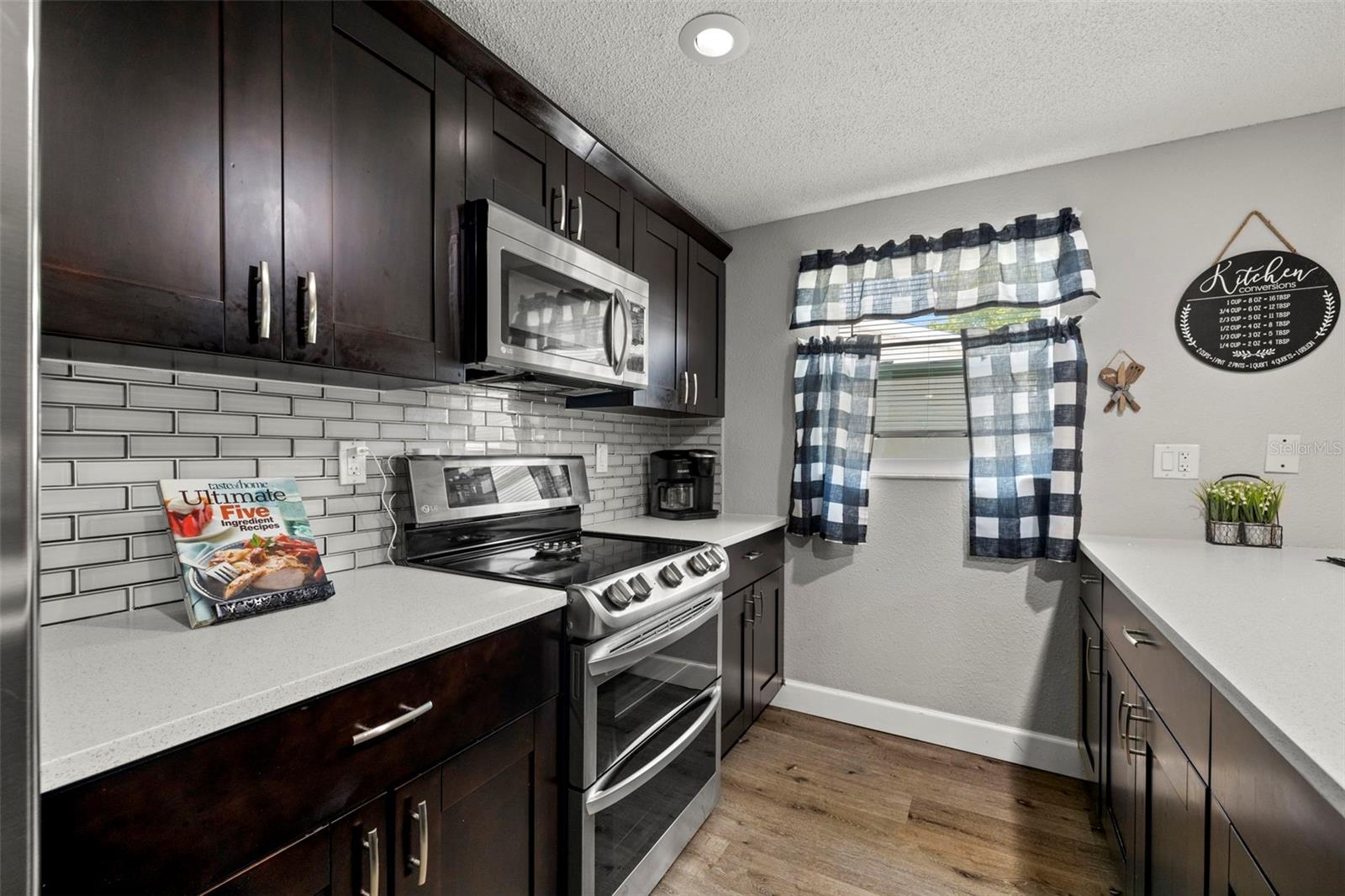 Nestled in the charming town of New Port Richey, just a quick 5-minute drive from the vibrant downtown area, this beautifully updated 3-bedroom, 2-bathroom home offers nearly 2,000 square feet of well-designed living space. This solid block home provides lasting peace of mind with no flood insurance required. Step inside to discover vinyl plank flooring that flows seamlessly through the main living areas, enhancing the thoughtfully designed layout. The kitchen, fully renovated in 2021, is a chef's dream, featuring espresso soft-close wood cabinetry, classic white subway tile backsplash, and stainless steel appliances, including a double oven. Quartz countertops and a spacious kitchen island with seating for 4-5 people add to the kitchen's appeal. The open-concept design connects the kitchen to the dining room and a bonus room, which is adorned with wood-like ceramic tile flooring—ideal for hosting gatherings. The oversized owner’s suite is a tranquil retreat, boasting ample storage and a beautifully updated ensuite bathroom with a stand-up shower featuring modern tilework. The additional two bedrooms are generously sized and share an updated bathroom. Recent upgrades include a new water heater (2021), as well as updated electrical and windows. The attached garage houses a washer, dryer, and utility sink, adding to the home's practicality. Outside, the fully fenced backyard offers the perfect setting for barbecues and outdoor enjoyment. New Port Richey’s downtown Main Street, just minutes away, is a hub of activity with annual parades, festivals, and boat parades along the Cotee River. Sims Park provides something for everyone, from concerts at the amphitheater to a splash pad, kayak launches, and walking paths. Whether you're catching a show at the historic Richey Suncoast Theatre or exploring local boutiques and eateries, this town's small-town charm offers a slower pace of life, while easy access to US-19 keeps you connected to Gulf Coast beaches. This home combines affordability with an enviable lifestyle. Don’t miss your chance—schedule your showing today!