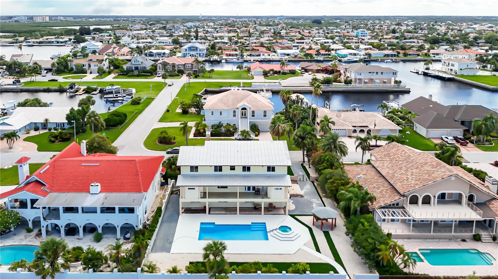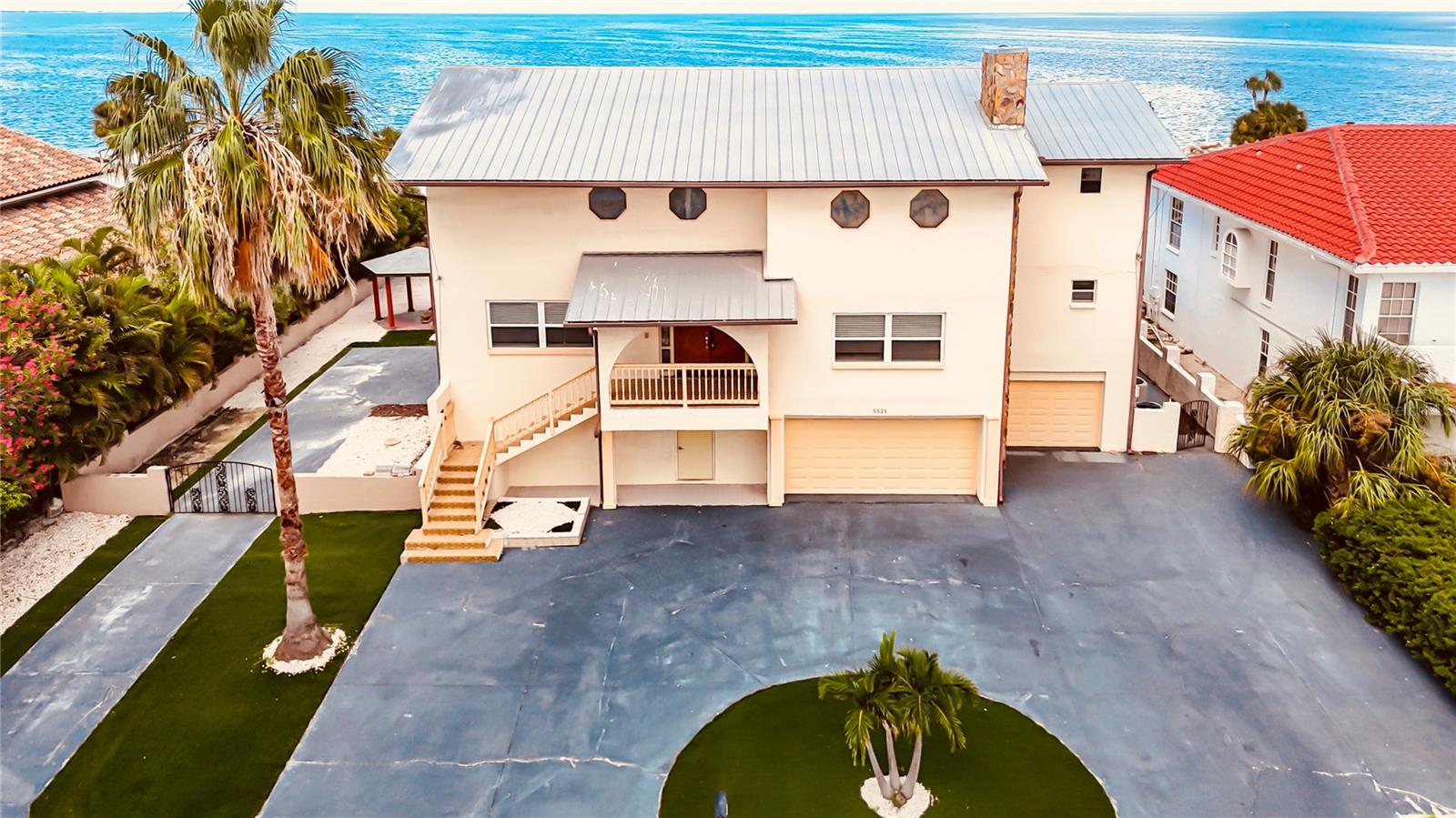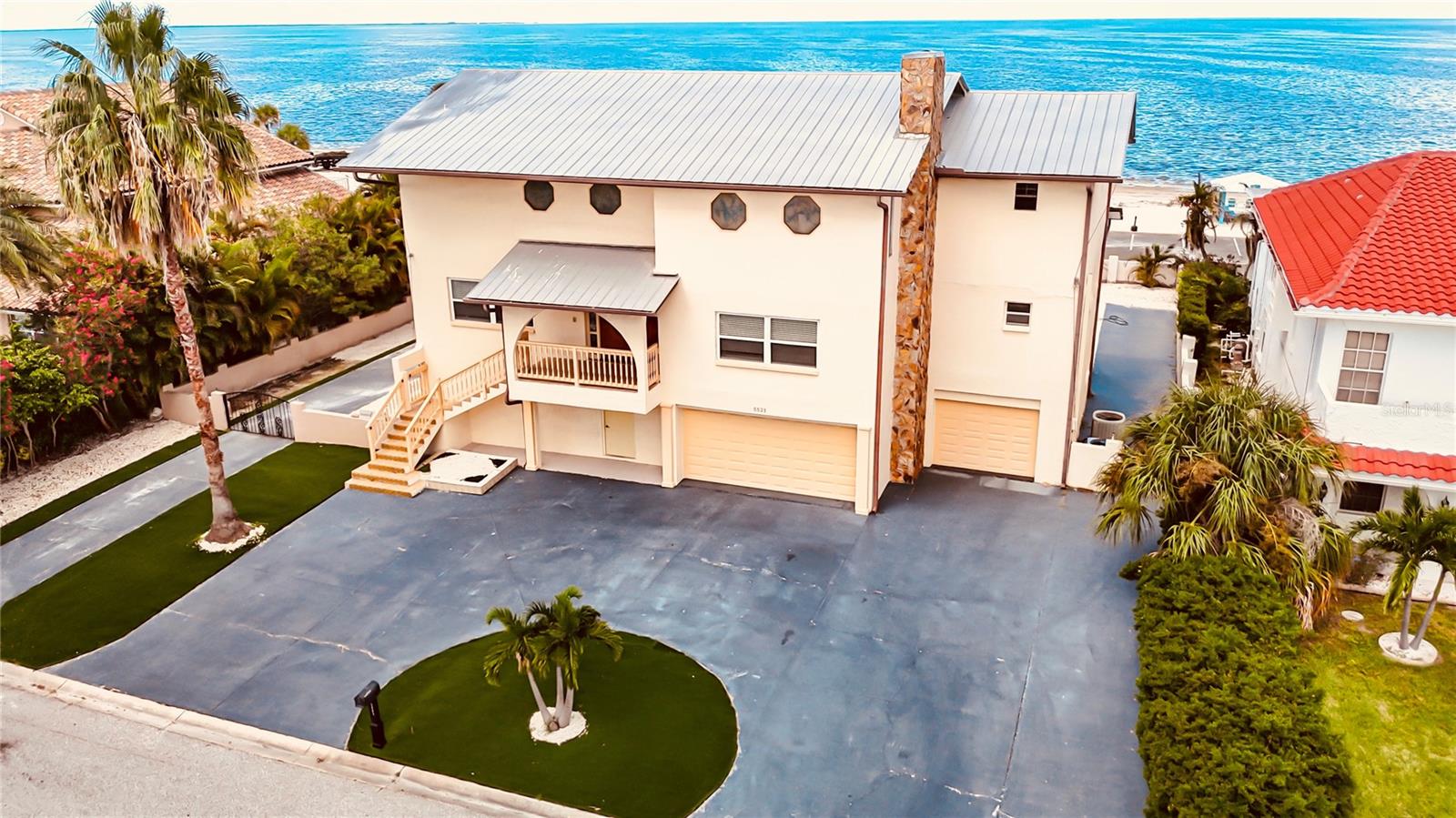 ABSOLUTELY STUNNING OCEAN FRONT VIEWS!!! EXTREMELY MOTIVATED SELLERS!!! Double lot, with a little updating this house is worth DOUBLE the listing price!!! Neighbors house just sold for $887 a sq ft, were priced at $317 a sq ft for a QUICK SALE!!! 5BR +BONUS room, 6BA/3CG +CIRCULAR DRIVEWAY, THREE-STORY POOL HOME nestled in the heart of Gulf Harbors w/in New Port Richey. This 4090 SF home sits on OVER ¼ ACRE lot, & it boasts PANORAMIC BEACH VIEWS from the entire back side of the home, making it feel as if you were on vacation every single day!!! A covered entryway, & carved WOOD DOUBLE DOORS greet you at this home, alongside a BEAUTIFUL fireplace right at the living room, which has SOARING high ceilings. Each bathroom of this home has its own flair making it unique w/in the home. The SPACIOUS, EAT-IN kitchen boasts GRANITE countertops, a BEAUTIFUL backsplash, CUSTOM cabinetry, SS apps, & a center ISLAND. In addition, the eating area of the kitchen features FRENCH DOORS that lead you to a HUGE expansive balcony that overlooks your backyard, as well as the PRIVATE BEACH! This home has THREE MASTER SUITES, while the additional two share a Jack & Jill bathroom. In addition, this home has NEWER hurricane-grade windows, an INSIDE LAUNDRY ROOM, a bonus room that could easily be used as an office, sewing, or even a craft room! This AMAZING home’s FENCED-IN backyard boasts a gazebo, a LARGE pool, & JACUZZI in addition to ample space to add whatever you’d like! The SUPER LOW HOA fee of $100 allows you to have access to the WONDERFUL PRIVATE BEACH w/in walking distance of your backyard, so you can enjoy this DELIGHTFUL Florida weather all year round at your pool, or at the beach! Don't miss this PHENOMENAL opportunity to own a beachfront property in one of the best locations in the WORLD!!!