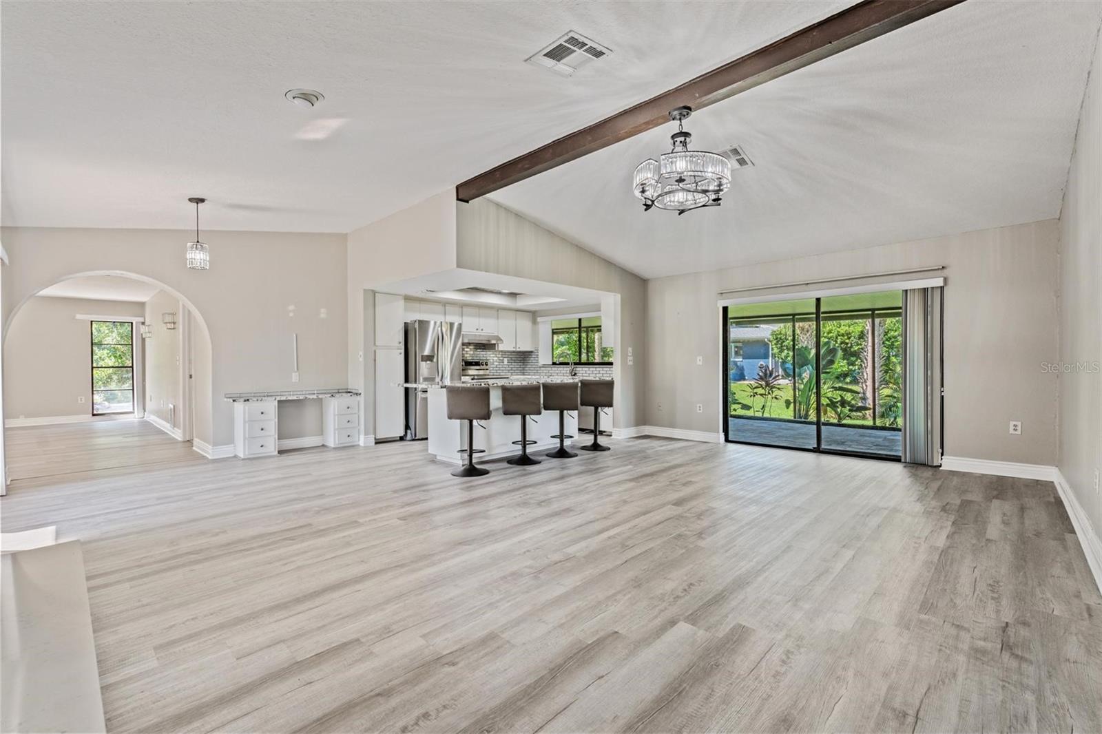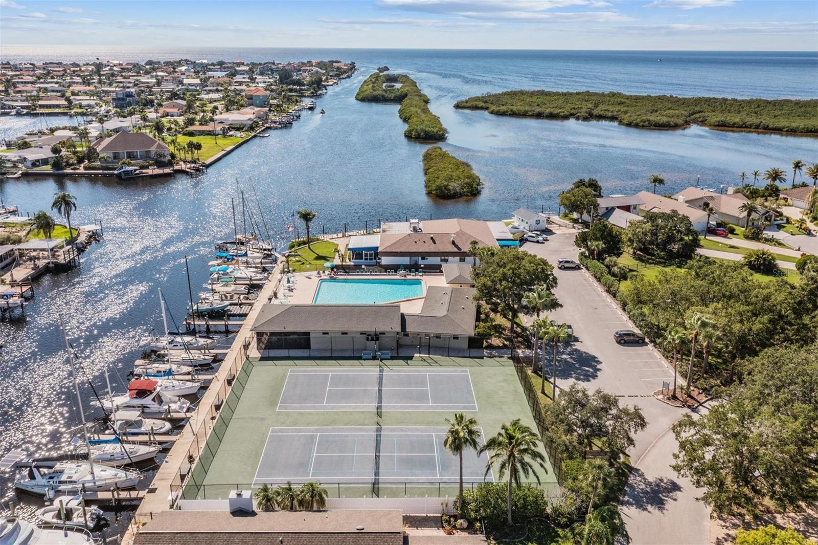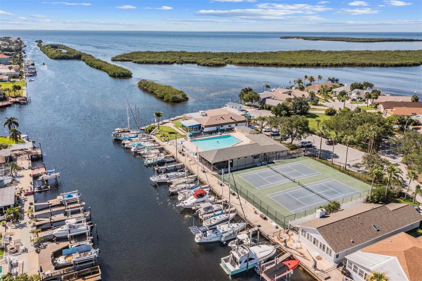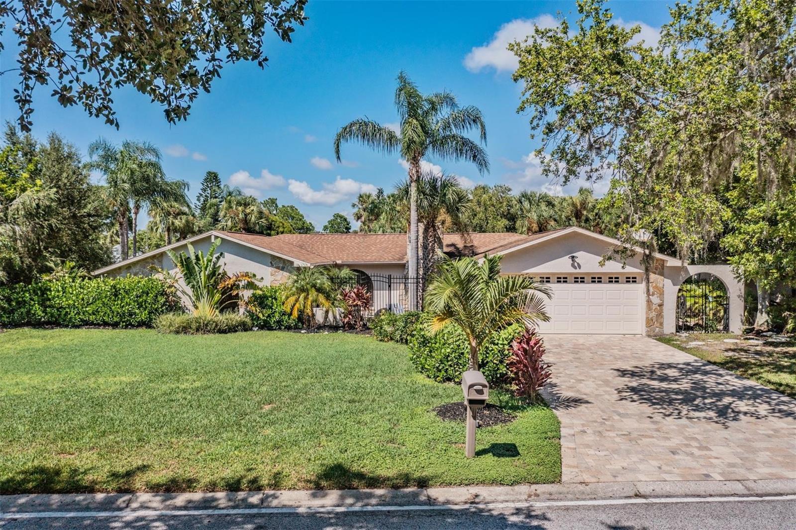 Priced to sell. This exquisite, upscale 3/2/2 home with 1.970 heated sF and 2,890 total sF on a corner lot in a coveted water community with Gulf access !! New roof installed on Sept 11, 2023. The beauty must be witnessed firsthand as photos cannot capture its true essence. Style starts from the ground up with luxurious floor trim and pavers! New outside open patio constructed of thick pavers is 58' 5" x 19'. Discover a private oasis surrounded by mature trees and $25,000 worth of landscape. Numerous upgrades have been made to the property, as detailed in the attached sheet. Walk through a grand entrance gate onto a paved walkway leading to the front door. Step into a spacious, sunlit GREAT room with a large picture window that fills the space with natural light and offers views of a majestic mature Travelers Palm. The 3 yr old luxury flooring comes with a lifetime warranty. It is waterproof sealed with maximum scratch/stain resistance and features antimicrobial properties that prevent the growth of mold/mildew. Bedrooms have newer carpet. The house has been brightened by the addition of all new doors and hardware. The bright gourmet kitchen, complete with windows, boasts a large island with ample cabinet space, bar stools, 3 yr old LG appliances with a garbage disposal. The kitchen overlooks a den, family room, or dining room with a grand stone wood-burning fireplace. NEW FLASHING around the chimney has been added. The inner hearth and flue liner are protected with Krylon specialty high heat protection paint. The new chimney cap completes the fireplace improvements. Ensuite has slider doors and a new bathroom. Two bedrooms, bath and large hall closet are located past the den. Create lasting family memories on the expensive private party deck. HOT TUB NEGOTIABLE. Under ground electrical wiring ensures hassle-free walking. Separate wiring with surge protection has been installed for outside equipment (ie: bar, spa, hot tub). A french pipe installed under the patio is in place to capture rainwater from the three downpours and directs the water into the backyard and away from the patio deck. The garage houses the washer, dryer, and water softener, which all convey with the home. Enjoy lower taxes and insurance without a pool, waterfront access, or a canal. The optional Yacht Club and optional private beach membership are available for your consideration. Both are conveniently located nearby. Savor stunning sunsets at the private Beach Club, which offers a spacious beach, parking, pavilions, facilities, and various activities. Membership is optional. HOA includes: pool, tennis and 24-hour boat ramp. Enjoy delicious meals and a bar at the Yacht Club. There is also a marina. Extra activity includes Bingo, a racecourse, a book club, fun/game nights, and more. Rest easy knowing that U.S. Coast Guard Auxiliary's substation is located on the grounds. Take advantage of nearby shopping & restaurants nearby. The Gulf of Mexico, MacDill Air Force Base, hospitals, the new VA Outpatient hospital, the forthcoming H. Lee Moffitt Cancer Center and Research Institute (with a world-class expansion campus in Pasco County within a few years), beaches, and numerous other attractions are convenient. Tampa and St. Pete Clearwater Airports are just minutes away, granting easy access to anywhere in central Florida. Your playground awaits!