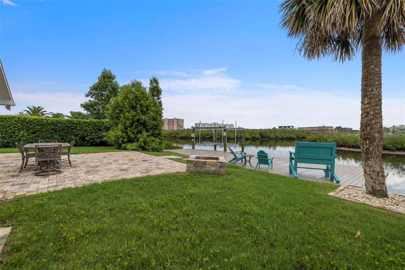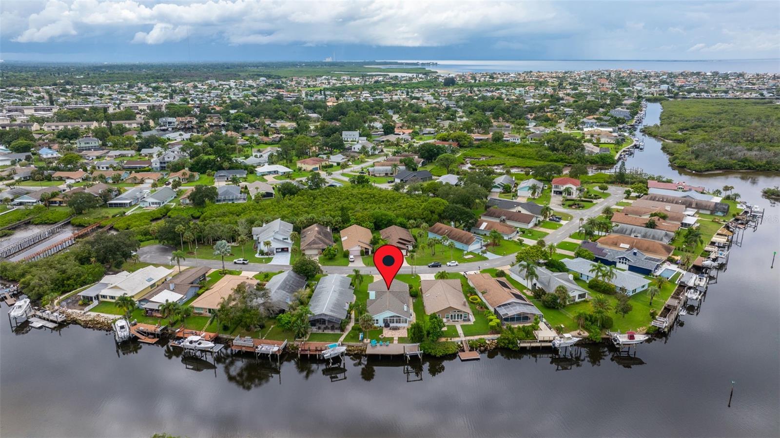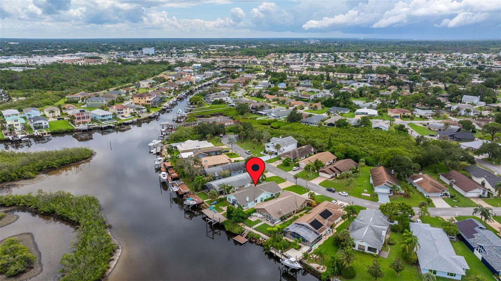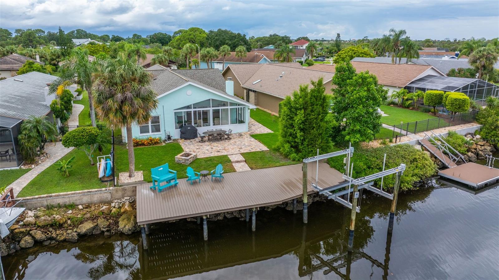 Nestled in the serene Gulf Harbors community, this stunning 3-bedroom, 2-bathroom waterfront home offers nearly 1,700 sqft of meticulously renovated living space. As you arrive, notice the beautiful pavered driveway and walkway replaced in 2022, leading you through the charming wrought-iron gated front porch. The home’s exterior shines with fresh, low-maintenance landscaping, a new roof installed in 2021, and recent exterior paint. Step inside to find an inviting atmosphere filled with natural light where travertine tile floors, replaced in 2021, meet sophisticated window treatments and contemporary lighting fixtures. The heart of this home is the designer kitchen, completely remodeled in 2021, featuring a stunning waterfall granite countertop at the breakfast bar, espresso wood soft-close cabinets, granite countertops, and stainless steel appliances. This open-concept space is anchored by a cozy white brick fireplace, creating the perfect setting for family gatherings and holiday celebrations. The owner’s suite is a true retreat, offering a private exit to the patio, a spacious walk-in closet with a custom closet system, and an ensuite bathroom with dual sinks, a stand-up shower, and additional closet space. The split bedroom floor plan ensures privacy, with an updated guest bathroom nearby, featuring granite countertops, new cabinets, and all-new plumbing fixtures, also updated in 2021.Convenience is key with an indoor laundry room that includes added cabinetry and a utility sink. The water heater and entire home was re-plumbed in 2021 providing peace of mind for years to come. Step outside through hurricane-impact triple sliding glass doors to your screened-in lanai, overlooking a waterfront oasis. The outdoor pavered patio with built in fire pit leads to your private dock with a newly installed (2023) 10,000 lb boat lift, perfect for quick access to the Gulf of Mexico. Whether you’re fishing off the dock or kayaking through the nearby Robert Crown Wilderness Area, outdoor adventures await right in your backyard. Residents of Gulf Harbors may also enjoy a private beach access for members only. To ensure your comfort in Florida’s climate, a sprinkler system with mosquito/noseeum control was installed, making outdoor living a pleasure year-round. Perfectly located with easy access to US-19, this home is just minutes away from shopping, dining, and offers a straightforward commute. Don't miss out on the chance to own this exceptional waterfront property, where you can create memories for years to come!