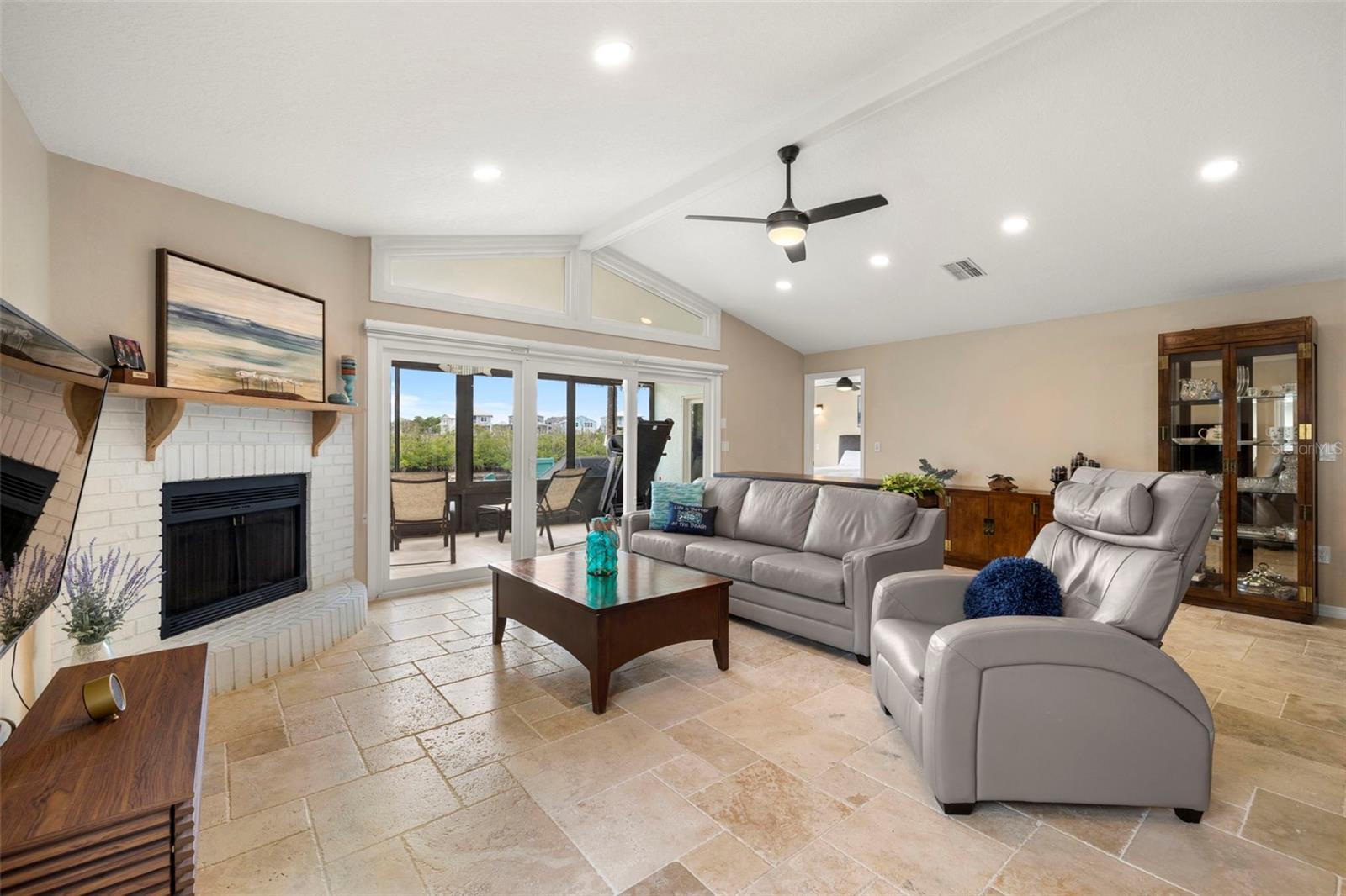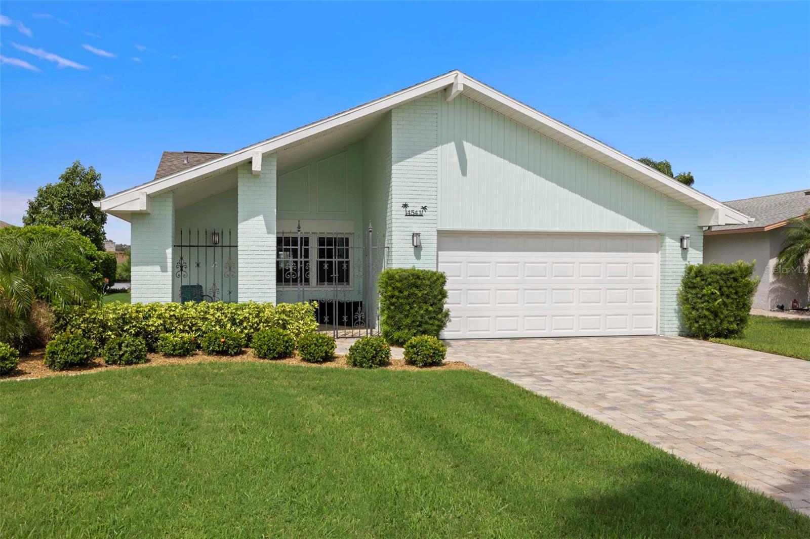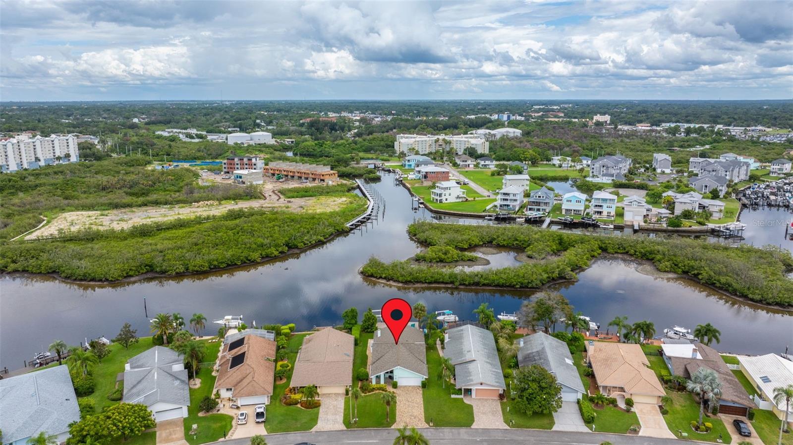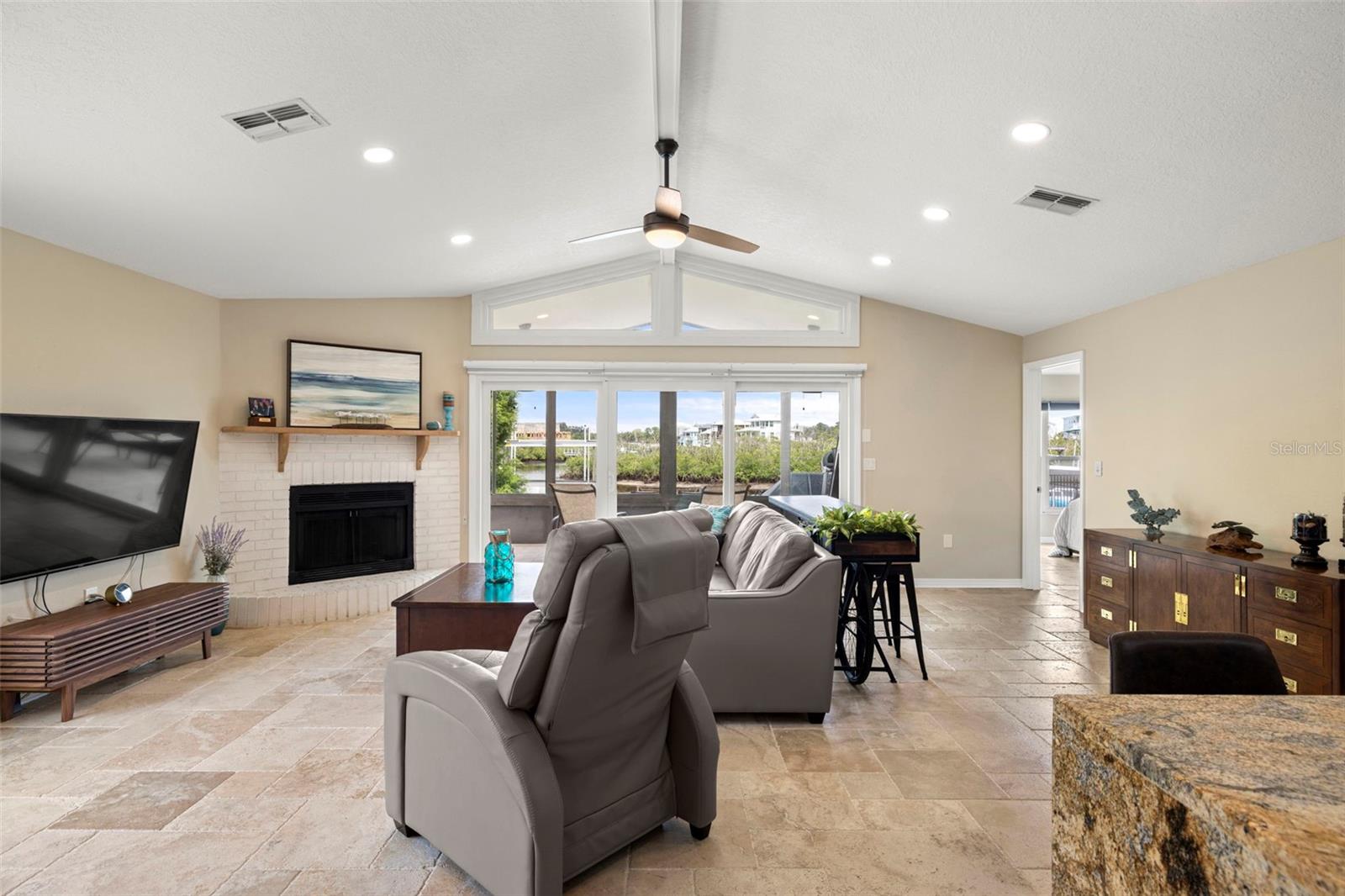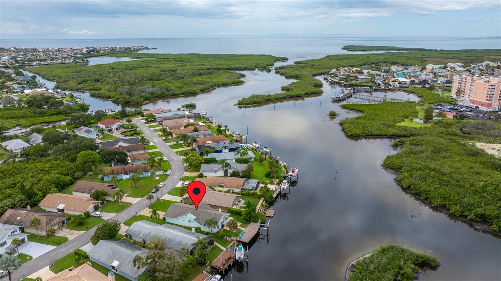 Nestled in the serene Gulf Harbors community, this stunning 3-bedroom, 2-bathroom waterfront home offers nearly 1,700 sqft of meticulously renovated living space. As you arrive, notice the beautiful pavered driveway and walkway replaced in 2022, leading you through the charming wrought-iron gated front porch. The home’s exterior shines with fresh, low-maintenance landscaping, a new roof installed in 2021, and recent exterior paint. Step inside to find an inviting atmosphere filled with natural light where travertine tile floors, replaced in 2021, meet sophisticated window treatments and contemporary lighting fixtures. The heart of this home is the designer kitchen, completely remodeled in 2021, featuring a stunning waterfall granite countertop at the breakfast bar, espresso wood soft-close cabinets, granite countertops, and stainless steel appliances. This open-concept space is anchored by a cozy white brick fireplace, creating the perfect setting for family gatherings and holiday celebrations. The owner’s suite is a true retreat, offering a private exit to the patio, a spacious walk-in closet with a custom closet system, and an ensuite bathroom with dual sinks, a stand-up shower, and additional closet space. The split bedroom floor plan ensures privacy, with an updated guest bathroom nearby, featuring granite countertops, new cabinets, and all-new plumbing fixtures, also updated in 2021.Convenience is key with an indoor laundry room that includes added cabinetry and a utility sink. The water heater and entire home was re-plumbed in 2021 providing peace of mind for years to come. Step outside through hurricane-impact triple sliding glass doors to your screened-in lanai, overlooking a waterfront oasis. The outdoor pavered patio with built in fire pit leads to your private dock with a newly installed (2023) 10,000 lb boat lift, perfect for quick access to the Gulf of Mexico. Whether you’re fishing off the dock or kayaking through the nearby Robert Crown Wilderness Area, outdoor adventures await right in your backyard. Residents of Gulf Harbors may also enjoy a private beach access for members only. To ensure your comfort in Florida’s climate, a sprinkler system with mosquito/noseeum control was installed, making outdoor living a pleasure year-round. Perfectly located with easy access to US-19, this home is just minutes away from shopping, dining, and offers a straightforward commute. Don't miss out on the chance to own this exceptional waterfront property, where you can create memories for years to come!