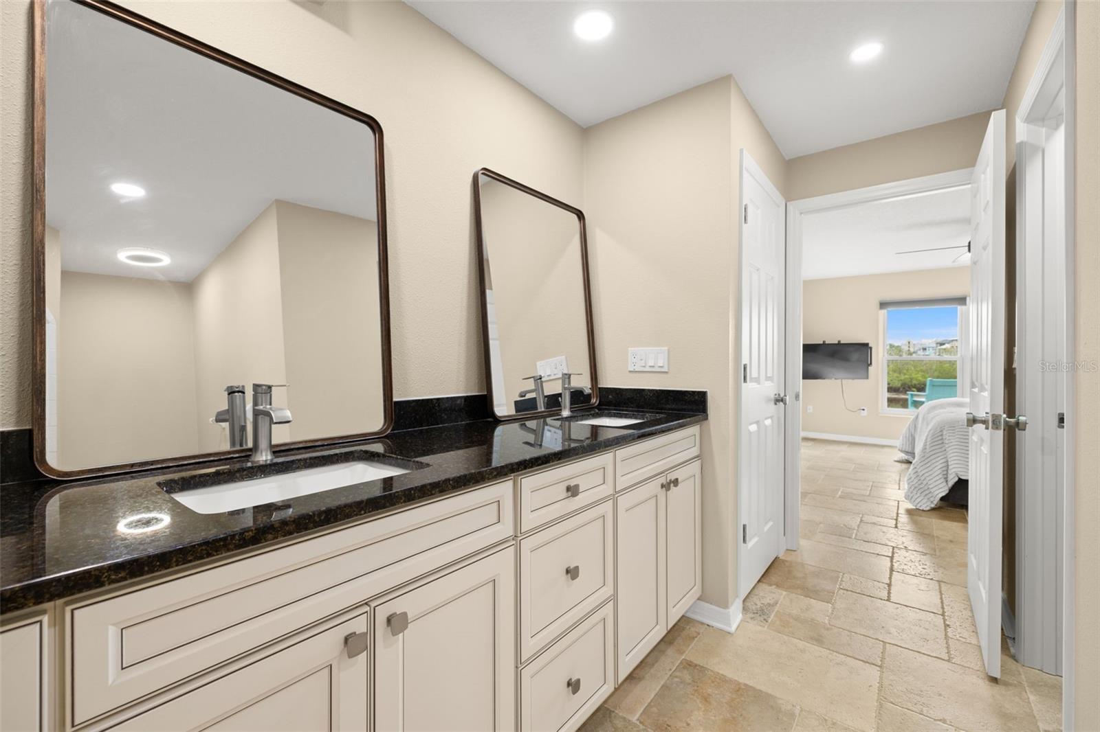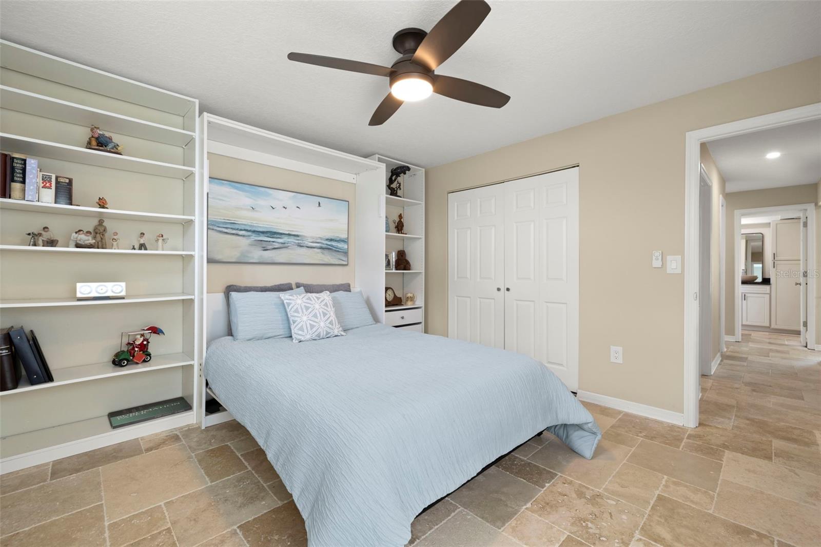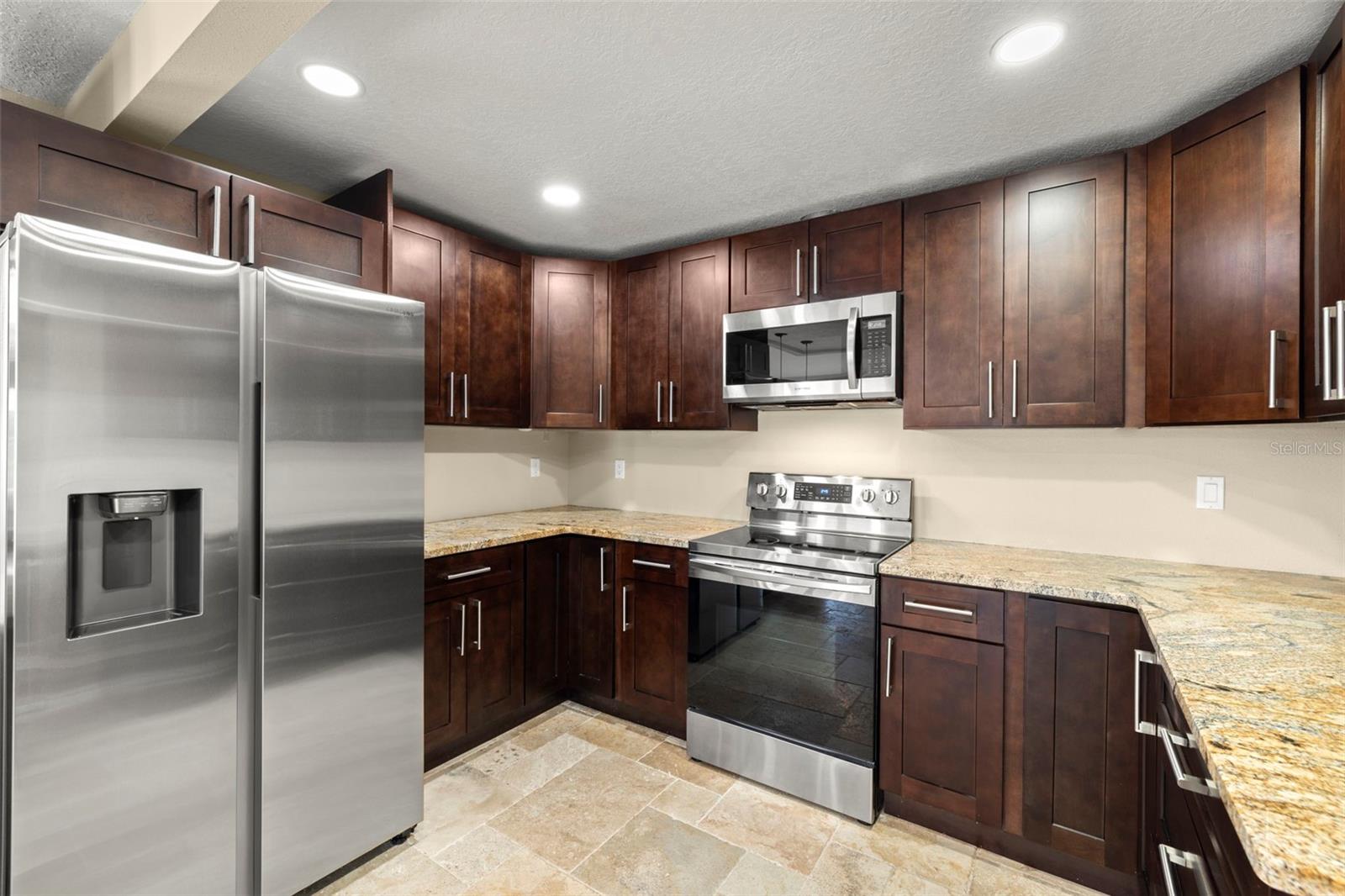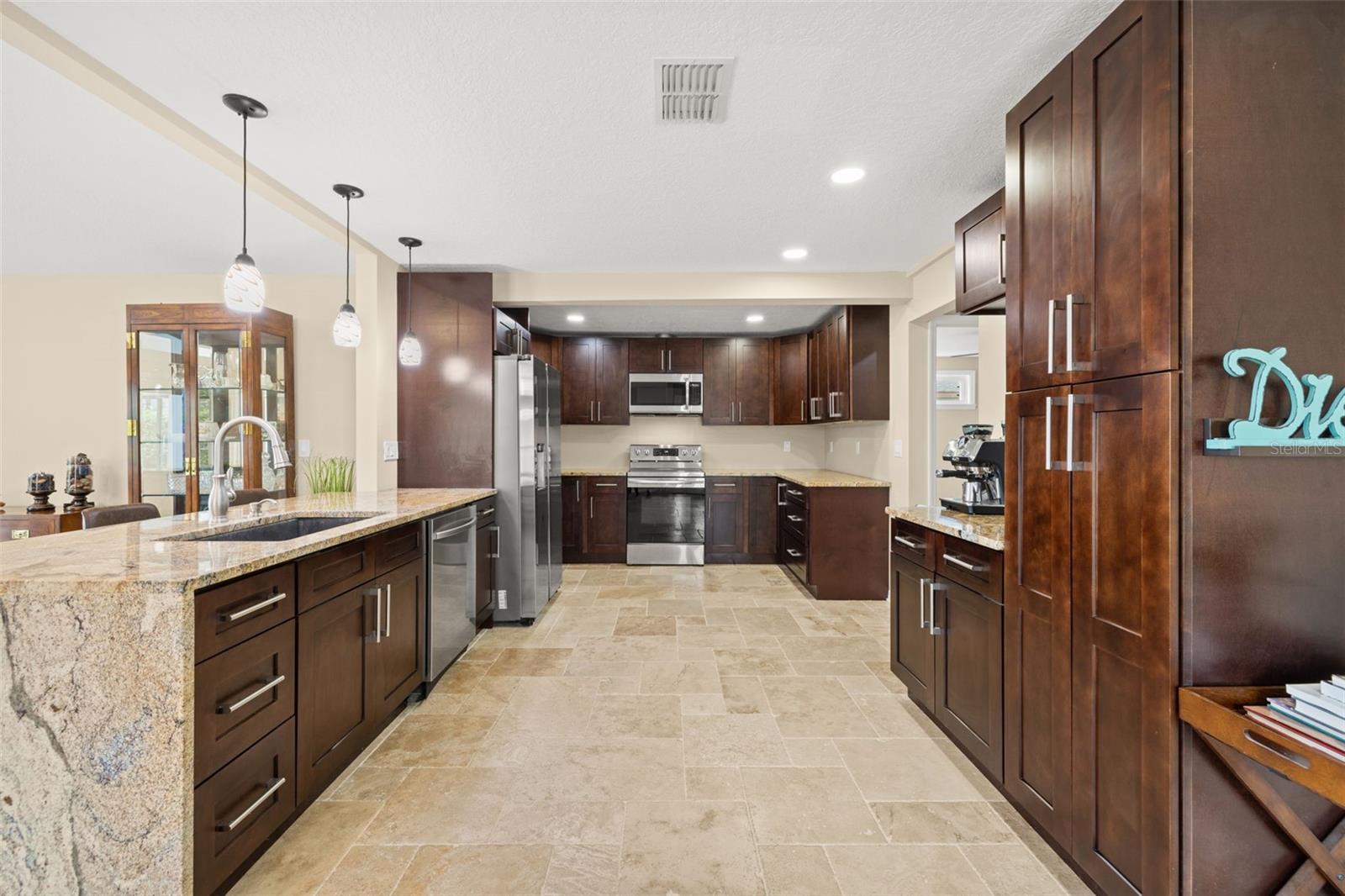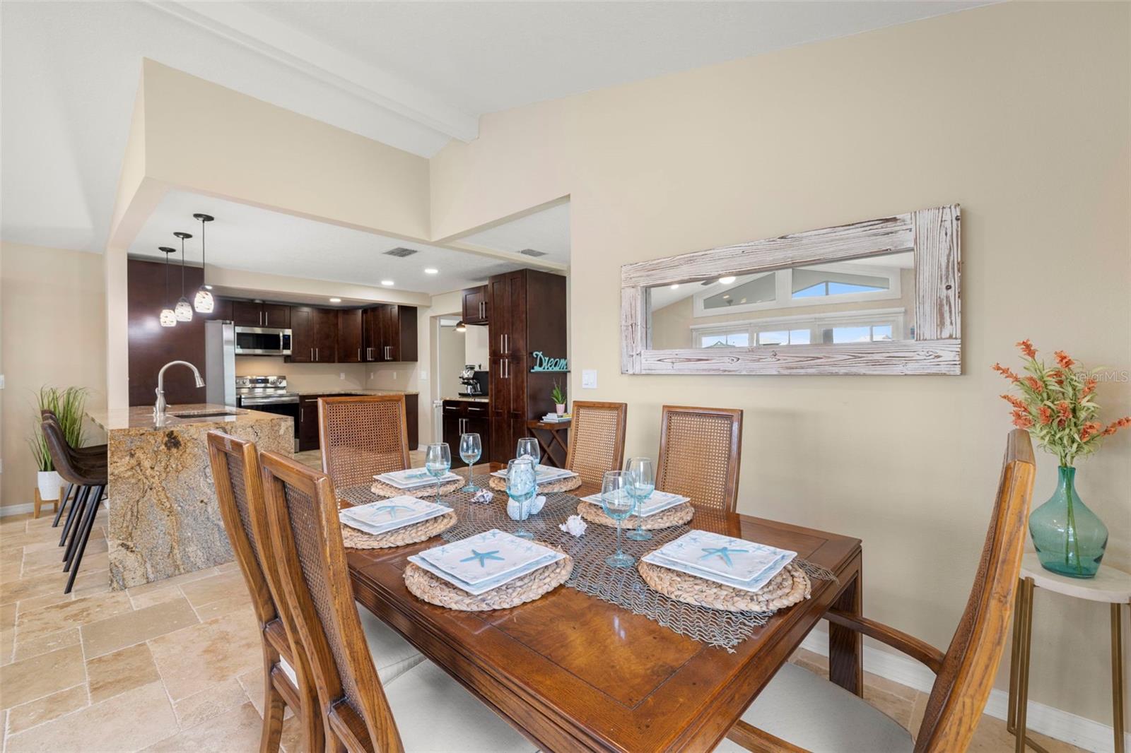 Nestled in the serene Gulf Harbors community, this stunning 3-bedroom, 2-bathroom waterfront home offers nearly 1,700 sqft of meticulously renovated living space. As you arrive, notice the beautiful pavered driveway and walkway replaced in 2022, leading you through the charming wrought-iron gated front porch. The home’s exterior shines with fresh, low-maintenance landscaping, a new roof installed in 2021, and recent exterior paint. Step inside to find an inviting atmosphere filled with natural light where travertine tile floors, replaced in 2021, meet sophisticated window treatments and contemporary lighting fixtures. The heart of this home is the designer kitchen, completely remodeled in 2021, featuring a stunning waterfall granite countertop at the breakfast bar, espresso wood soft-close cabinets, granite countertops, and stainless steel appliances. This open-concept space is anchored by a cozy white brick fireplace, creating the perfect setting for family gatherings and holiday celebrations. The owner’s suite is a true retreat, offering a private exit to the patio, a spacious walk-in closet with a custom closet system, and an ensuite bathroom with dual sinks, a stand-up shower, and additional closet space. The split bedroom floor plan ensures privacy, with an updated guest bathroom nearby, featuring granite countertops, new cabinets, and all-new plumbing fixtures, also updated in 2021.Convenience is key with an indoor laundry room that includes added cabinetry and a utility sink. The water heater and entire home was re-plumbed in 2021 providing peace of mind for years to come. Step outside through hurricane-impact triple sliding glass doors to your screened-in lanai, overlooking a waterfront oasis. The outdoor pavered patio with built in fire pit leads to your private dock with a newly installed (2023) 10,000 lb boat lift, perfect for quick access to the Gulf of Mexico. Whether you’re fishing off the dock or kayaking through the nearby Robert Crown Wilderness Area, outdoor adventures await right in your backyard. Residents of Gulf Harbors may also enjoy a private beach access for members only. To ensure your comfort in Florida’s climate, a sprinkler system with mosquito/noseeum control was installed, making outdoor living a pleasure year-round. Perfectly located with easy access to US-19, this home is just minutes away from shopping, dining, and offers a straightforward commute. Don't miss out on the chance to own this exceptional waterfront property, where you can create memories for years to come!