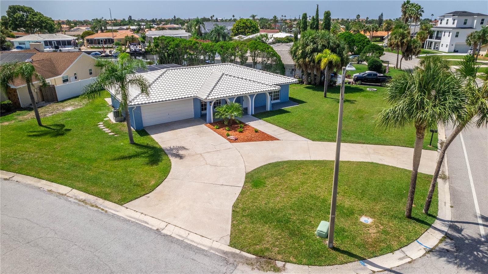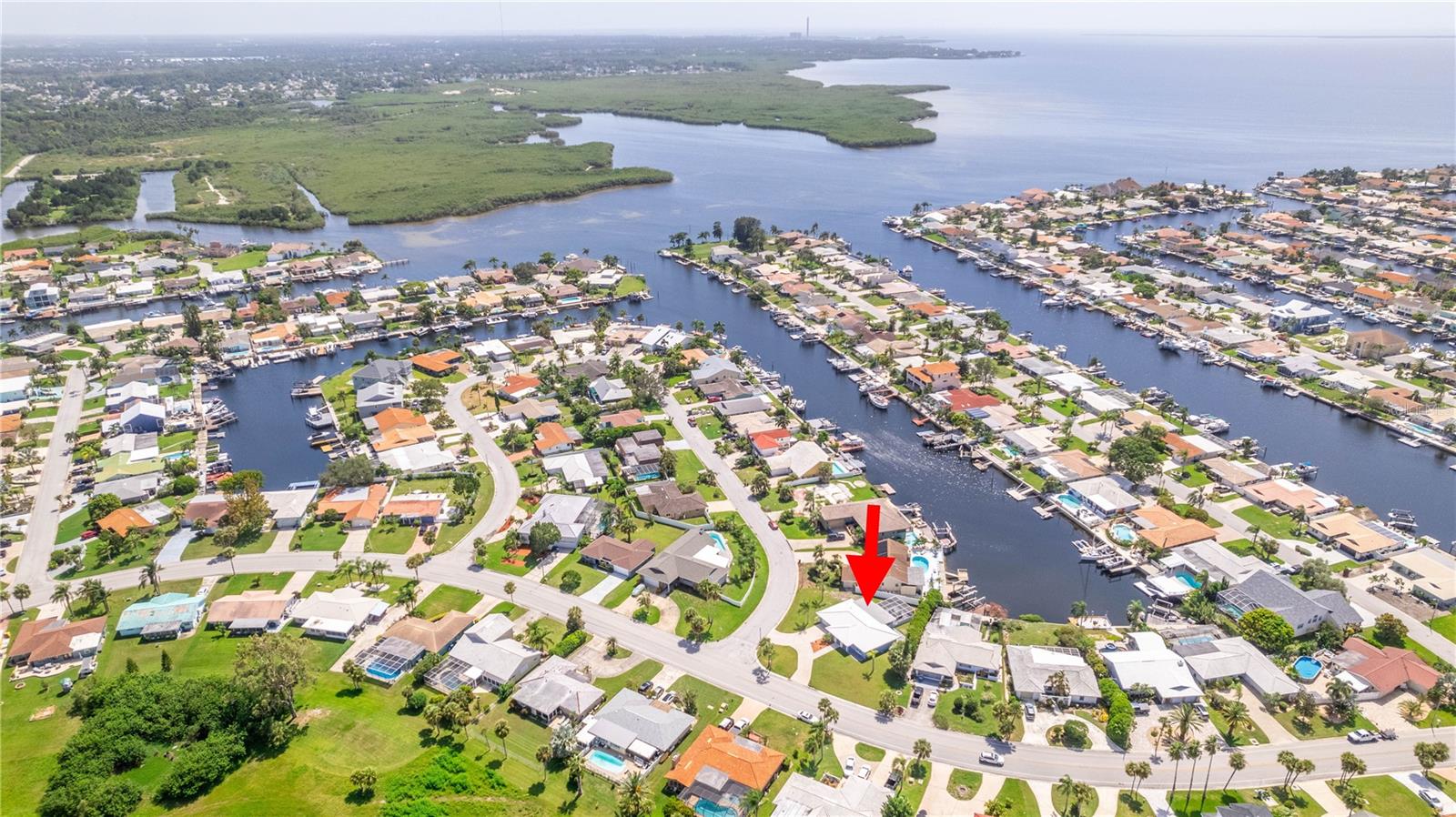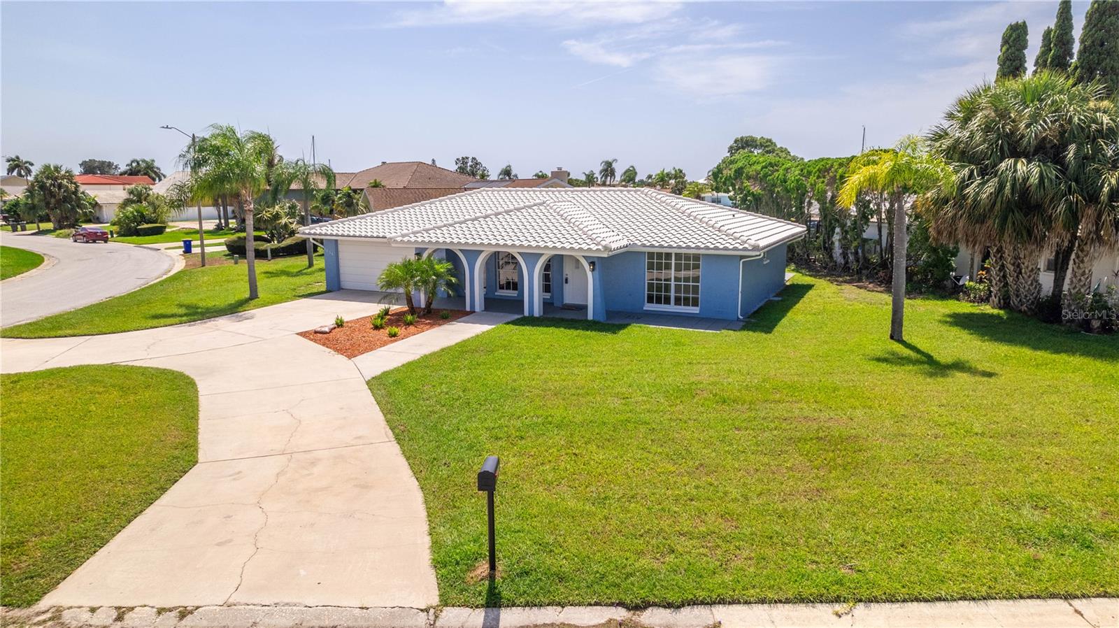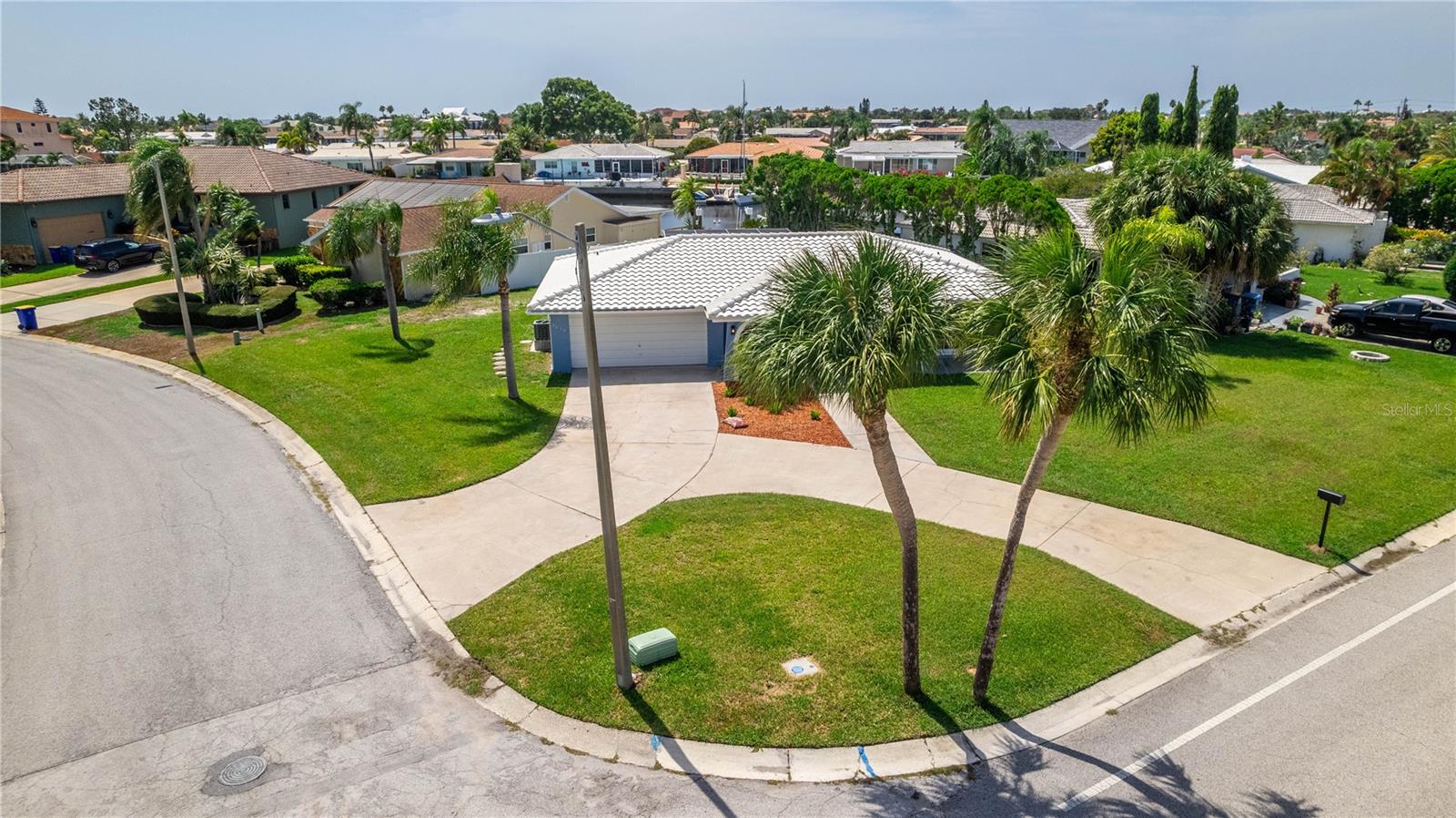 UPDATE July 26, 2024: PRICE REDUCED FOR IMMEDIATE SALE and seller's financial loss for all the improvements made are the buyer's gain! If you love the Florida lifestyle, come for a visit (and stay!) in a growing area of New Port Richey. This COMPLETELY RENOVATED (2023) concrete block constructed home is within the Gulf Harbors Floramar community, best known for its private sandy beach for neighborhood residents (optional community membership $180 per year), boat ramp, and located within a few miles of the downtown offering riverfront venues for restaurants, shops, theater. Wow. The premium lot is almost double the size of most others in this community, just under a quarter of an acre, on a corner, and pie-shaped. So much parking for your guests and even temporarily to park an RV or boat on either side of the house (Community Rules do not allow permanent storage of large vehicles visible onsite). NOT WATERFRONT but adjacent properties on both sides are waterfront. Aerial photos capture the beauty of this waterfront area. The home is a 2 Bedroom (potential for 3rd bedroom with some modifications), 2 Bathroom with over 1700 square feet of cooled living space, and a 2 car garage. With this open floor plan, the new owner will have many options for creating space to serve multi-purposes, from a cooled Florida room or office to open dining and living and family areas. The list of upgrades include a NEW 2023 (flat) roof, NEW air conditioning system with expanded duct work, Completely new kitchen with stylish cabinetry, stainless steel new appliances, new quartz countertops, new hot water heater, new washer dryer which is in a cooled laundry room. There is a 2 car garage. The whole place has been freshly painted inside and outside. All new lighting. Electric panels are updated and to code. The bathrooms have been renovated to include exceptionally pleasing stylish cabinets and tile work and all new fixtures. Master bathroom has double vanity. The backyard is simply an oasis. You MUST SEE! An open patio with concrete slab is a great place for the barbecue area. There is also an enormous screened-in outdoor area providing the enjoyment of outdoor living without worries about bugs. What a great place for pets and family members to safely enjoy the outdoors. Add some twinkling lights overhead, maybe a bar, a hot tub and you will be in paradise. This home is worth the time to come see it! No expense has been spared and it is like new - really. Furnishings available. Schedule today - don't wait!