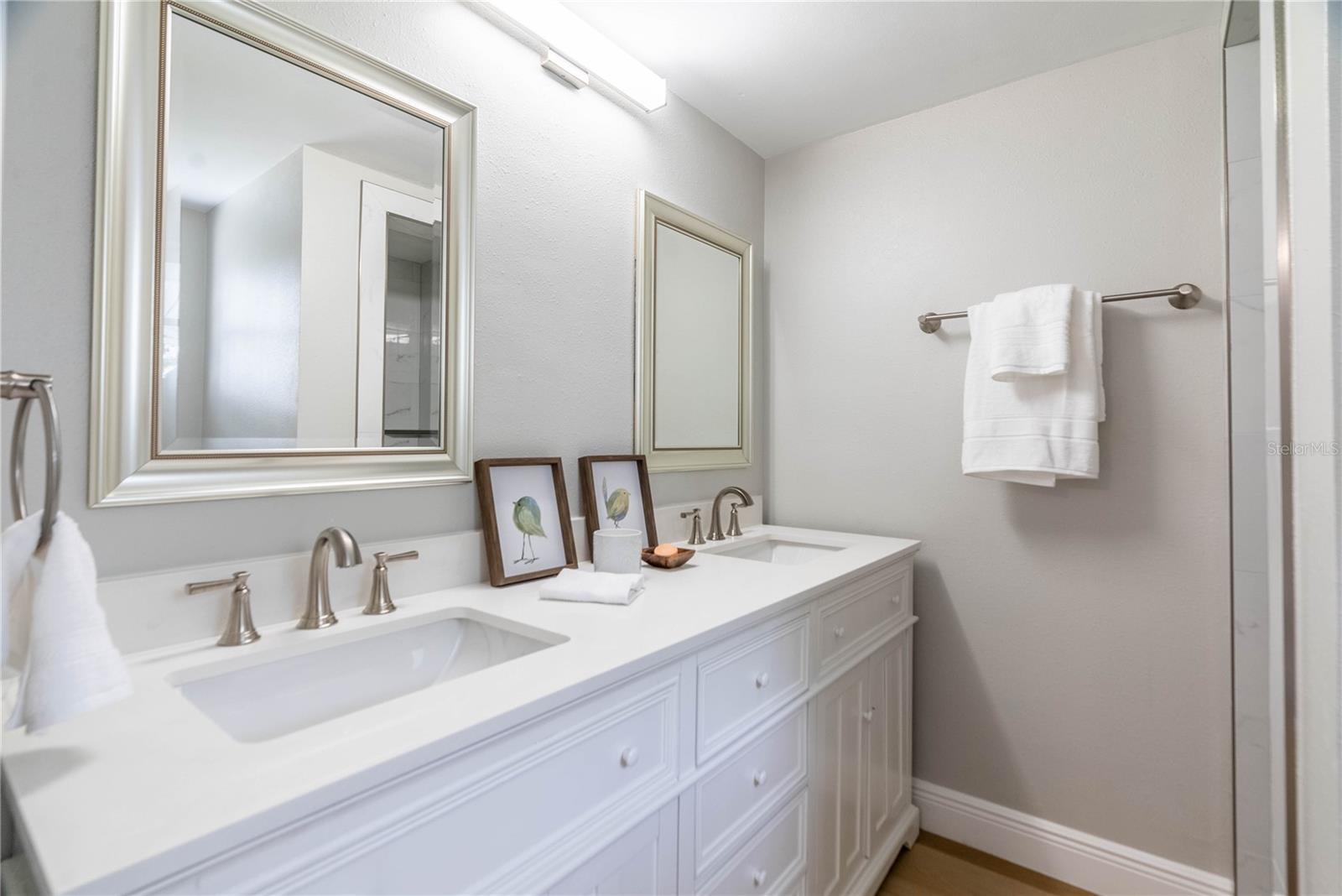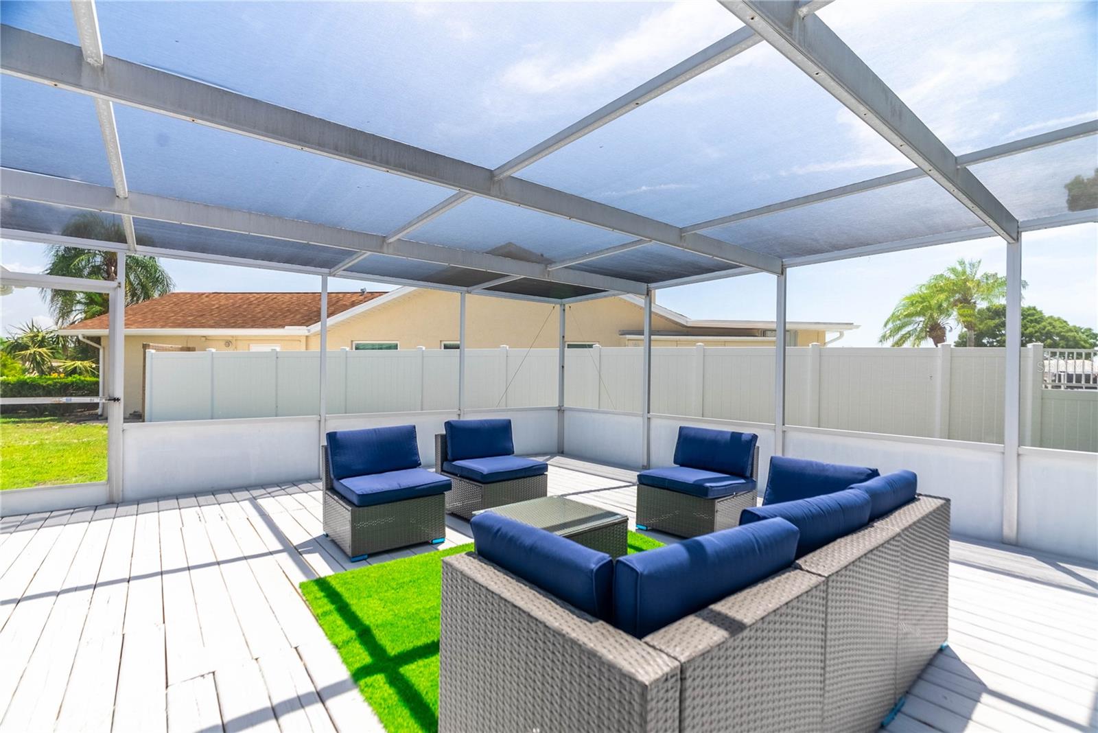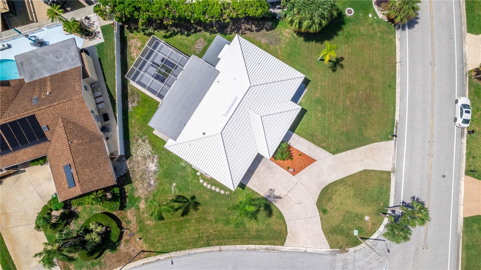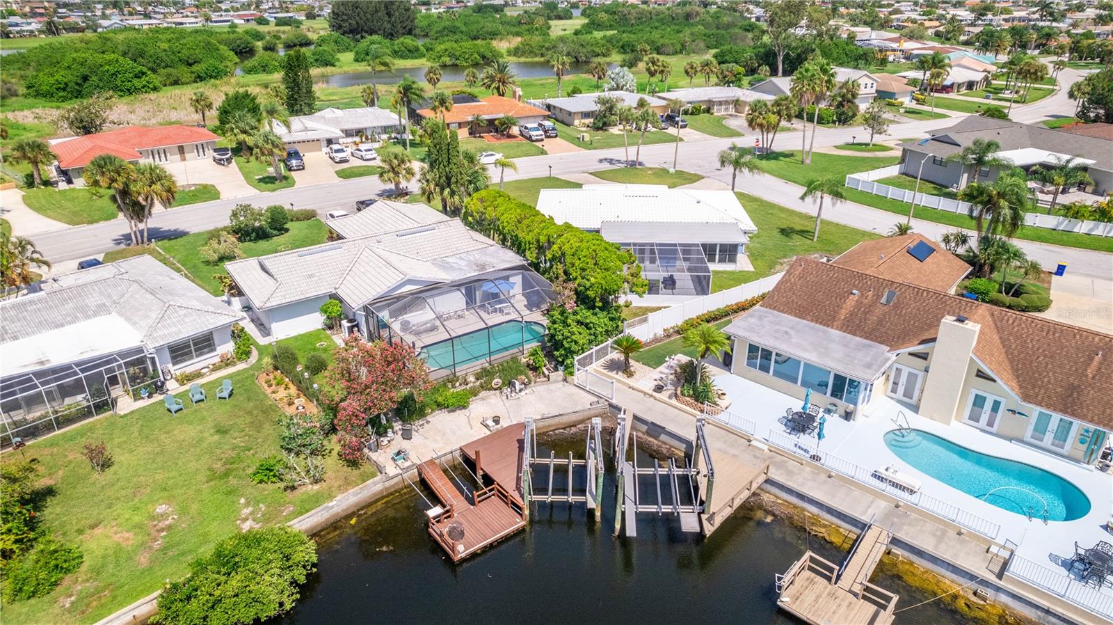 UPDATE July 26, 2024: PRICE REDUCED FOR IMMEDIATE SALE and seller's financial loss for all the improvements made are the buyer's gain! If you love the Florida lifestyle, come for a visit (and stay!) in a growing area of New Port Richey. This COMPLETELY RENOVATED (2023) concrete block constructed home is within the Gulf Harbors Floramar community, best known for its private sandy beach for neighborhood residents (optional community membership $180 per year), boat ramp, and located within a few miles of the downtown offering riverfront venues for restaurants, shops, theater. Wow. The premium lot is almost double the size of most others in this community, just under a quarter of an acre, on a corner, and pie-shaped. So much parking for your guests and even temporarily to park an RV or boat on either side of the house (Community Rules do not allow permanent storage of large vehicles visible onsite). NOT WATERFRONT but adjacent properties on both sides are waterfront. Aerial photos capture the beauty of this waterfront area. The home is a 2 Bedroom (potential for 3rd bedroom with some modifications), 2 Bathroom with over 1700 square feet of cooled living space, and a 2 car garage. With this open floor plan, the new owner will have many options for creating space to serve multi-purposes, from a cooled Florida room or office to open dining and living and family areas. The list of upgrades include a NEW 2023 (flat) roof, NEW air conditioning system with expanded duct work, Completely new kitchen with stylish cabinetry, stainless steel new appliances, new quartz countertops, new hot water heater, new washer dryer which is in a cooled laundry room. There is a 2 car garage. The whole place has been freshly painted inside and outside. All new lighting. Electric panels are updated and to code. The bathrooms have been renovated to include exceptionally pleasing stylish cabinets and tile work and all new fixtures. Master bathroom has double vanity. The backyard is simply an oasis. You MUST SEE! An open patio with concrete slab is a great place for the barbecue area. There is also an enormous screened-in outdoor area providing the enjoyment of outdoor living without worries about bugs. What a great place for pets and family members to safely enjoy the outdoors. Add some twinkling lights overhead, maybe a bar, a hot tub and you will be in paradise. This home is worth the time to come see it! No expense has been spared and it is like new - really. Furnishings available. Schedule today - don't wait!