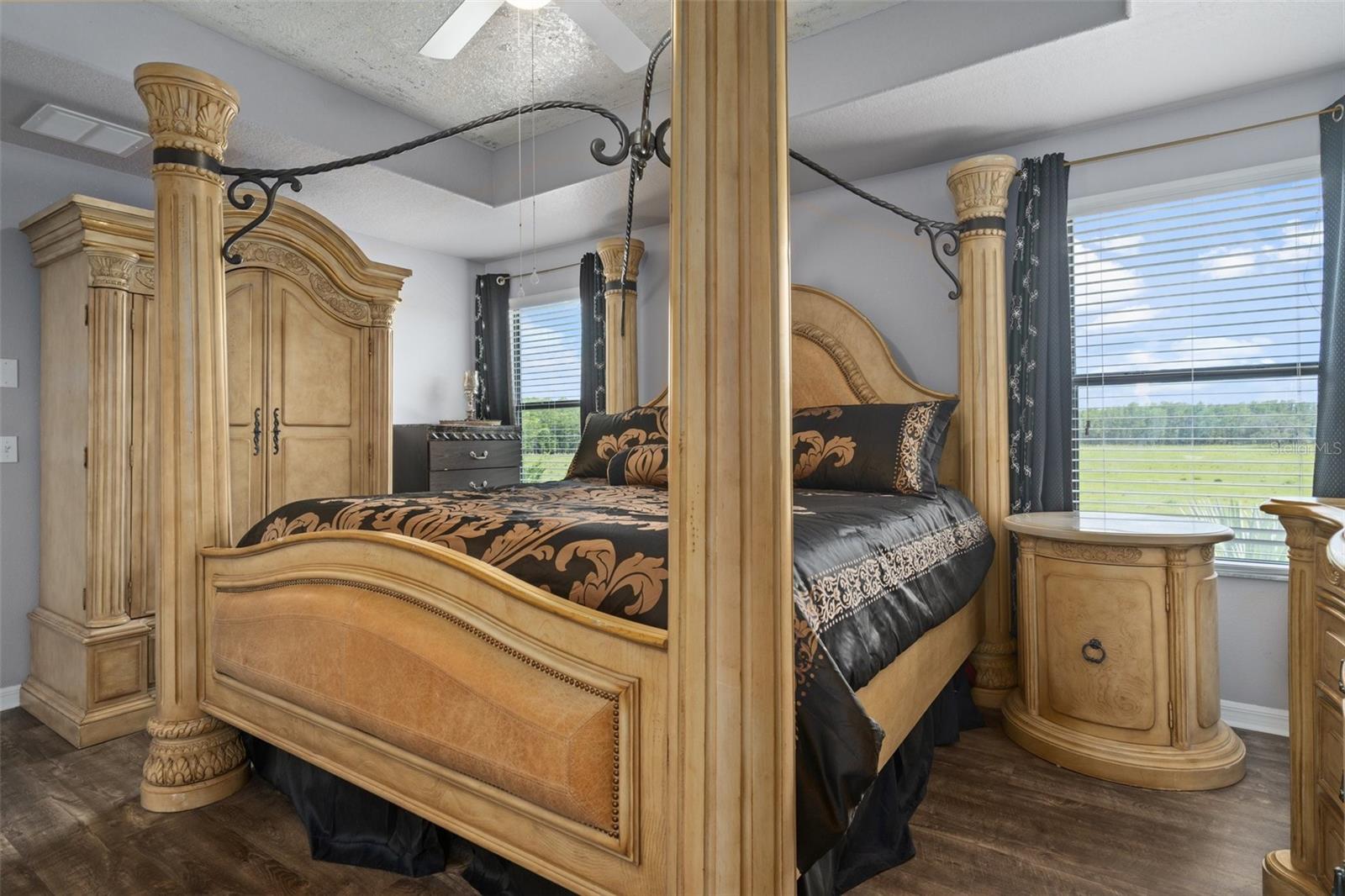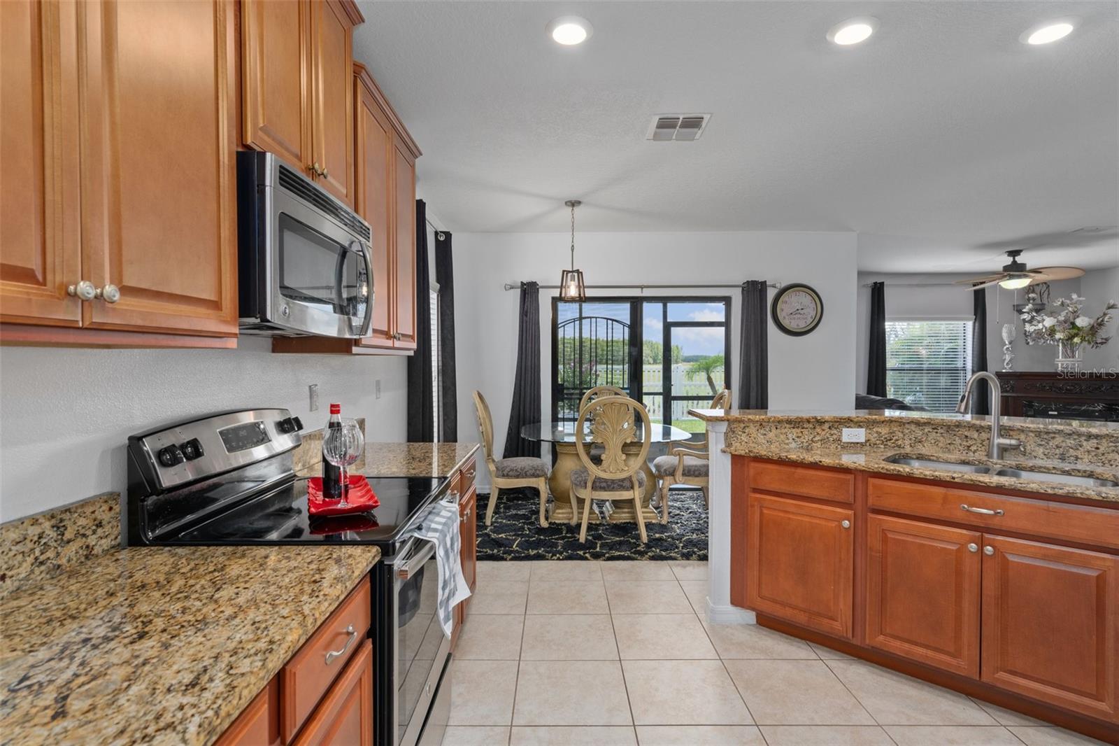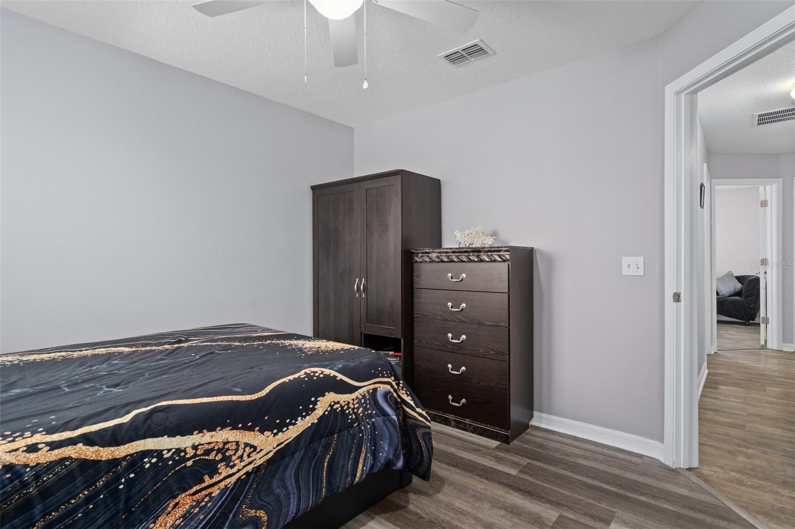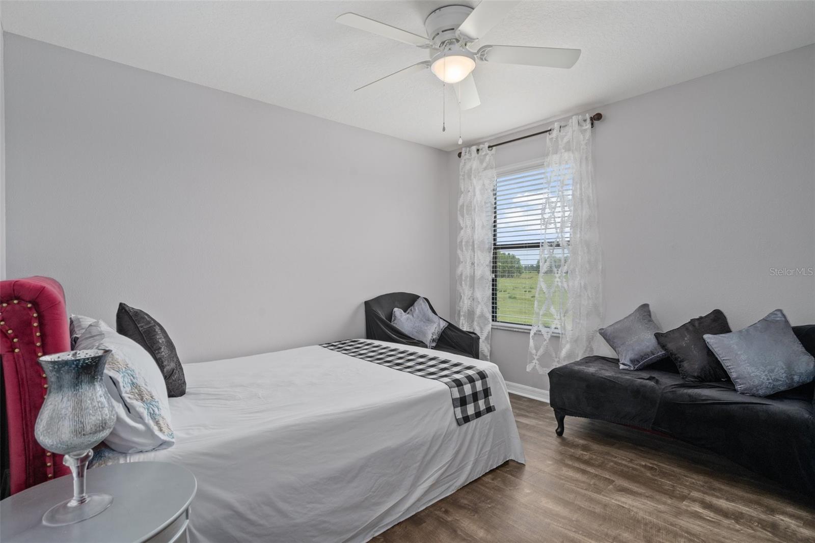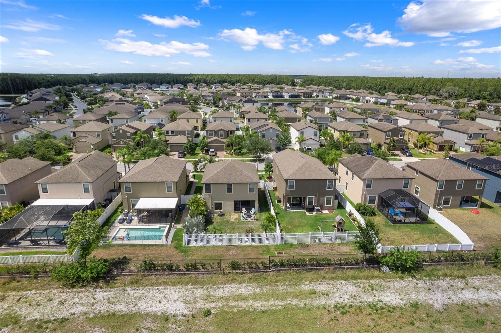 YOU NEED TO SEE ALL THE NEW UPGRADES!!! Your dream home awaits in the heart of the highly sought-after Trinity Preserve gated Community with LOW HOA FEES AND NO CDD FEES! This immaculate 3-bedroom, 2.5-bathroom gem boasts a 2-car garage and a great quantity of upgrades that capitalizes the potential this home has to offer. Step inside to find luxury vinyl plank flooring throughout, including on the grand staircase, first bedroom, and master walk-in closet. Ceramic tile found in the kitchen and bathrooms. The downstairs half bath features fresh paint, updated backsplash, and recently installed LED lighting that lasts 25 years!! Both upstairs bathrooms have been freshly painted with recently installed LED lighting as well. The first floor boasts a spacious living room, charming dining room, and contemporary kitchen with granite countertops, wood cabinets, and a large pantry. A new fridge (2024), garbage disposal, and a newer soon-to-be-installed stove complete the kitchen. ALL APPLIANCES CONVEY INCLUDING WASHER AND DRYER. The dining room now has a stylish new light fixture and opens to a screened back porch with a freshly painted floor. Upstairs, the freshly painted first bedroom has a new ceiling fan, with all bedrooms featuring updated fans. The laundry room has been freshly painted. The two-car garage offers freshly painted walls, a newer garage door opener, and ample storage space. Additional features include two attics, security doors, and hurricane shutters!! The exterior has been meticulously maintained, with new stone edging, fresh rock landscaping, and a newly painted front door. Majority of the sprinkler heads have been replaced, and new sod has been installed in various areas of the yard. You won't need to clean the driveway for a while as it has been freshly cleaned along with the roof. The AC unit has been regularly serviced and recently inspected. A backyard made for entertaining consists of a view of pastureland, fully fenced with partial privacy fence, updated firepit area, and new steppingstones. This home truly offers the best of both worlds, seamlessly blending the conveniences of community living with the tranquility of a peaceful nature view. No rear neighbors as the home backs up to 20 acres of pastureland owned by the county. Not to mention that the A rated elementary school is located right outside the community. You will love the convince of an abundance of nearby stores and restaurants at your fingertips. Don't miss the opportunity to call this meticulously upgraded residence your own. Welcome to a life of luxury and serenity in Trinity Preserve!