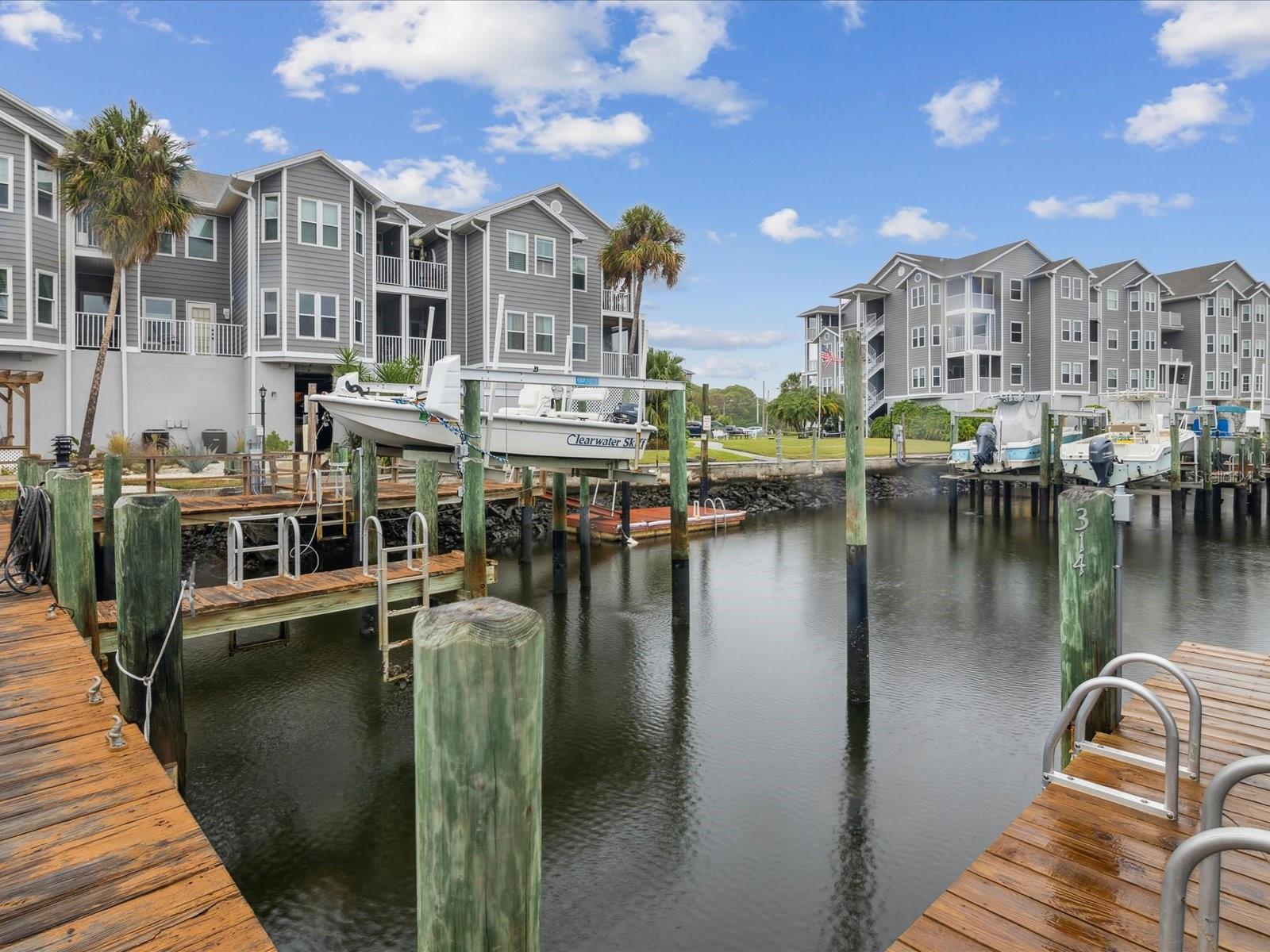 EXPERIENCE LUXURY OF WATERFRONT LIVING WITH YOUR OWN PRIVATE BOAT SLIP - WHERE EVERY DAY IS A VACATION. This condo is move-in ready. It has new hurricane windows, new roof, new docks and upgraded exterior siding. The kitchen features updated cabinets, brand new appliances, granite countertops, and a closet pantry. The master bedroom is spacious and boasts a private balcony, walk-in closet, and separate master bathroom. The condo also has two balconies, both of which are screened in, perfect for enjoying the beautiful Florida weather. This unit has newer beautiful laminate flooring throughout, a newer AC (2020), and a hot water heater from 2022. You will have an assigned parking spot under the building as well as additional storage for bicycles and kayaks. An elevator is also available for your convenience. This is a maintenance-free living experience, which includes exterior building and flood insurance, roof and common area maintenance, as well as pool, water, sewer, and garbage services. The Gulf Landing amenities include a large clubhouse, heated pool, hot tub, sauna, tennis courts, and a private boat launch. As an added bonus, ownership in Mariners Way also provides access to the Gulf Harbor Private Beach Club, which offers covered picnic tables, grills, beach activities, and of course, a beautiful beach for your enjoyment. Don't miss out on this incredible opportunity to own your own piece of paradise in Florida!