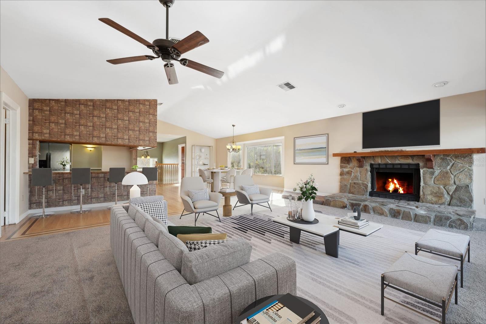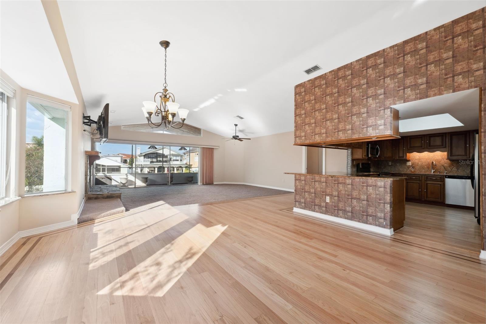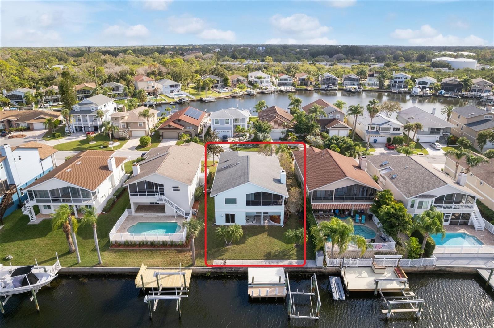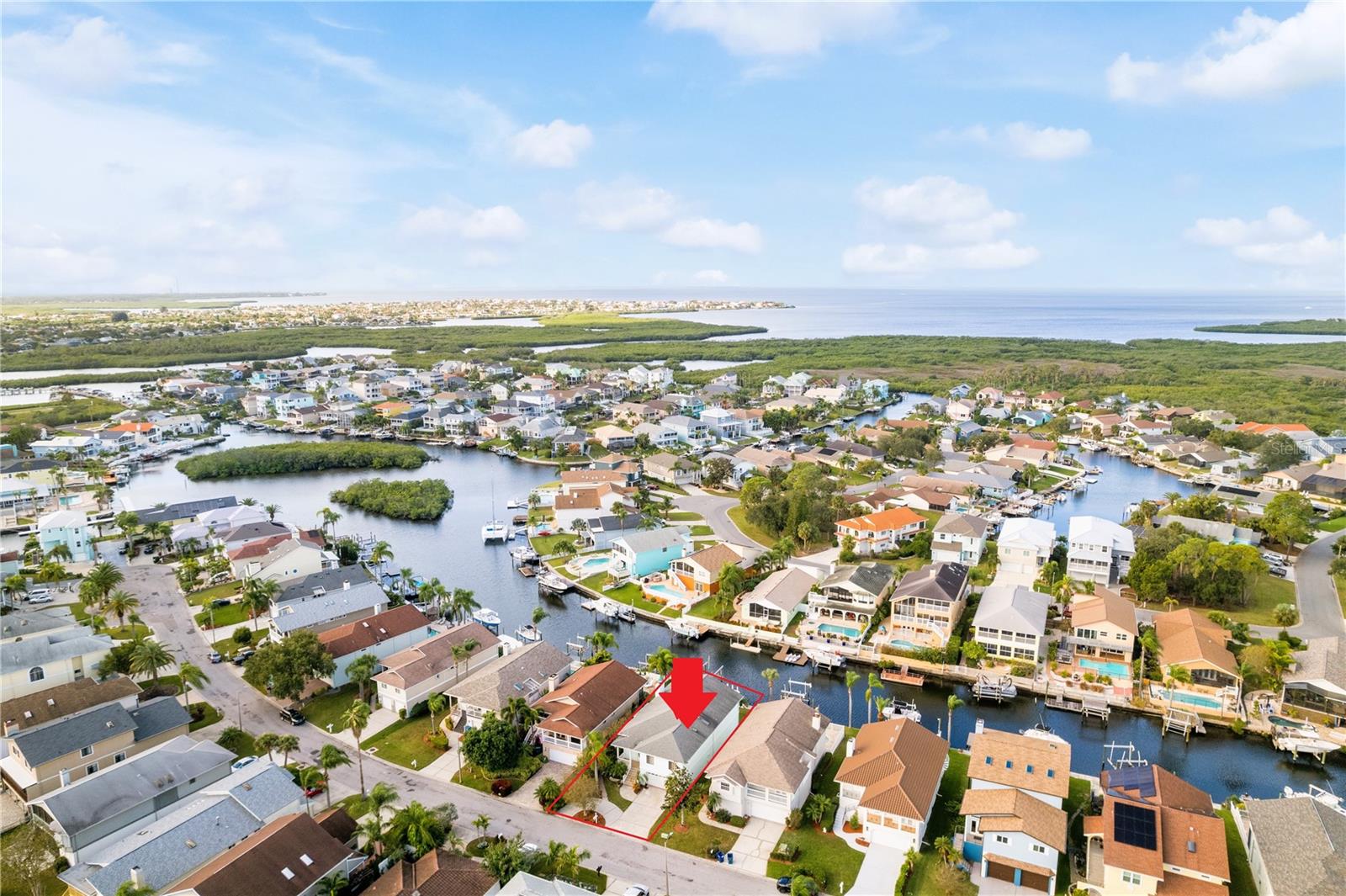 Welcome to Sea Forest at Gulf Harbors, where waterfront living meets unparalleled luxury! This exquisite two-story home offers an exclusive retreat in a community that boasts a wealth of amenities, including a clubhouse, community pool, hot tub, BBQ zone, tennis courts, boat ramp, and a private Beach Club. As you step into this spacious residence, you'll be greeted by the warmth of natural light dancing across recently refinished red oak wood flooring. The main living area on the second floor features an expansive, open floor plan with cathedral ceilings, creating an inviting and airy atmosphere. The high-end kitchen is a chef's dream, complete with beveled wood cabinetry, a generous expanse of granite counters, and a stainless steel appliance package. The breakfast bar offers a perfect spot for casual meals, while the adjacent dining area, set in a charming bay window with matching granite window sills, provides an ideal space for more formal gatherings. The substantial living room is a focal point, boasting a wood-burning fireplace, a mounted TV, and triple pocket sliders that open to a covered and screened lanai. For those who love outdoor living, open the sliders to expand your living space and enjoy the refreshing breeze. The lower level of this home is a versatile bonus area that could serve as a guest suite, games room, or home business. The sliding glass doors leading outside have been upgraded to hurricane impact standards, providing both safety and peace of mind. Generous storage options, plus a golf cart nook at the back of the 2 car garage. Step outside to discover paved walkways, tropical landscaping, and a lawn area, creating an idyllic setting to enjoy the waterfront lifestyle. The property features its own dock and boat lift, allowing you to store your boat barnacle-free and sail just minutes along the canal to the open Gulf—with no bridges to navigate. Noteworthy updates include a 2008 roof with peel-and-stick underlayment, a 2017 electrical panel upgrade, and in 2019, the installation of five new hurricane-rated sliding glass doors and a window. Owners flood insurance policy is assumable at $2611. Indulge in the serene experience of sitting on your dock, witnessing fish jumping, dolphins swimming, and occasionally encountering a friendly manatee. Whether you're a water enthusiast, a golf lover, or someone who appreciates the finer details in life, this waterfront home in Sea Forest at Gulf Harbors combines practicality with luxury to create the perfect coastal retreat.