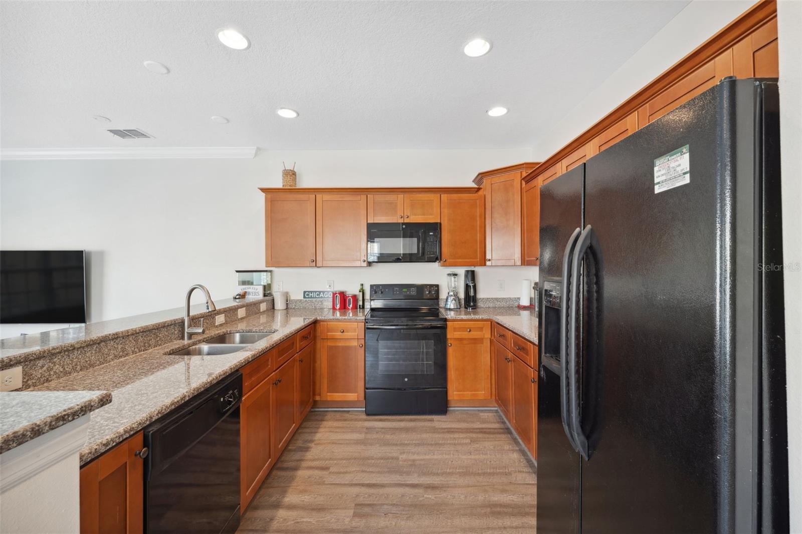 Fall head over heels for this beautiful townhouse! Enjoy resort-style living in this three-story end unit situated in the maintenance-free gated community of Sea Forest Beach Club. The ground floor consists of a single-car garage and multiple storage areas. A covered patio overlooks a modest, fenced backyard area where little ones or pets can play. Main living spaces take up most of the second story, with a spacious living room and a cozy dining area. There’s not a lick of carpet to be found - brand new vinyl flooring throughout is chic and easy to maintain. Whether you’re cooking for two or ten, you’ll love the modern, upgraded kitchen with its newer granite counters and new appliances. There is a sizable bedroom on this floor for ease of access; the bathroom here has been remodeled recently, too. Up the stairs to the third and final level, two more bedrooms await, both with ensuite bathrooms for the ultimate in comfort and privacy. The primary bedroom suite has a huge walk-in closet, and the primary bathroom features dual sinks, a garden tub, and a separate shower. There’s even an indoor laundry room directly across from the stairs for your convenience. HOA fees include ground, exterior, and roof maintenance; basic cable; and trash removal. Avail yourself of some fabulous amenities, like 2 community pools, a fitness center, a private dog park, and private beach access via your membership to the Gulf Harbor Private Beach Club! Located just west of US-19, travel to the sponge docks of Tarpon Springs and the gorgeous beaches of Clearwater is quick and easy. It’s minutes away from the charm of downtown New Port Richey, with plenty of shopping and dining options nearby. There are a plethora of parks in a 5-mile radius, including the recently revamped Sims Park, Cotee River Park, Grand Boulevard Park, Robert K Rees Memorial Park, and the New Port Richey Recreation & Aquatic Center. Your happily ever after is within reach!