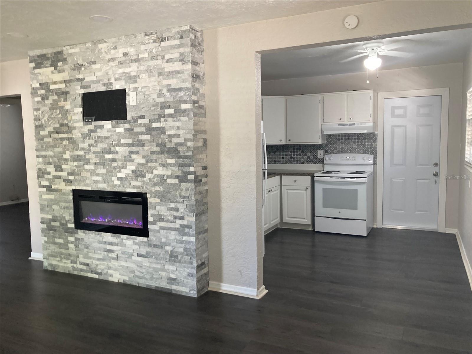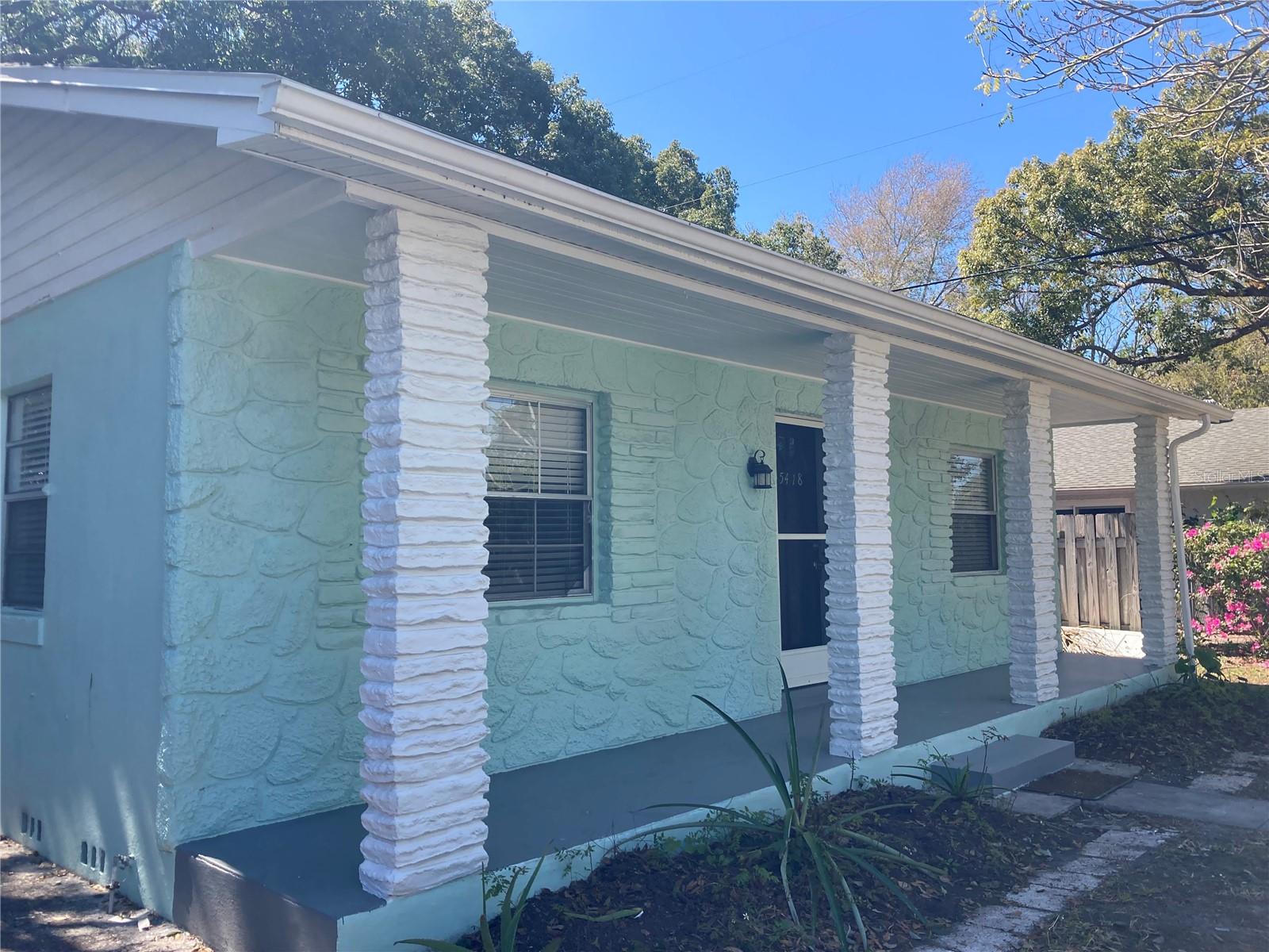 Come view this great house! Wonderful location. Easy access to US 19 and tucked away on a nice little street. This 2 bedroom, one bathroom house is adorable! Brand New Roof in February 2024! Also has a new back door, new backsplash, beautiful new electric fireplace set into an amazing accent wall space! Newer appliances and newer bottom cabinets in the kitchen. Move right in or do some more updating and finish making it your perfect new home! Enjoy the outdoors? Drink your morning coffee on the long front porch. Nice big yard and a long driveway with room for multiple vehicles. The yard is already partially fenced. There is even a detached one car garage with washer/dryer hookups! All this, close to downtown New Port Richey! Sims Park, splash park and playground, boat ramps, the beach at Robert K. Rees park, restaurants, night life and shopping just minutes away!