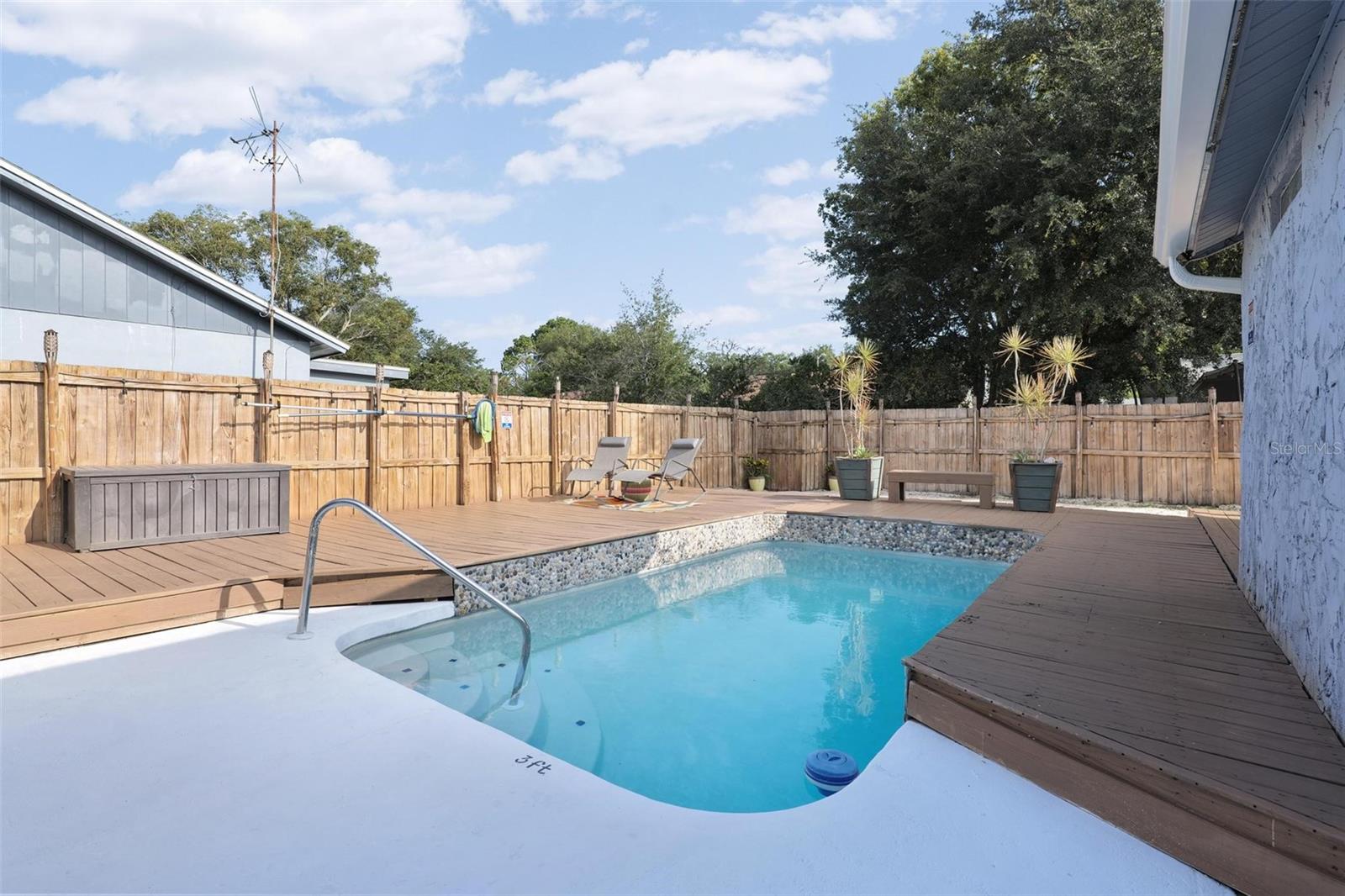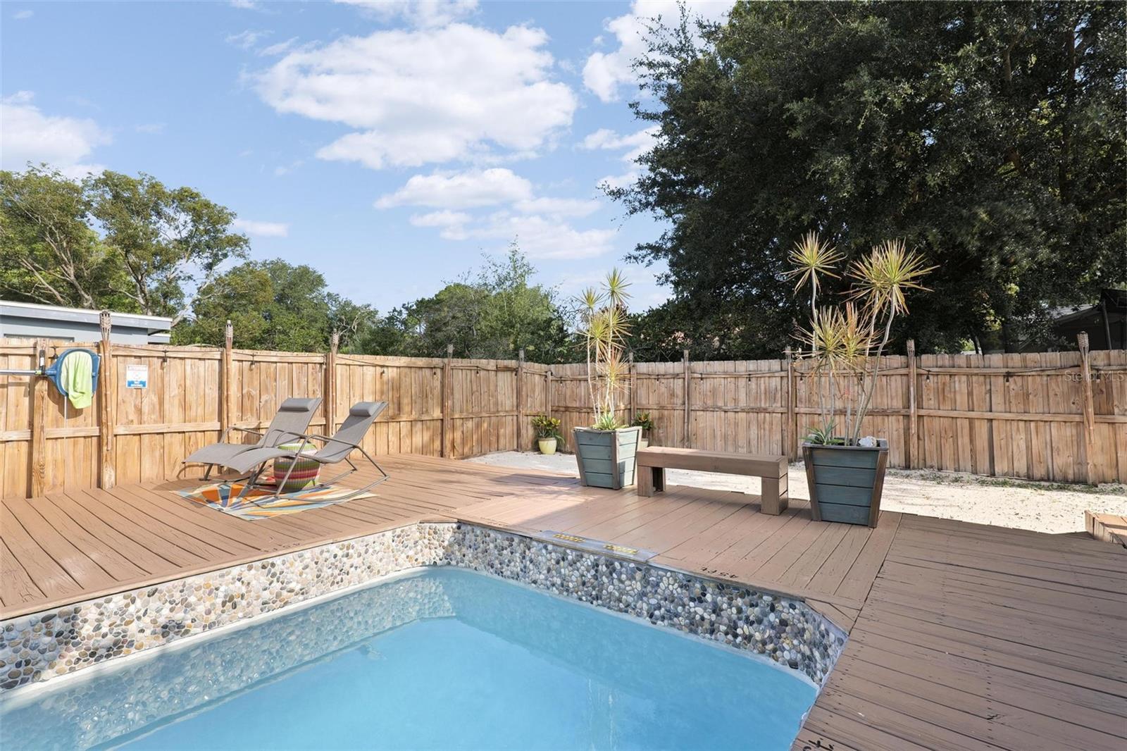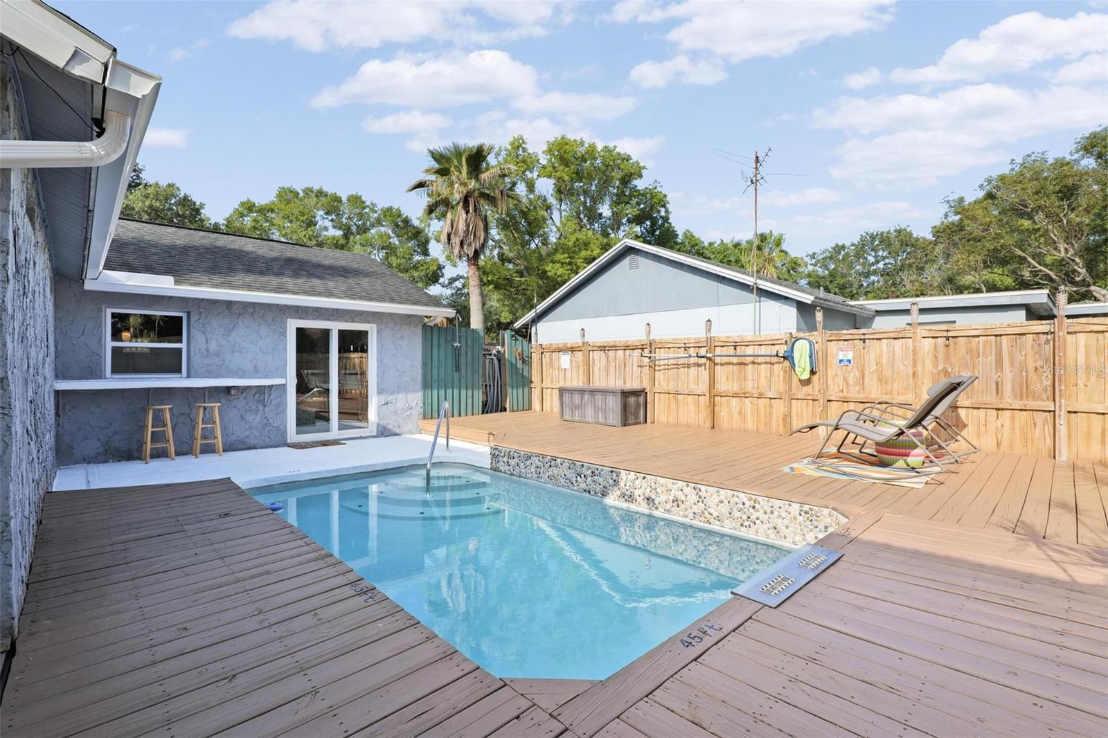 No damage, no flooding from either hurricane we are Milton & Helene proof!!!!! Welcome to your home in the desirable Seven Springs Homes subdivision! This stunning 3-bedroom, 2-bathroom gem has been maintained and upgraded. Enjoy outdoor living at its finest with a freshly protected weather-protecting deck, ideal for entertaining guests or relaxing with family. The pool, refinished in 2023, is complemented by a new skimmer and plumbing, as well as a new filter and pump with a 4-year warranty, ensuring years of enjoyment without worry. The back of the house has brand-new gutters, enhancing both aesthetics and functionality. Inside, this home is remodeled which includes new bathrooms, floors, granite countertops, and a stylish wet bar. The kitchen features newer appliances, making meal preparation a delight. Additional highlights include an AC unit installed in 2017 and a roof replaced in 2016, providing peace of mind and energy efficiency. Don't miss the opportunity to make this exquisite property your own - schedule a viewing today and prepare to be captivated by its beauty and charm!"