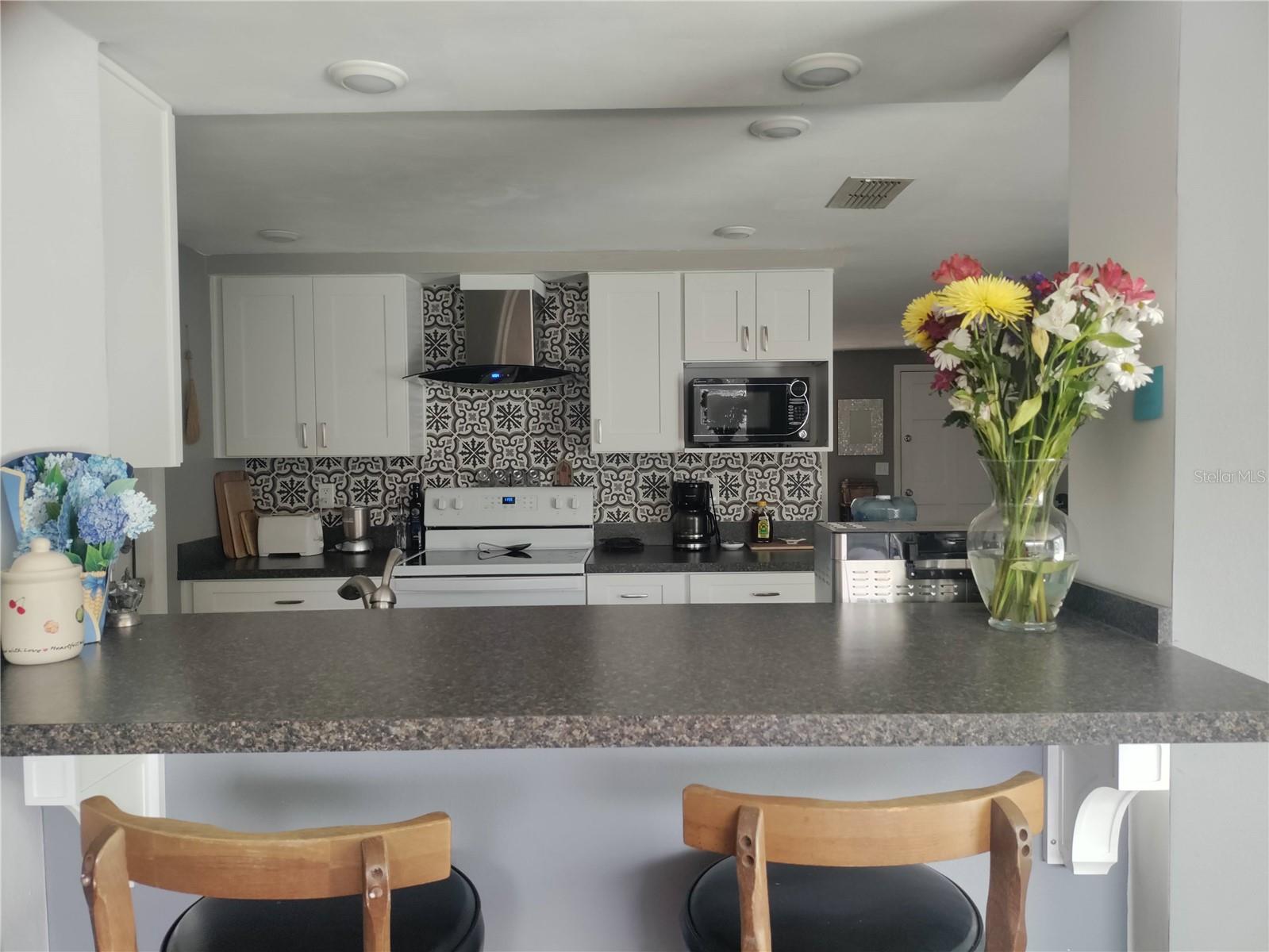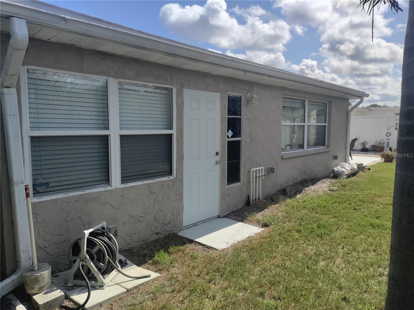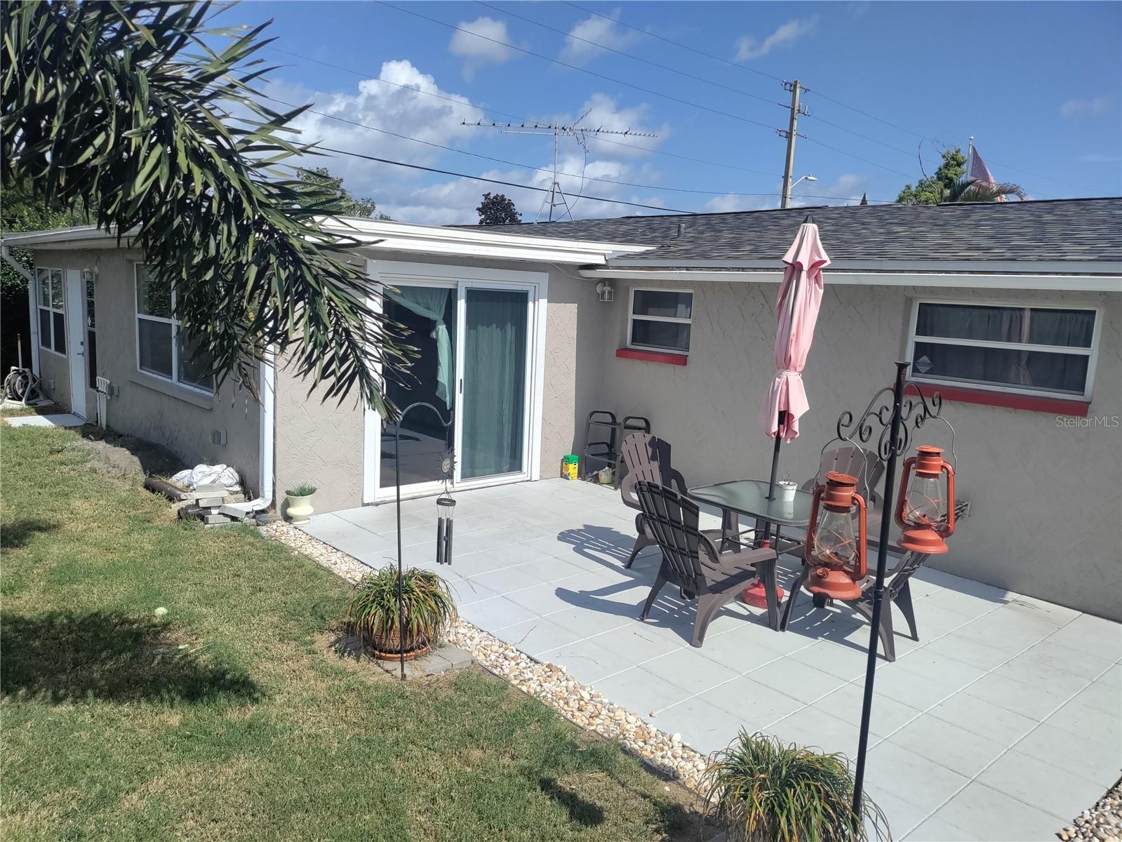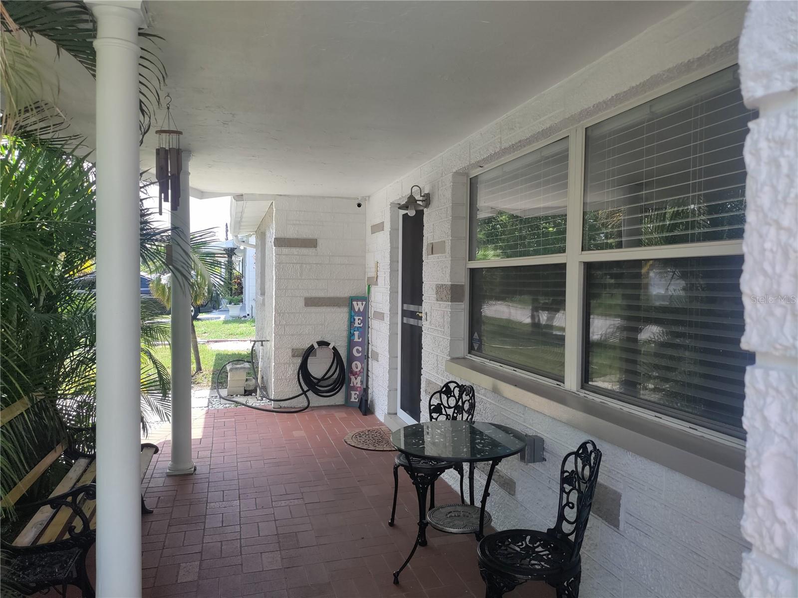 1,128 SF 2-bedroom 2 bath 1 car garage block home with an extra 12' x 12' heat/air BONUS room that can be used as a den, an office, gaming room, or 3rd bedroom. The Roof, HVAC, electrical panel, recessed lighting, kitchen cabinets and counters, appliances, and a sliding glass door that leads to a large patio have all been updated less than 5 years ago. White soft close shaker cabinets and large counter seating area. Matching ceramic tile throughout. Carpet in primary bedroom and vinyl wood plank in large dining room. Partially cedar lined closets in bedrooms. New screens in windows. Fully fenced backyard with MATURE landscaping in both the front and back yards for maximum privacy. Extra parking spaces in front of the house. Included with the home is a hard wired 5 camera surveillance system and recorder, kitchen appliances, (microwave, energy efficient refrigerator and electric stove) garage door opener with one remote, wooden curtain rods in the primary bedroom and 2” faux white wood blinds. All this within the GREAT LOCATION of the Colonial Hills neighborhood. No HOA or CDD dues and no flood insurance required.