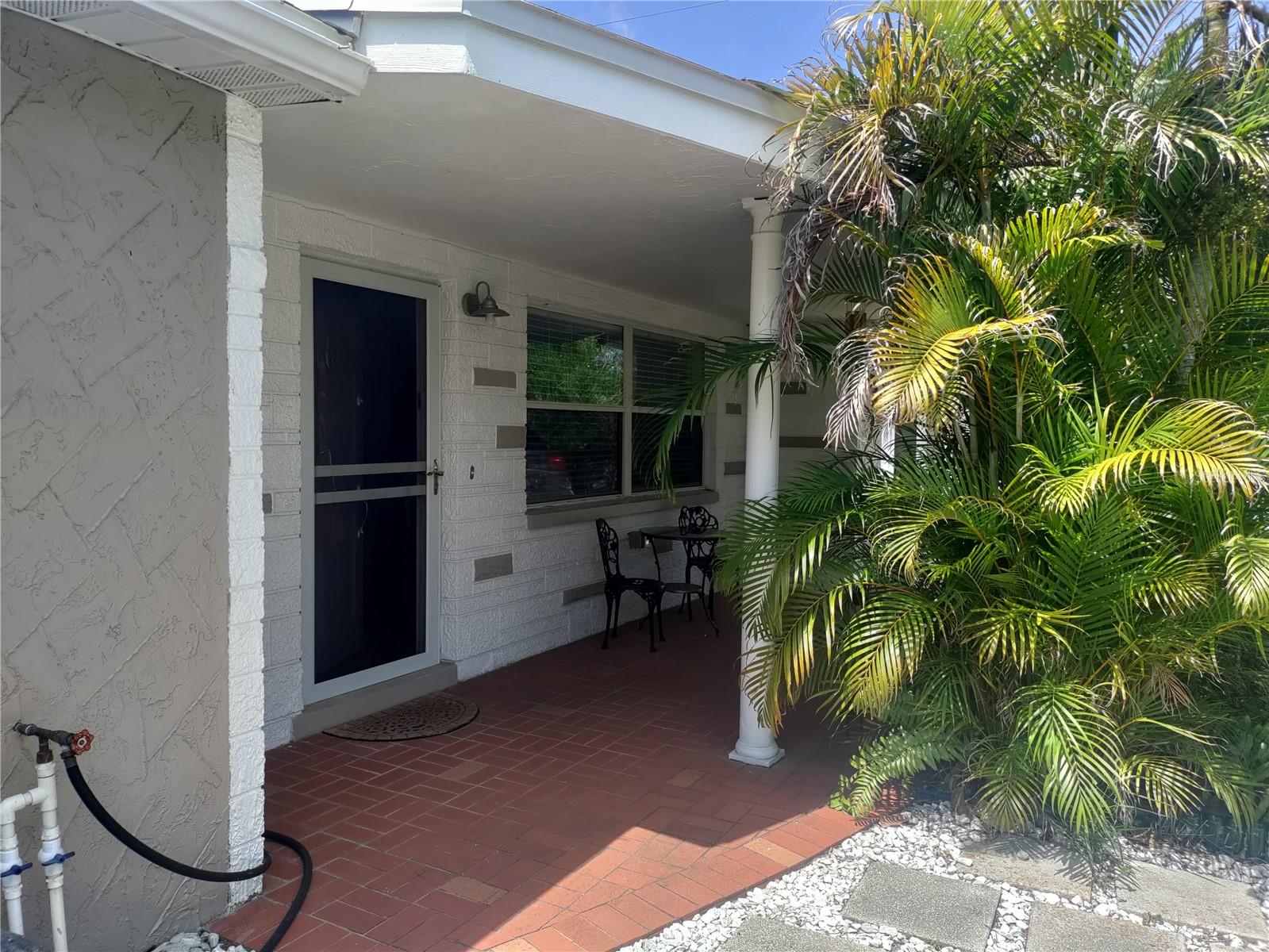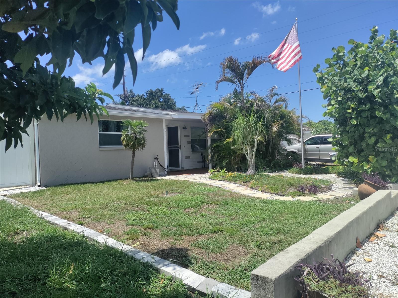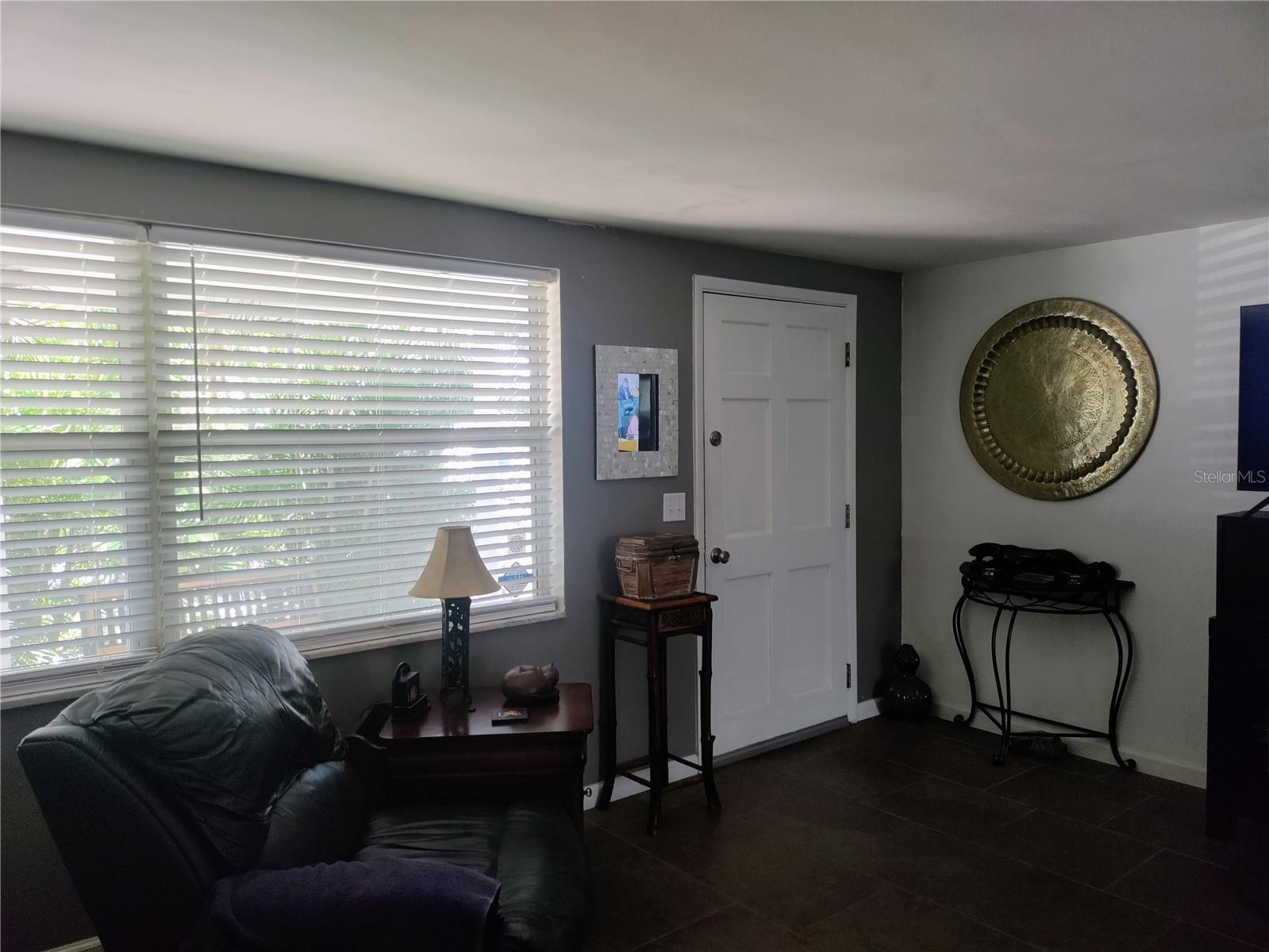 1,128 SF 2-bedroom 2 bath 1 car garage block home with an extra 12' x 12' heat/air BONUS room that can be used as a den, an office, gaming room, or 3rd bedroom. The Roof, HVAC, electrical panel, recessed lighting, kitchen cabinets and counters, appliances, and a sliding glass door that leads to a large patio have all been updated less than 5 years ago. White soft close shaker cabinets and large counter seating area. Matching ceramic tile throughout. Carpet in primary bedroom and vinyl wood plank in large dining room. Partially cedar lined closets in bedrooms. New screens in windows. Fully fenced backyard with MATURE landscaping in both the front and back yards for maximum privacy. Extra parking spaces in front of the house. Included with the home is a hard wired 5 camera surveillance system and recorder, kitchen appliances, (microwave, energy efficient refrigerator and electric stove) garage door opener with one remote, wooden curtain rods in the primary bedroom and 2” faux white wood blinds. All this within the GREAT LOCATION of the Colonial Hills neighborhood. No HOA or CDD dues and no flood insurance required.