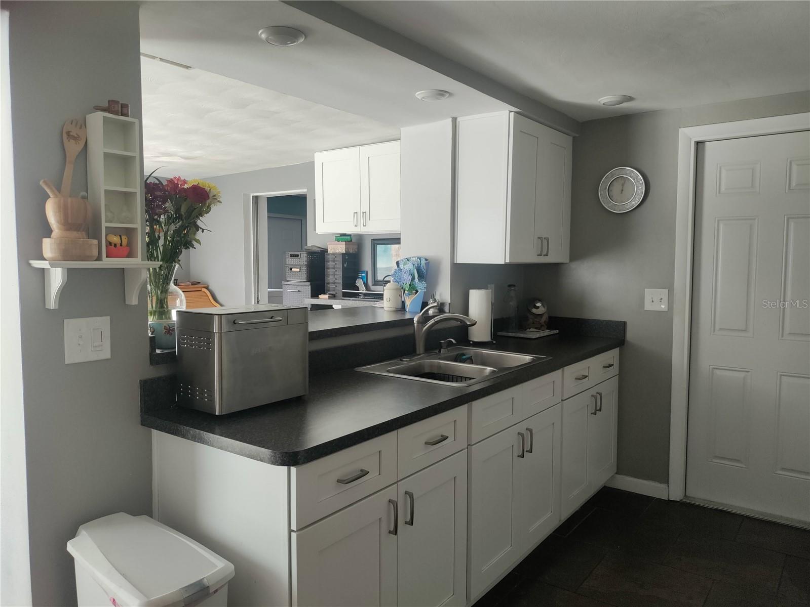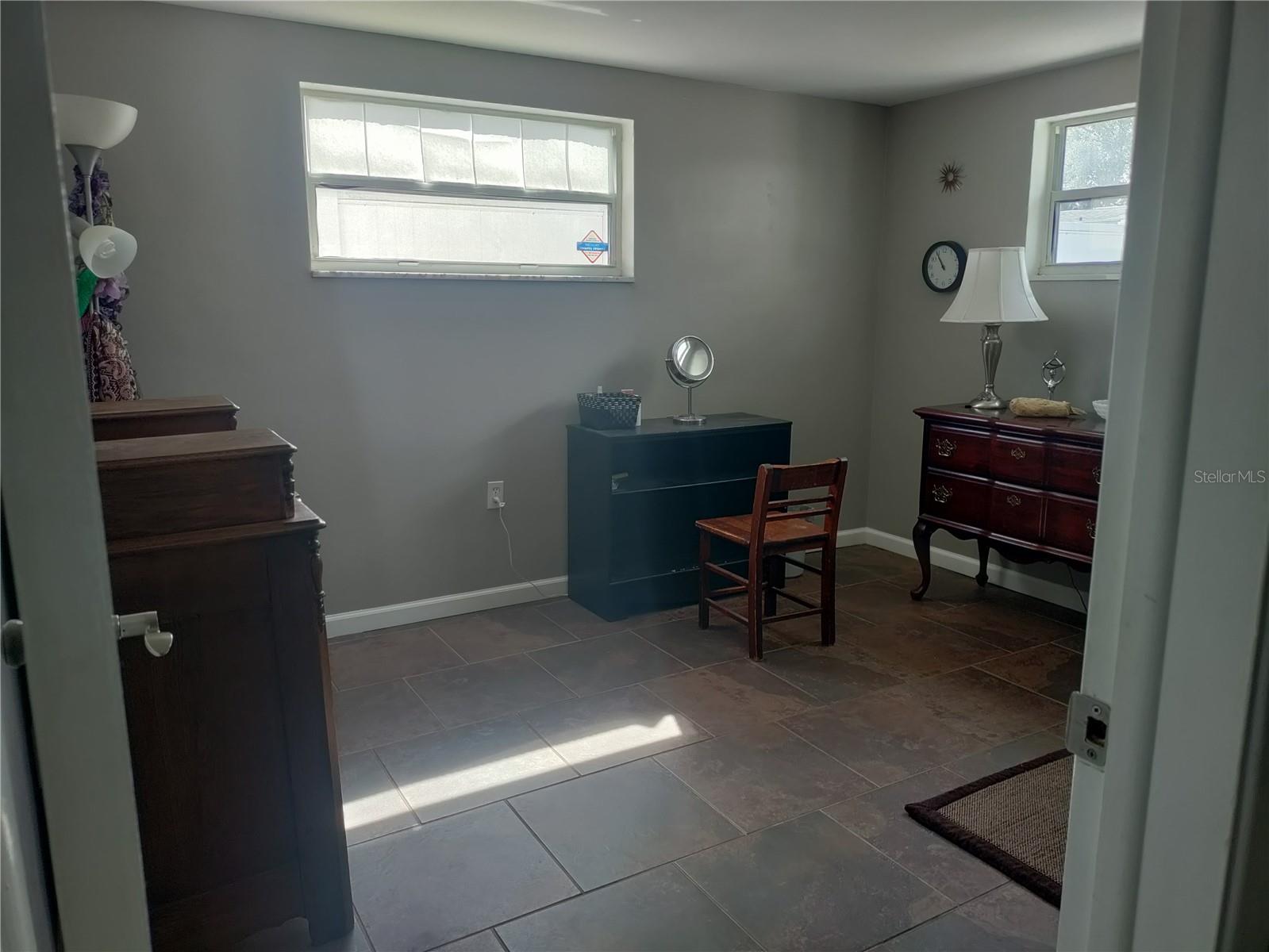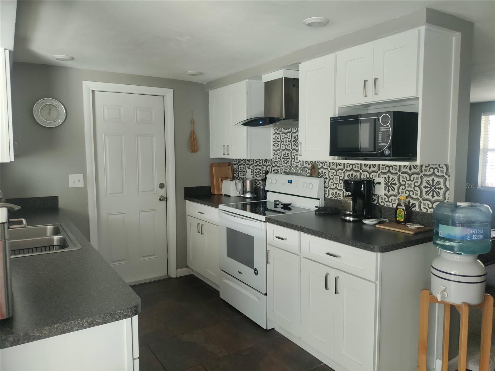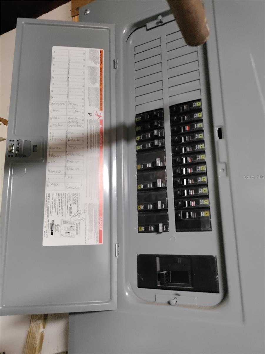 1,128 SF 2-bedroom 2 bath 1 car garage block home with an extra 12' x 12' heat/air BONUS room that can be used as a den, an office, gaming room, or 3rd bedroom. The Roof, HVAC, electrical panel, recessed lighting, kitchen cabinets and counters, appliances, and a sliding glass door that leads to a large patio have all been updated less than 5 years ago. White soft close shaker cabinets and large counter seating area. Matching ceramic tile throughout. Carpet in primary bedroom and vinyl wood plank in large dining room. Partially cedar lined closets in bedrooms. New screens in windows. Fully fenced backyard with MATURE landscaping in both the front and back yards for maximum privacy. Extra parking spaces in front of the house. Included with the home is a hard wired 5 camera surveillance system and recorder, kitchen appliances, (microwave, energy efficient refrigerator and electric stove) garage door opener with one remote, wooden curtain rods in the primary bedroom and 2” faux white wood blinds. All this within the GREAT LOCATION of the Colonial Hills neighborhood. No HOA or CDD dues and no flood insurance required.