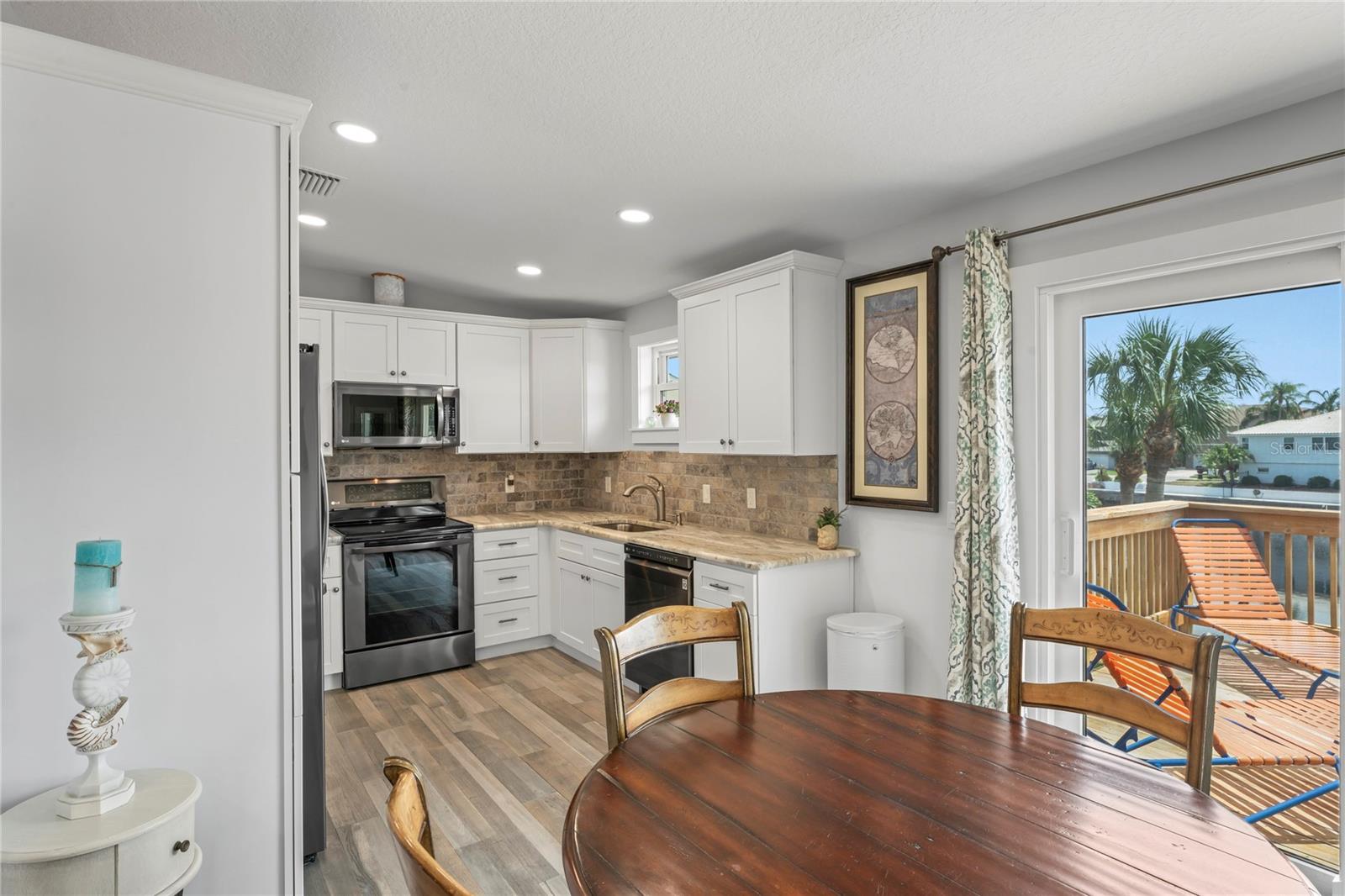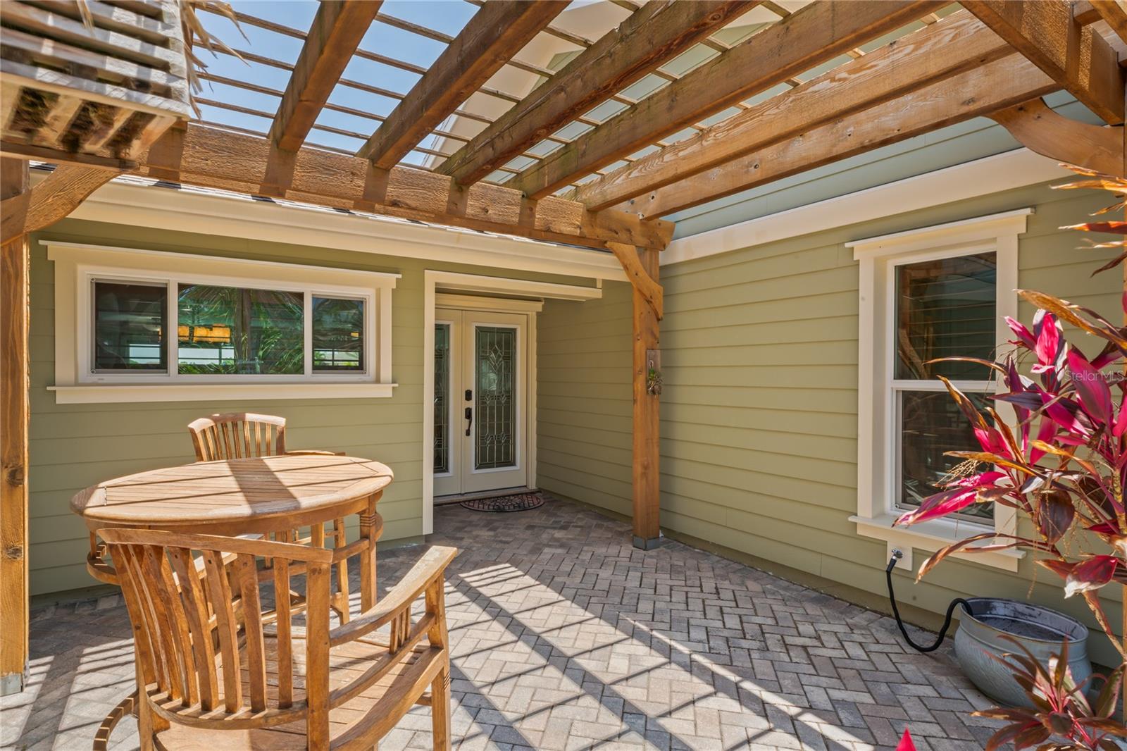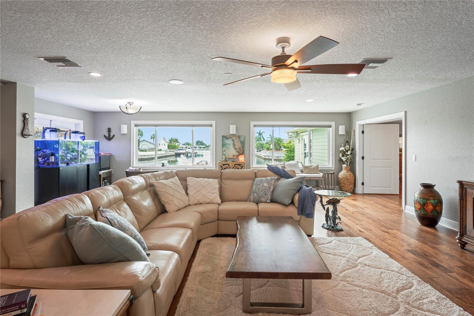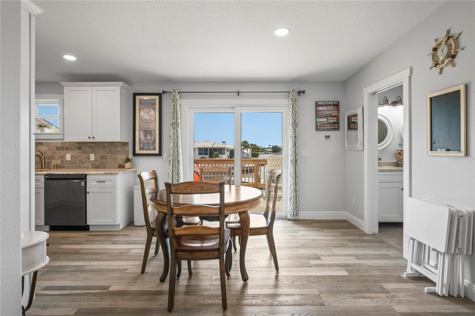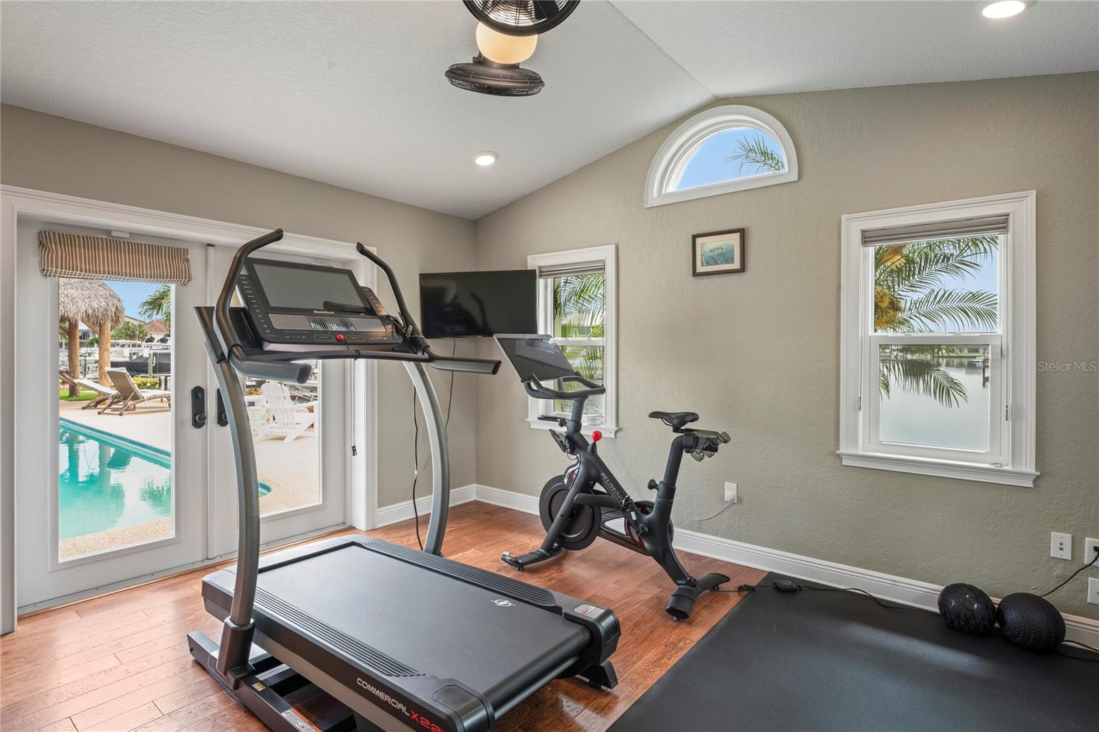 Your paradise awaits! And this lovely home stands proudly after two hurricanes and no damage or flooding..well built, well insulated!! This exceptional waterfront home, fully restored in 2017, offers the perfect blend of luxury and comfort. The Main house features 3 bedrooms, 2 full bathrooms, and one half-bath, all meticulously designed for style and convenience. A pergola with a seating area leads to the glass double-door entrance. Inside, the expansive great room greets you with breathtaking water views. The chef's kitchen stands out with its vaulted ceiling and beams, granite counters, wood cabinets, stainless steel appliances, pantry closet, and double ovens. French doors open to a lanai and outside oasis. The primary suite, accessed through French doors, includes an attached bonus room currently used as a gym. The spa-like en-suite bathroom features double sinks, granite counters, a stand-alone soaking tub, a glass-enclosed shower, a wet closet, an impressive walk-in closet, and a solar tube for natural lighting. The double waterfront lot is a paradise for outdoor enthusiasts. It includes a 16,000-pound boat lift and a 14x30 open-air saltwater pool. The Tiki Hut with power and outdoor lighting creates an ideal setting for evening gatherings. The property is eco-friendly, with a solar water heater and 20 owned solar panels providing energy-efficient hot water heating. Inside laundry/mud room. All closets designed by California Closets. Plantation shutters add a touch of elegance to the windows. The main house has a two-car attached garage. Above the expansive detached 45'x38' garage, built in 2017, is a charming carriage house. This additional living space includes a full kitchen with stainless steel appliances, 2 bedrooms, a bathroom with a tub/shower combo and double sinks, a bonus room, a storage room, and a balcony offering stunning water views. The garage itself accommodates RV parking and space for 4-6 cars, providing ample room for all your vehicles and storage needs. The property is partially fenced and beautifully landscaped, featuring an open covered lanai with a Roll-a-guard door for added convenience and security. This waterfront gem offers everything you need for luxurious living and more. Don’t miss this opportunity to own a slice of paradise designed with every detail in mind.