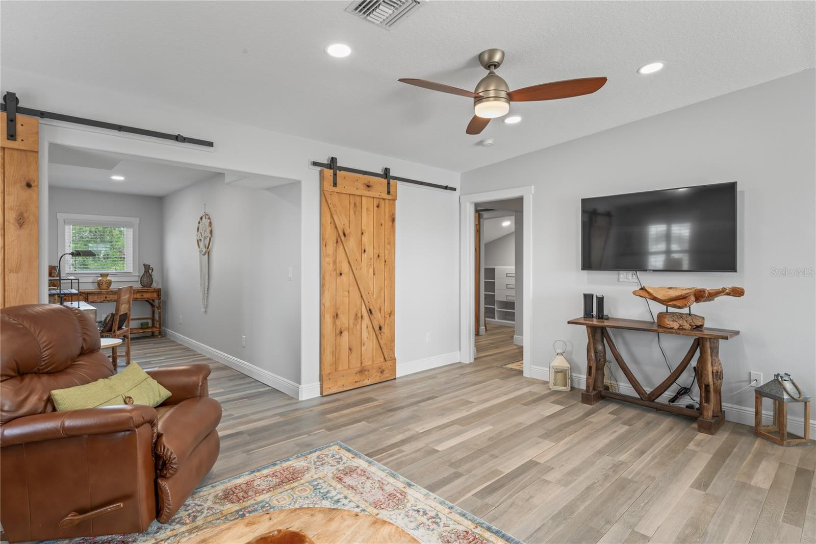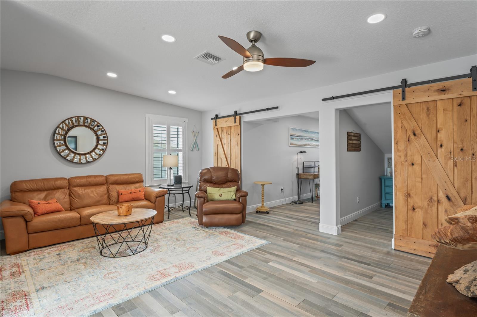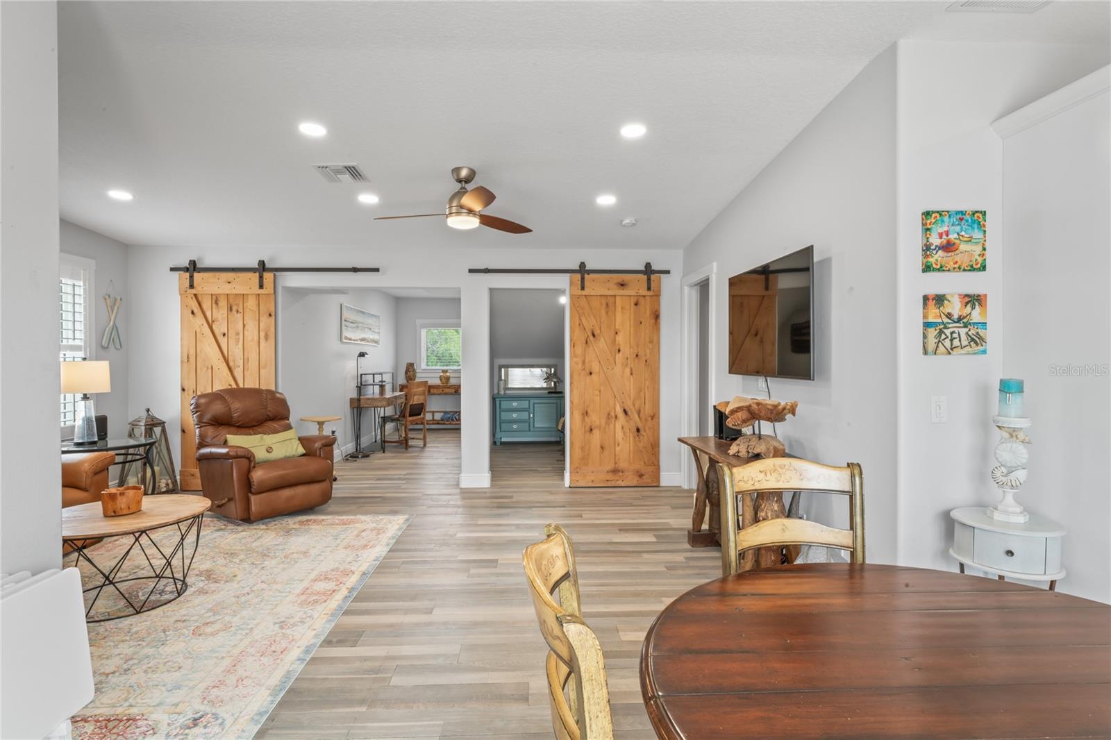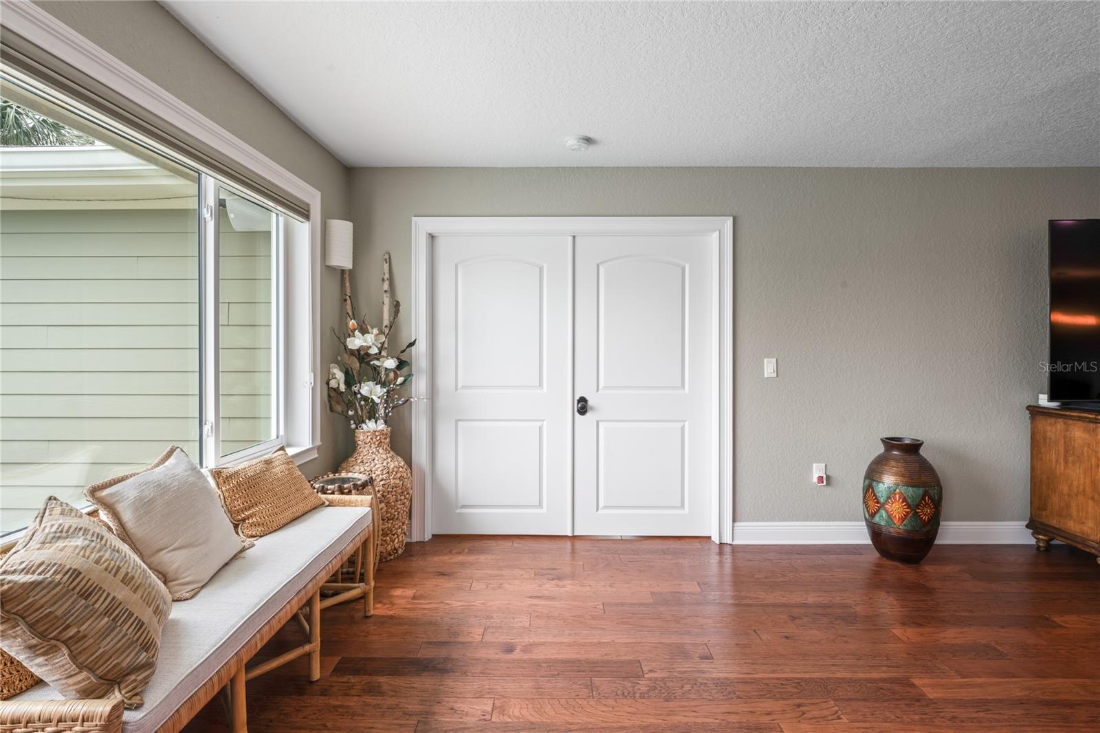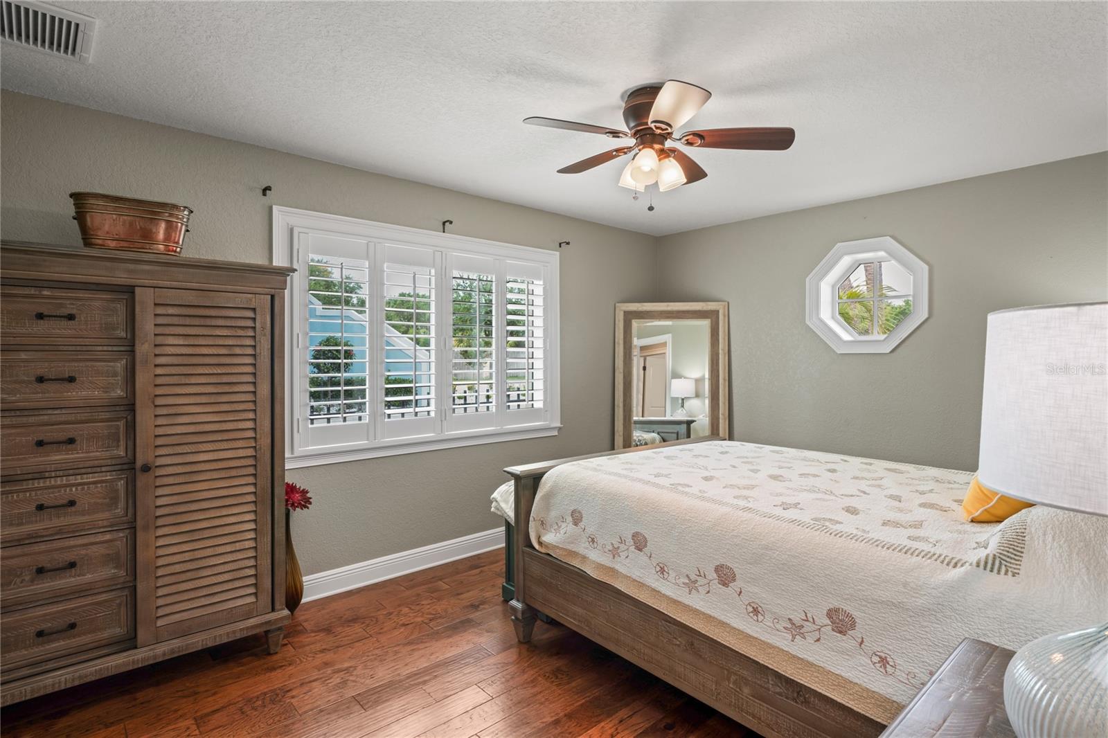 Your paradise awaits! And this lovely home stands proudly after two hurricanes and no damage or flooding..well built, well insulated!! This exceptional waterfront home, fully restored in 2017, offers the perfect blend of luxury and comfort. The Main house features 3 bedrooms, 2 full bathrooms, and one half-bath, all meticulously designed for style and convenience. A pergola with a seating area leads to the glass double-door entrance. Inside, the expansive great room greets you with breathtaking water views. The chef's kitchen stands out with its vaulted ceiling and beams, granite counters, wood cabinets, stainless steel appliances, pantry closet, and double ovens. French doors open to a lanai and outside oasis. The primary suite, accessed through French doors, includes an attached bonus room currently used as a gym. The spa-like en-suite bathroom features double sinks, granite counters, a stand-alone soaking tub, a glass-enclosed shower, a wet closet, an impressive walk-in closet, and a solar tube for natural lighting. The double waterfront lot is a paradise for outdoor enthusiasts. It includes a 16,000-pound boat lift and a 14x30 open-air saltwater pool. The Tiki Hut with power and outdoor lighting creates an ideal setting for evening gatherings. The property is eco-friendly, with a solar water heater and 20 owned solar panels providing energy-efficient hot water heating. Inside laundry/mud room. All closets designed by California Closets. Plantation shutters add a touch of elegance to the windows. The main house has a two-car attached garage. Above the expansive detached 45'x38' garage, built in 2017, is a charming carriage house. This additional living space includes a full kitchen with stainless steel appliances, 2 bedrooms, a bathroom with a tub/shower combo and double sinks, a bonus room, a storage room, and a balcony offering stunning water views. The garage itself accommodates RV parking and space for 4-6 cars, providing ample room for all your vehicles and storage needs. The property is partially fenced and beautifully landscaped, featuring an open covered lanai with a Roll-a-guard door for added convenience and security. This waterfront gem offers everything you need for luxurious living and more. Don’t miss this opportunity to own a slice of paradise designed with every detail in mind.