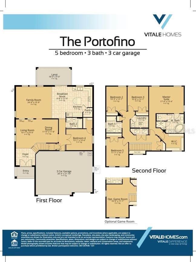 Under Construction. Under Construction: Situated in our Rose Haven phase 2 gated community, welcome to your new home! Presenting the stunning Portofino model, boasting 2 stories, 5 bedrooms, 3 bathrooms, and a spacious family room/living room with covered lanai. Spanning 2,732 square feet, this meticulously crafted residence offers the epitome of comfort and style. The expansive family room/living room welcomes you to its abundant natural light, creating an inviting ambiance for relaxation and entertainment. A separate dining room provides the perfect setting for intimate gatherings or festive dinners. Indulge in culinary delights within the heart of the home adorned with 42" white cabinets with molding, offering ample storage space for all your culinary essentials. Adorned with luxury vinyl planking in the main family room/living room areas elude sophistication and durability, while plush carpeting in the bedrooms ensures comfort underfoot. Tiled wet areas add a touch of refinement to every corner of this exquisite abode. Enjoy the convenience of modern living with a smart home security system, ensuring peace of mind and security for you and your family. Benefit from the upgraded R38 insulation and Rll Foam injected insulation into the block wall, enhancing the energy efficiency and maintaining a comfortable indoor climate year-round. This home comes complete with a 2-10 warranty, offering assurance and protection for your investment. Don't miss this opportunity to make this exceptional residence your own. Schedule a showing today and experience the epitome of luxury living in the heart of Rose Haven.