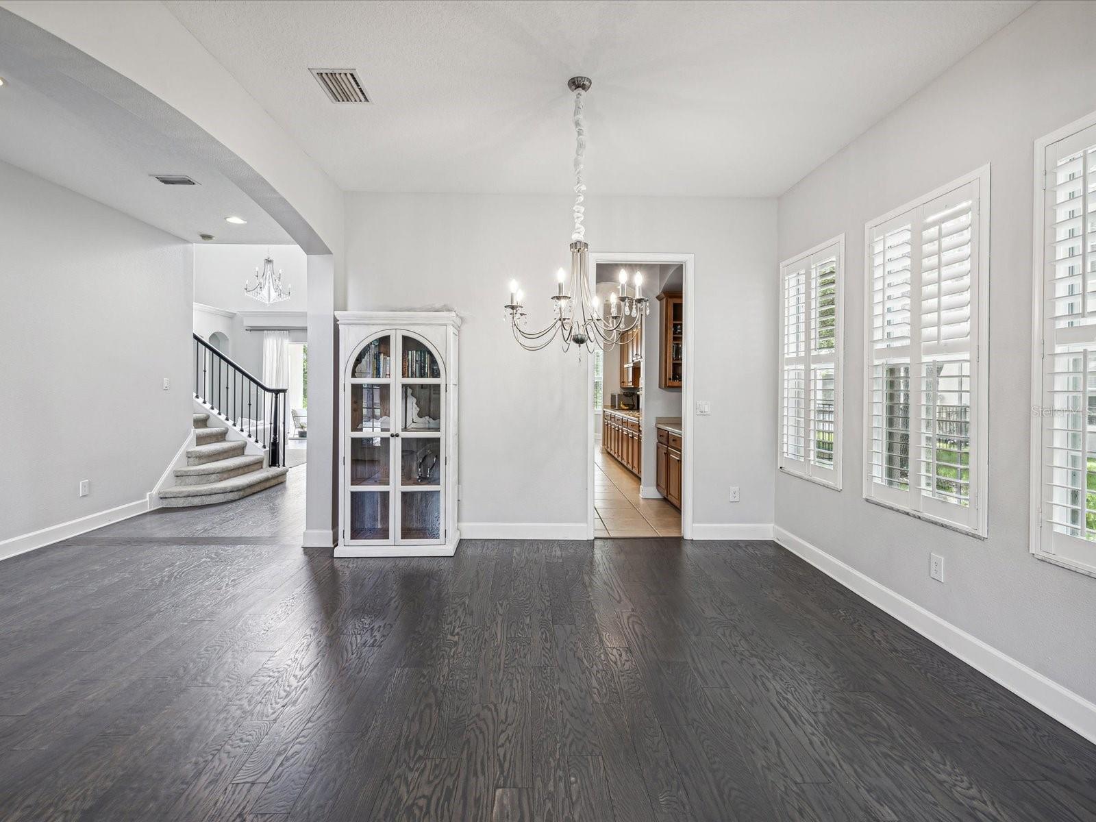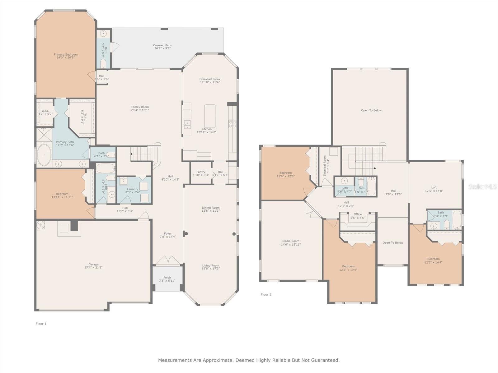 This HUGE 5 bed 4 and a half bath home is full of great features! Wait until you see the custom hard wood floors! The primary suite is on the first floor and includes his and hers walk in closets. The primary bath includes a garden tub, a walk in shower a large counter top with dual sinks and a linen closet. The first floor has two and a half bath rooms. The spacious laundry room is also located on the first floor. The large kitchen sits adjacent to the family room and also includes a breakfast nook. The staircase features beautiful custom banisters. On the second floor you will find 3 more HUGE bed rooms, 2 full bath rooms, a spectacular media room, a built in office area and a loft area. The back yard is fenced in. Come see this home that is located in the gated Waters Edge community that includes many great amenities and a beautiful lake. Brand new water heater.