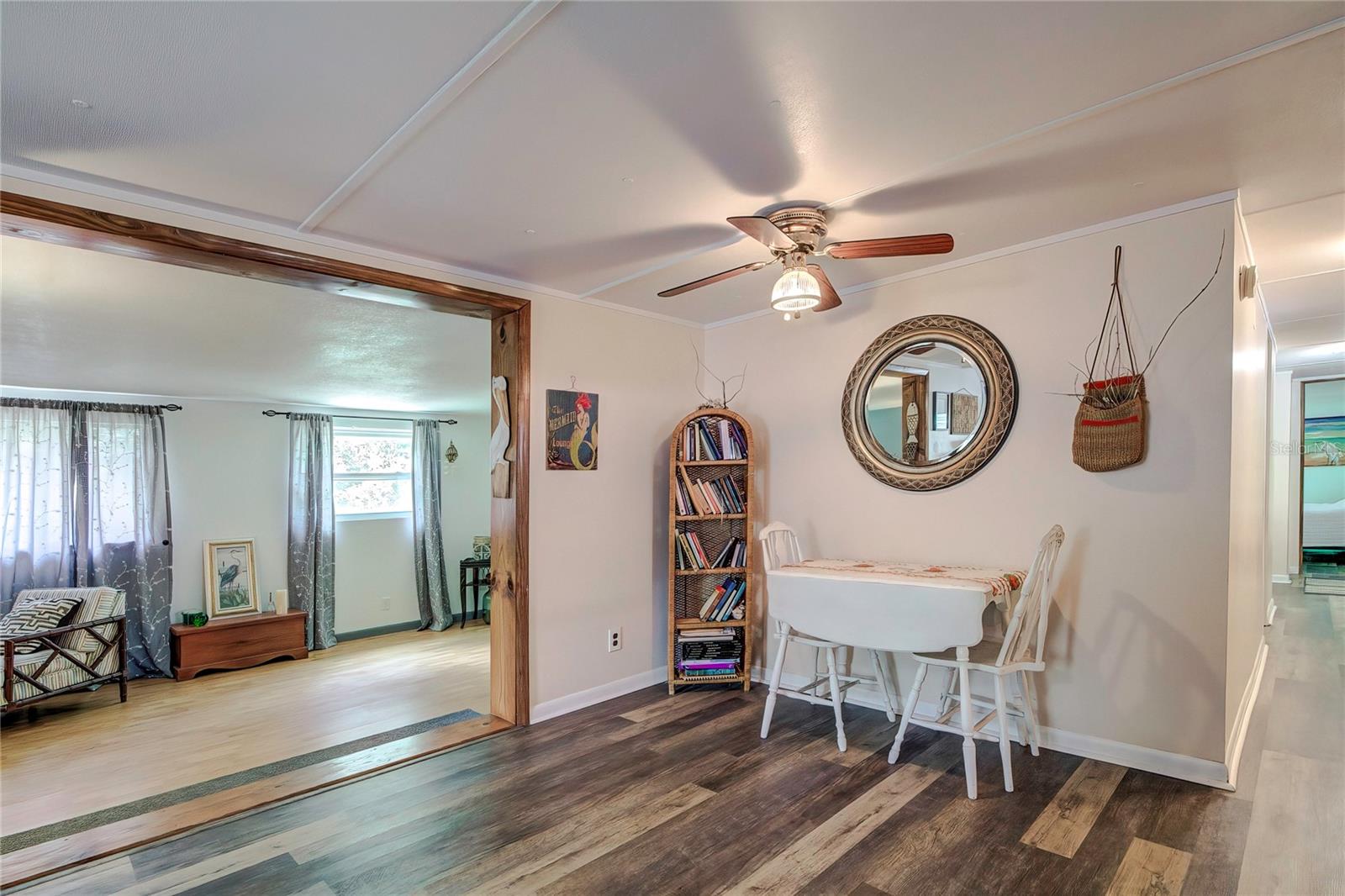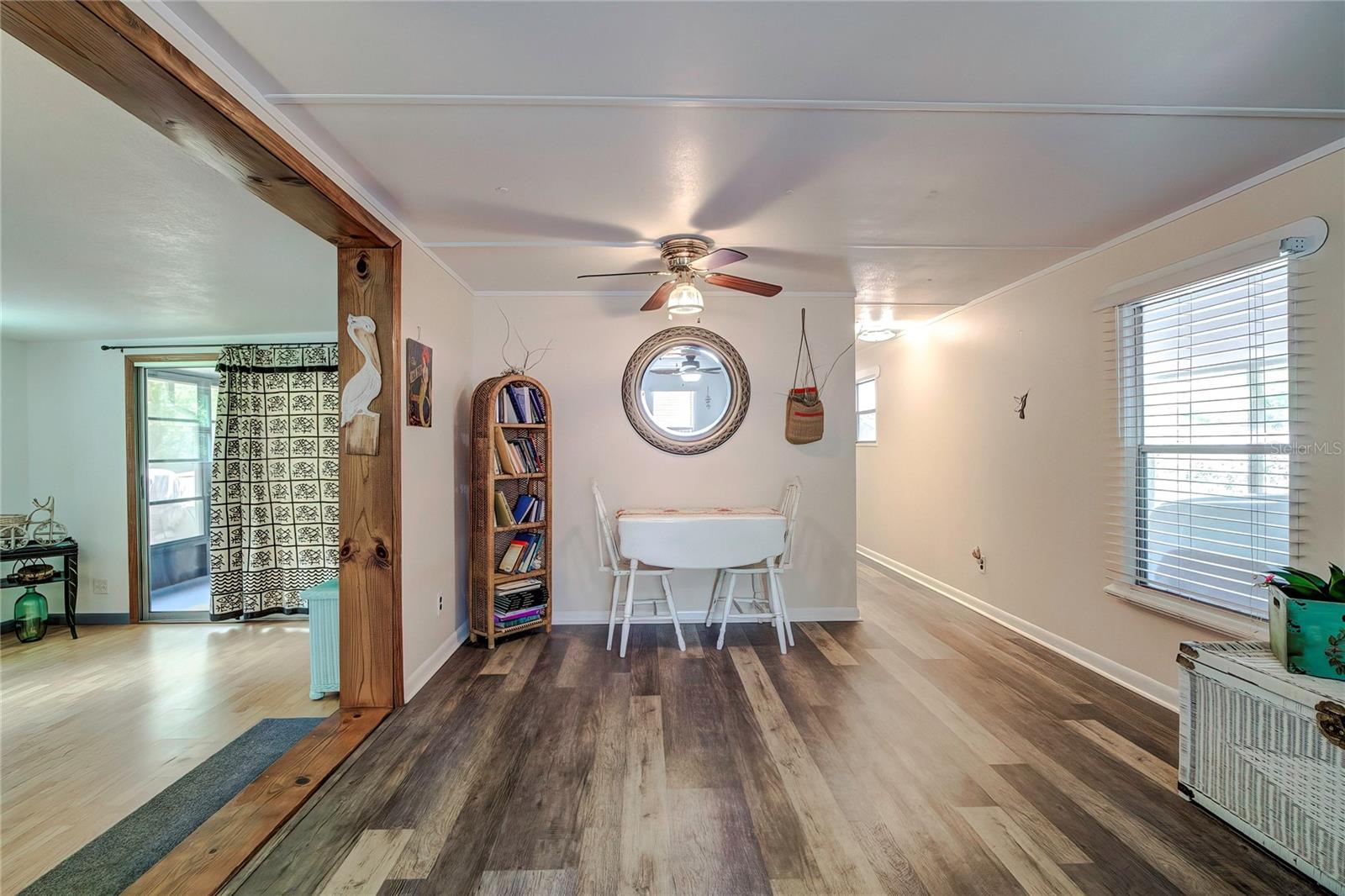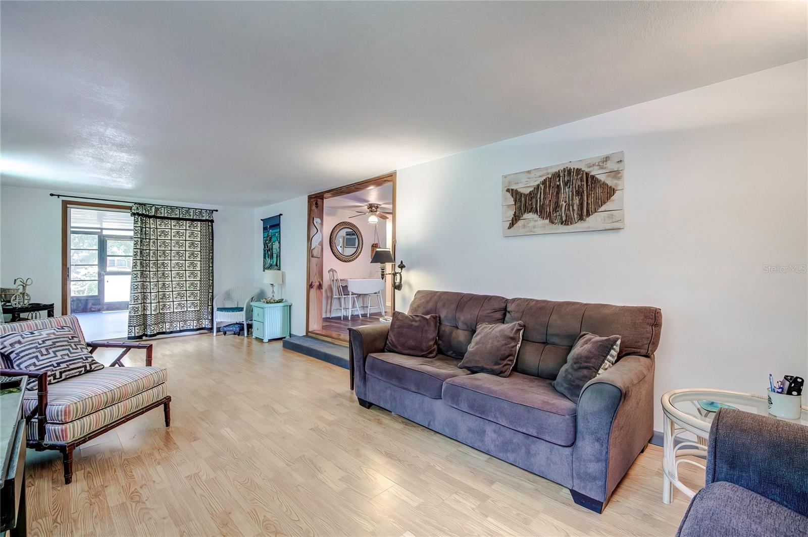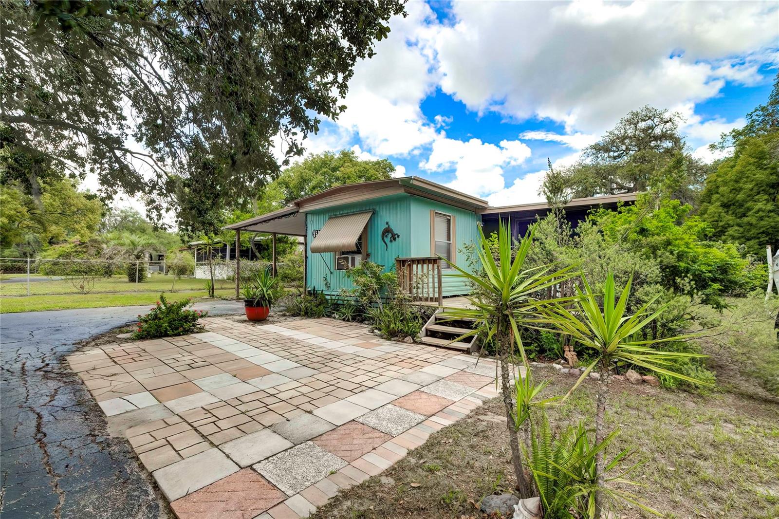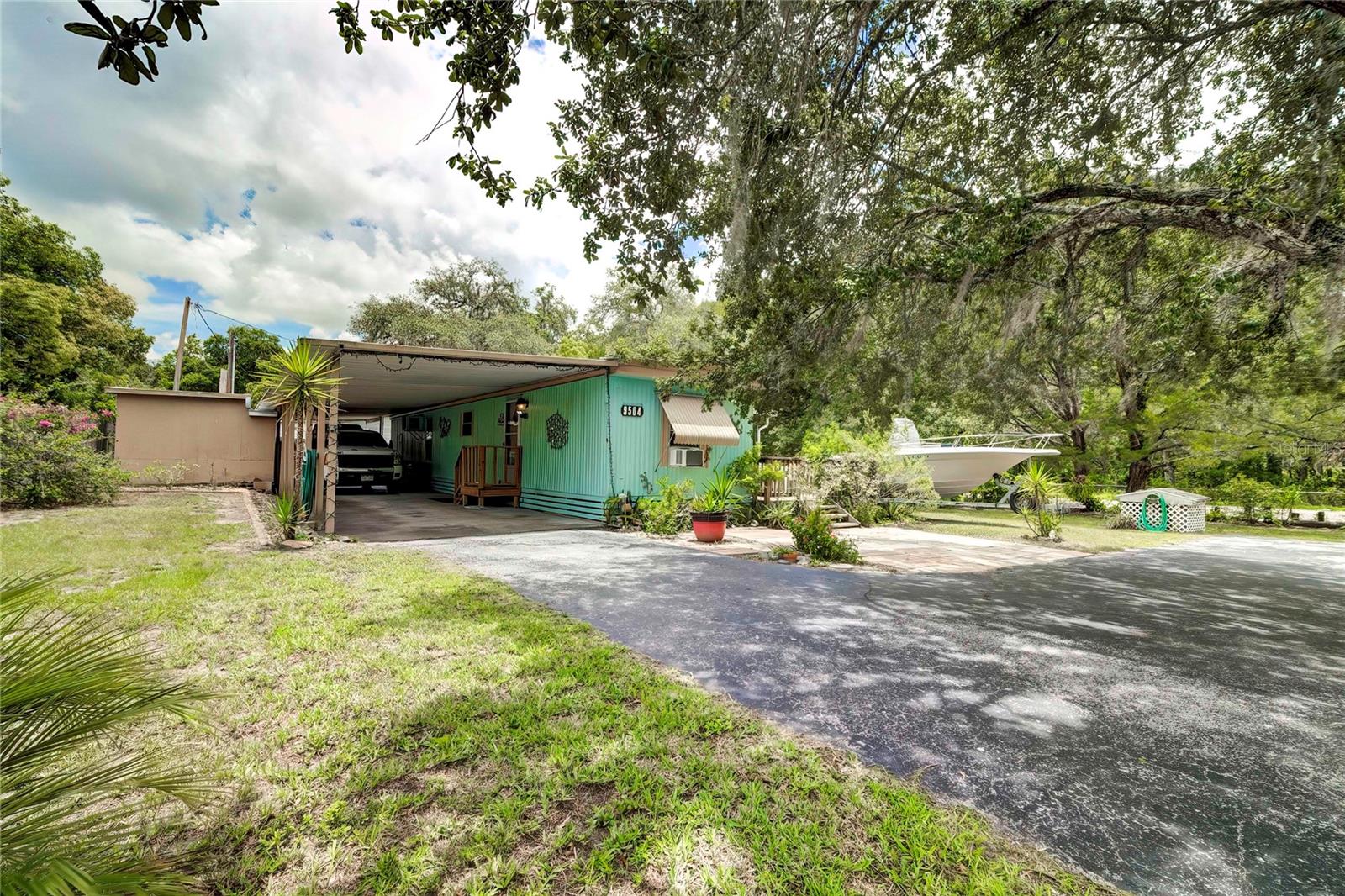 Looking for a home in a peaceful setting? Look no further! This delightful double-wide mobile home offers the perfect blend of comfort and convenience. Nestled in the desirable Moon Lake area, this beautiful corner property boasts mature landscaping and a serene ambiance. This spacious 2 bedroom 1 bath home provides ample living space. Charming addition adds extra living area for relaxation or entertaining. Enclosed Florida room allows you to enjoy the outdoors year-round. Large deck perfect for sipping your morning coffee while enjoying the beautiful surroundings. 2 Carport spots and a circle drive provide plenty of parking for your vehicles, boat or toys. Totally enclosed with a chain link fence and 2 gates ensures privacy and security. 2 sheds located outside under the carport provides extra storage space. The laundry room is in a shed for added convenience. This home is ideal for permanent residents seeking a peaceful and affordable lifestyle or snowbirds looking for a cozy winter getaway. Don't miss this opportunity to make this your dream home! Contact us today for a showing.