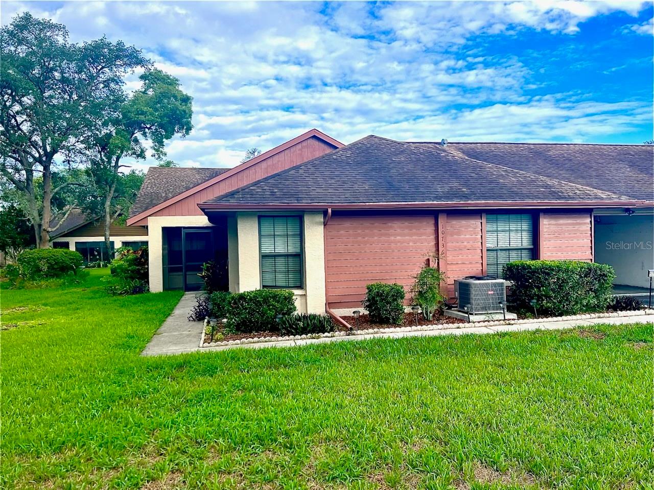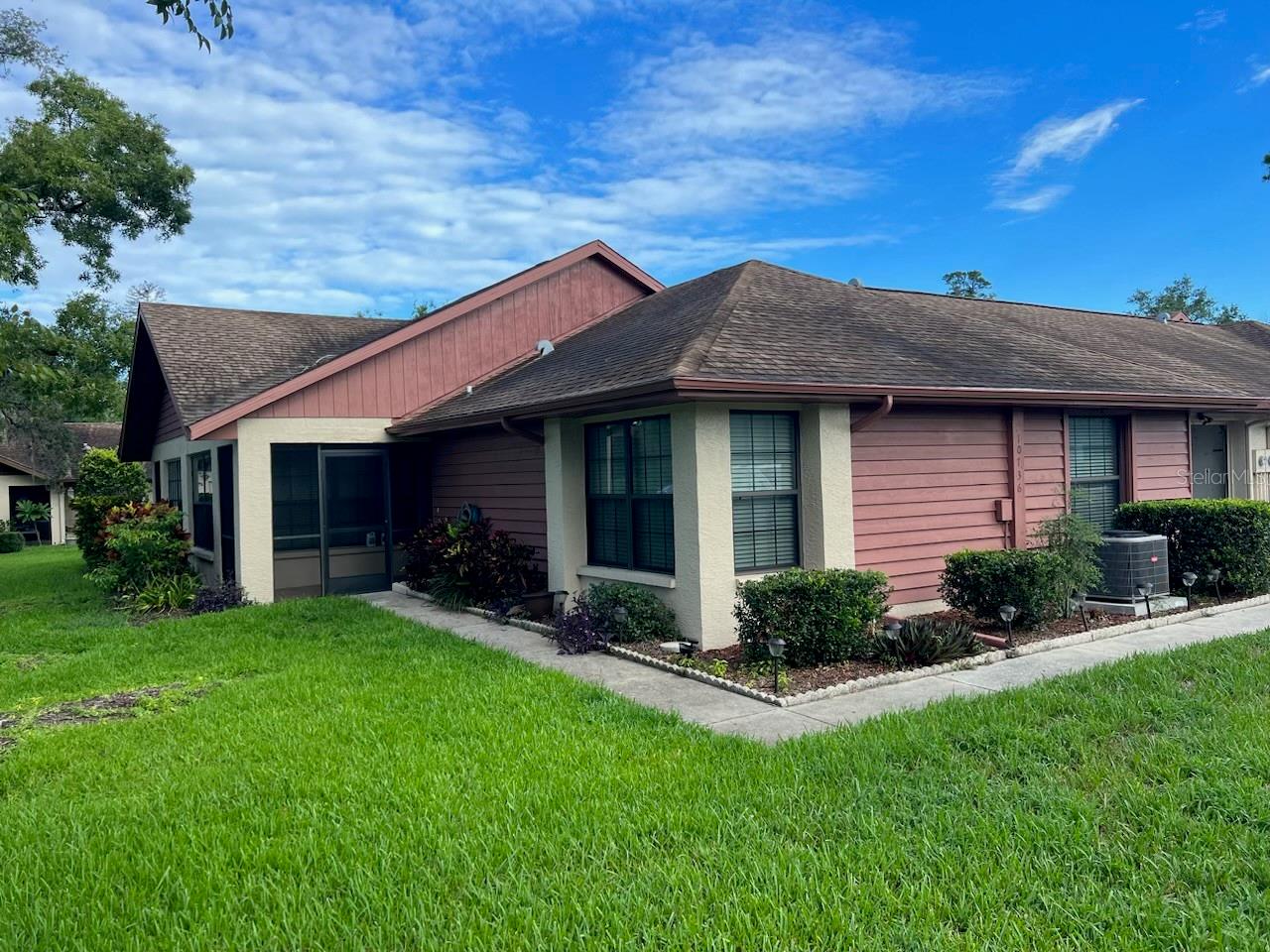 Welcome Home! This charming 2 BR, 2 BA, 1 car garage is move-in ready! This charming Villa is located in Tall Pines in sought-after New Port Richey. Beautiful atrium off the back is perfect for your plants & to relax. Kitchen has wood cabinets & all appliances are included. Home has porcelain title throughout with wood in both bedrooms. Master bedroom has private bath & sizeable closet. Garage has extra storage & a fan. LOW HOA fee! Home is not located in a flood zone so no flood insurance required! New A/C - 2019 & new garage door - 2024. Enjoy the clubhouse and library. Take a walk to the gazebo & enjoy the waterfall from the bench in the shade. Coming soon to the River Ridge community - a prominent chain bowling alley w/restaurant & revamped 9-hole golf course! Close to excellent schools, TIA, shopping, hospitals, restaurants & the beaches. Enjoy all that New Port Richey & Tampa Bay have to offer!