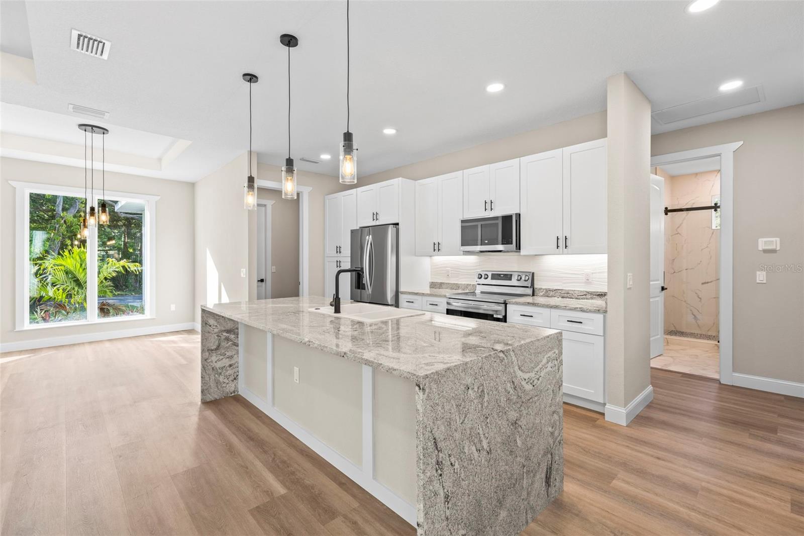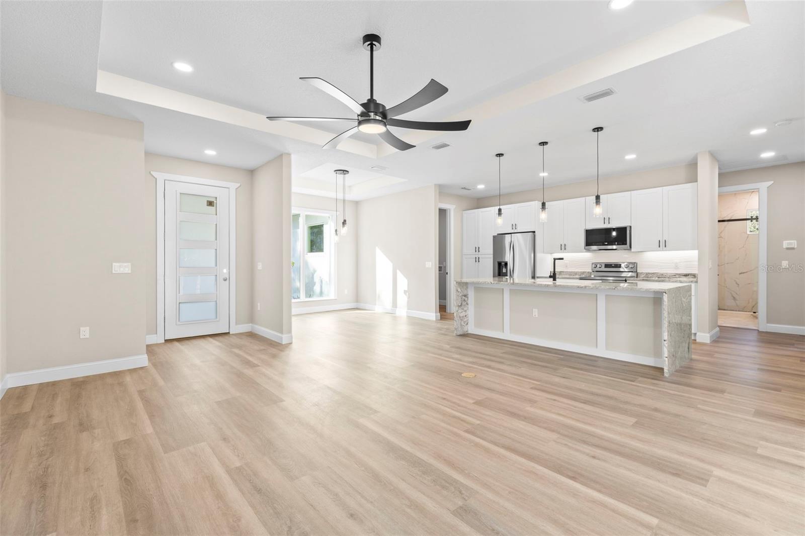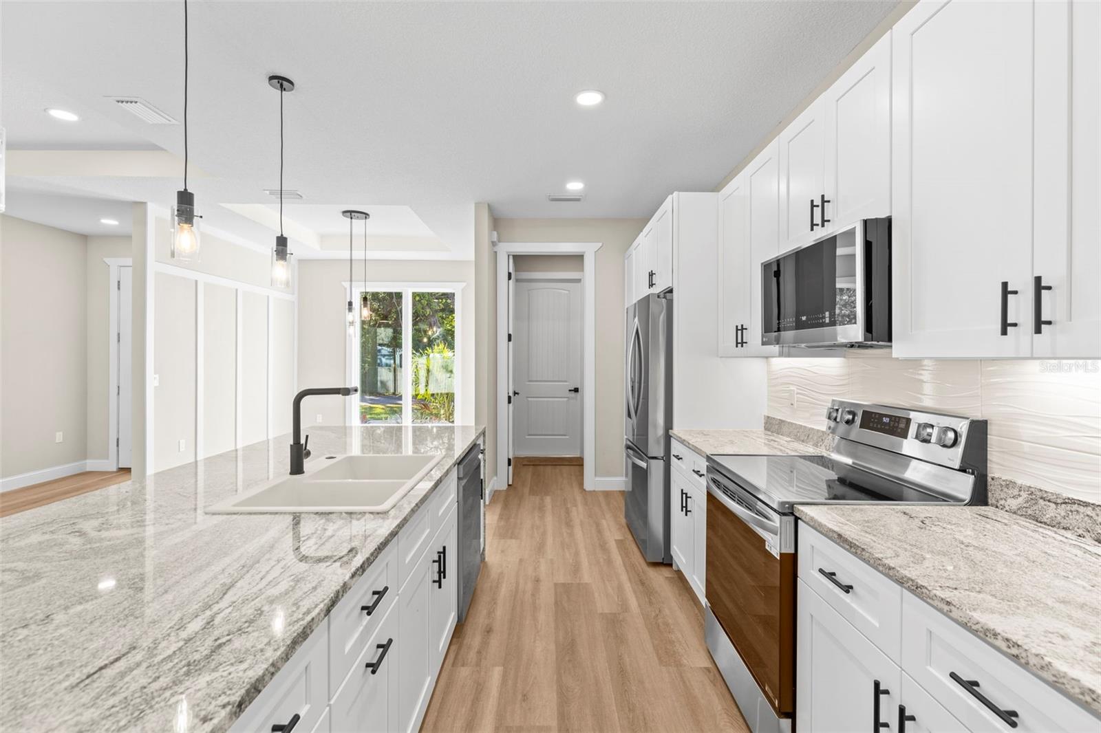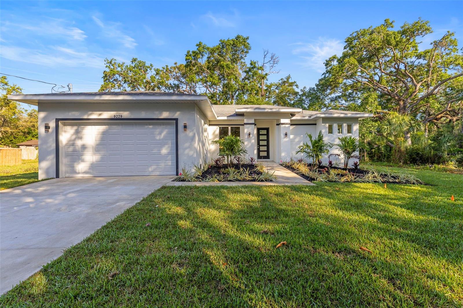 Attention buyers, this brand new home was built above the flood plain! Completed in April 2025, this brand new, custom built gem is nestled in the sought-after Bass Lake Estates neighborhood and priced under appraised value. Just minutes from the Suncoast Parkway, this property offers an early opportunity in a developing region to have a double lot large enough to keep an RV or boat on-site without the limitations of an HOA/CDD. The home is designed for comfort, style and elegance, featuring 3 bedrooms, 2 bathrooms and an oversized 2-car garage. It boasts and expansive oversized lanai, perfect for outdoor living. Soaring high ceilings, 8 foot doors and an open, airy floor plan with a bright and cheerful color palette creates a welcoming atmosphere. The gourmet kitchen is a highlight with beautiful granite countertops, including a waterfall island, sleek white cabinetry with under-lighting and stainless steel appliances. Included in all bedrooms are outlets that have dual USB and power functions. The master bedroom features luxurious 10’4” ceilings and unique barn door style closures for the bathroom and walk-in closet. The spa-inspired master bathroom is a true retreat with a modern glass shower enclosure and a separate freestanding tub. Located in a desirable, peaceful neighborhood, this one-of-a-kind home has been designed with an eye for detail and style - offering the perfect space for hosting friends on the lanai or relaxing in your spacious light-filled living areas. Don’t miss your chance - this stunning property won’t last long. Call today to schedule your private showing!