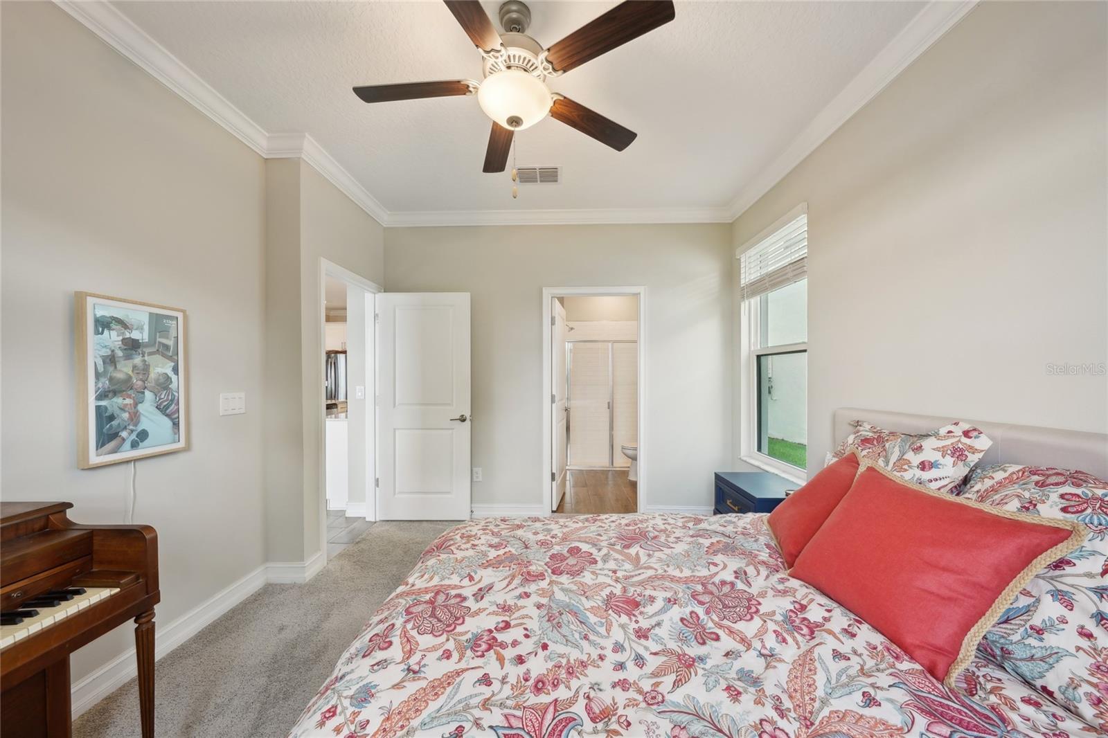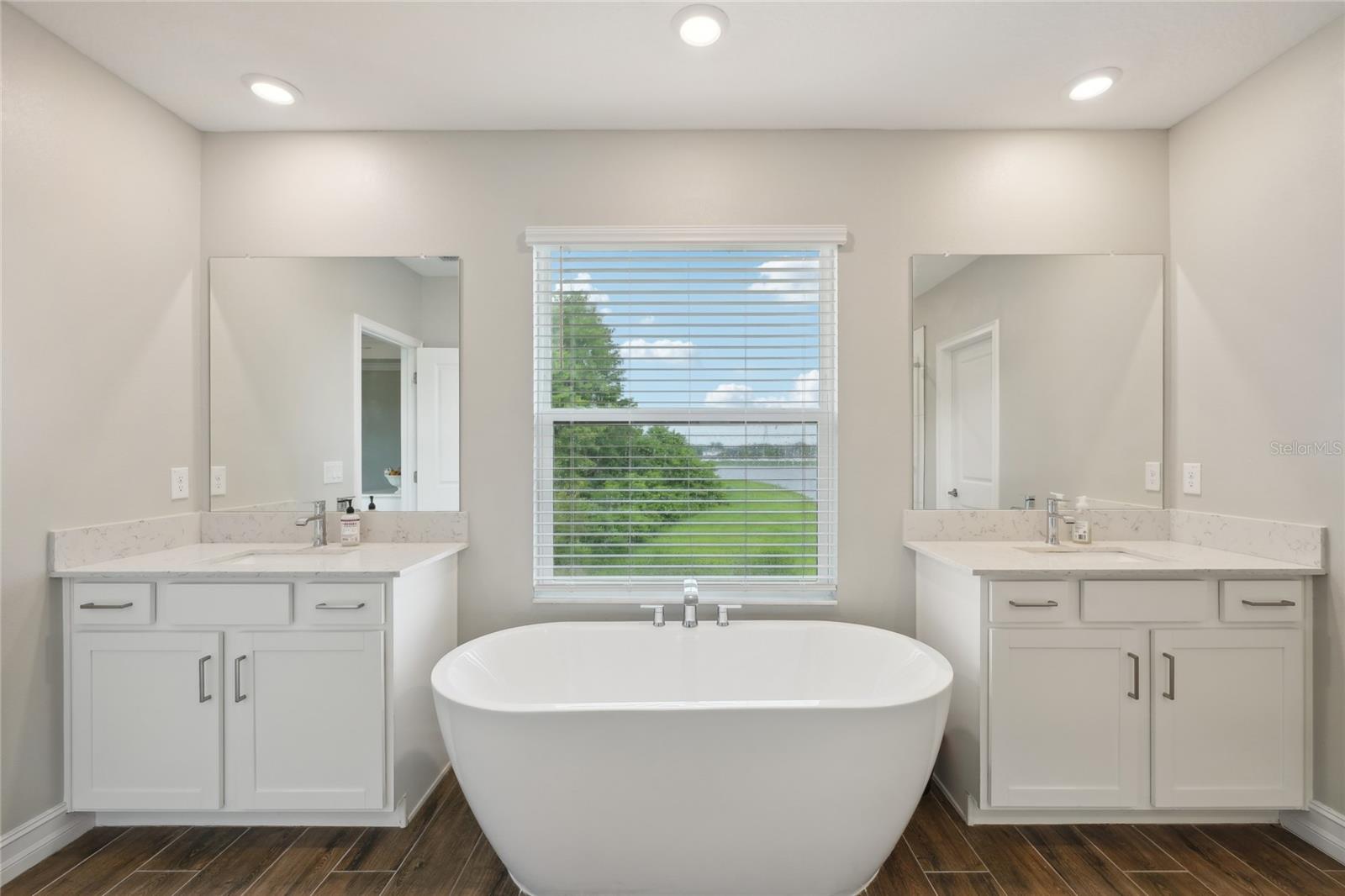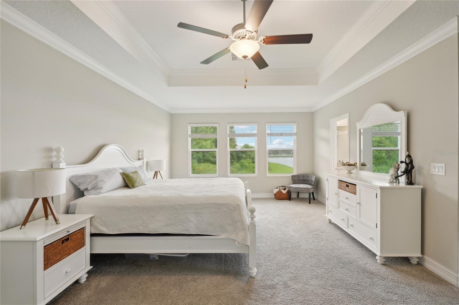This stunning property offers a unique opportunity for buyers! The seller is willing to provide a rate buy-down, making excellent interest rates available. Take advantage of this fantastic incentive to secure your dream home with more affordable monthly payments. Don't miss out on this incredible deal!!! In the heart of Trinity, built in 2022, situated on a PREMIUM CONSERVATION WATERVIEW LOT in Bryant Square Estates. Come Enjoy Privacy and Nature in your own backyard, deer, owl, and otter all call this home! The community offers an array of amenities, from a playground, pocket park & trails to 2 resort-style swimming pools & cabana. Every corner of this 5 BEDROOM + LOFT, 4.5 BATHROOM home is designed with thoughtful consideration. Step inside to discover an interior adorned with exquisite details. The foyer welcomes you with high ceilings that allow natural light to cascade throughout. Crown molding in Foyer, Living Room, Dining Room, Kitchen & Primary Bedroom. Wood-plank tile graces the first floor, with the exception of the 5th bedroom En Suite located on the 1st floor, which has plush carpeting, a large walk-in closet & private bathroom. The kitchen is a culinary haven, featuring quartz countertops, massive island with breakfast bar seating, 42" staggered cabinets with matte-finished pulls, NEW SAMSUNG FRIDGE, SS Appliances, & LED lighting illuminates the space, creating a warm and inviting atmosphere. The upstairs LOFT is a perfect retreat, offers a wet bar and mini-fridge, making it an ideal space for relaxation & entertainment. The Primary Bedroom En Suite has a SPA LIKE bathroom designed with a frameless glass shower, 2 separate vanities with quartz countertops, a deep tub where you can soak away your stress while taking in views of the pond, & a MASSIVE CUSTOM CLOSET for all of your fashionista needs! There are 3 more bedrooms upstairs; one of which has its own Private Bathroom...perfect for guests! No need to lug your laundry up & down the stairs because the large laundry room is located on the 2nd Floor for convenience. The SCREENED IN LANAI is designed with UPGRADED minimal-obstruction-panels which allow you to enjoy a clear view of the beautiful pond & nature that surrounds you. The backyard is tremendous, making it the perfect size to accommodate a private pool if you wish. Efficiency meets luxury with a TANKLESS GAS WATER HEATER. SMART HOME features accessible via app/voice control, and the "Ring" Doorbell. Enjoy the convenience of living in close proximity to many shops, restaurants, parks & trails nearby. Walkable distance to the YMCA of Trinity, Seven Springs Middle School & JW Mitchell High School. LOW HOA!