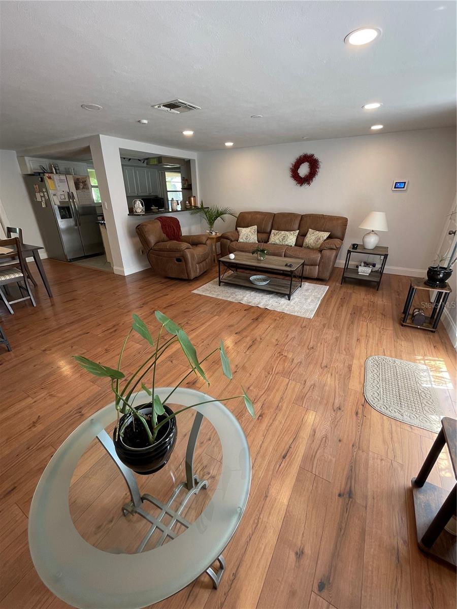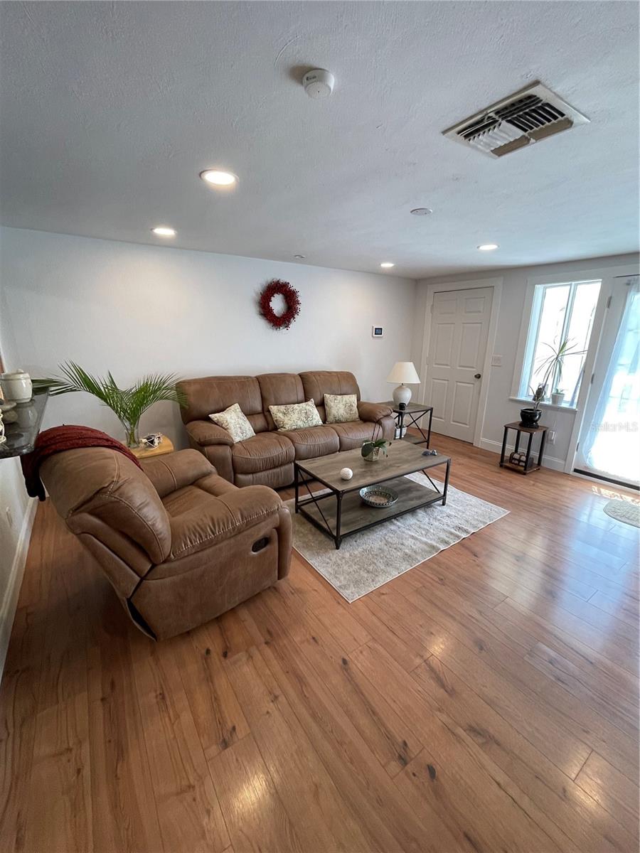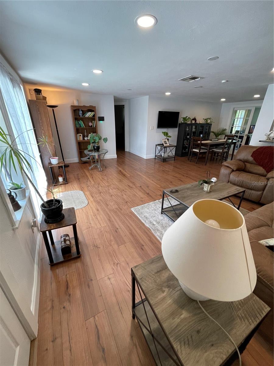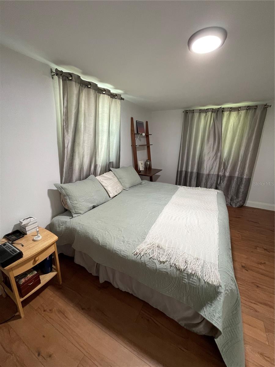 This beautiful home made through Hurricane Helene and Milton high and dry, no damage. It is a fully remodeled lake home in an established community. It features new high end waterproof wood flooring and tile throughout. The new modern kitchen has new cabinets and amazing granite countertops with stainless steel appliances. Two new full size bathrooms, one has a bathtub and the other one has a new shower. The oversized covered back porch has plenty of room for barbecue dining table and chairs for your family and guests. The huge back yard has a self standing building that can be used for storage workshop and surrounded with beautiful mature trees that provide lots of shade and a spectacular view at the lake when it is properly maintained. The home has one of the best water softening system available in the country and it's fully paid for. All furniture are new and negotiable. The top notch new Solar System will be paid off at closing. No HOA fees, No CDD, just the best of everything. New Roof in September, 2021. New A/C in 2019/2020. Possible 3 or 4 Bedroom with 2 full Baths. Move-in ready.