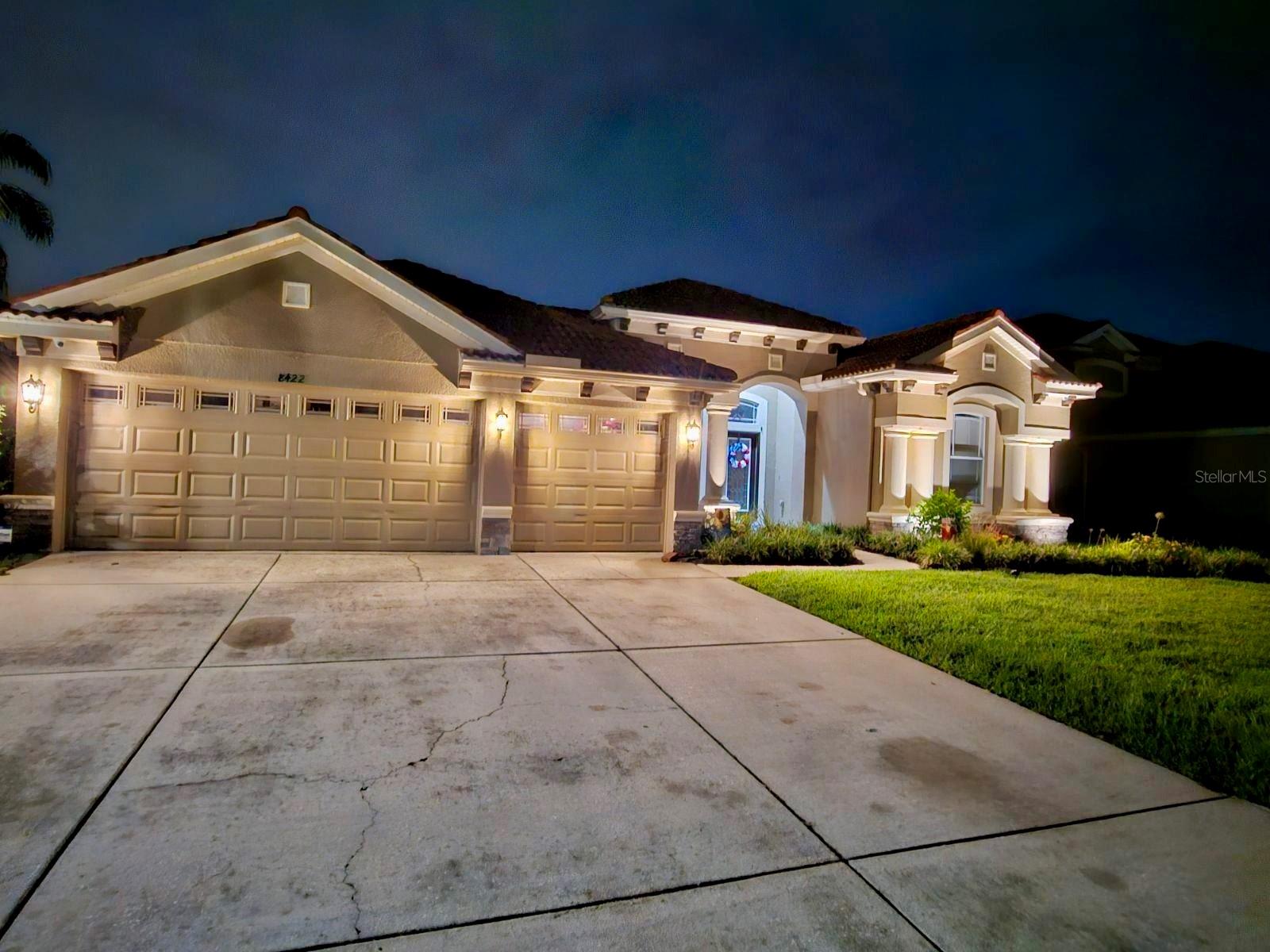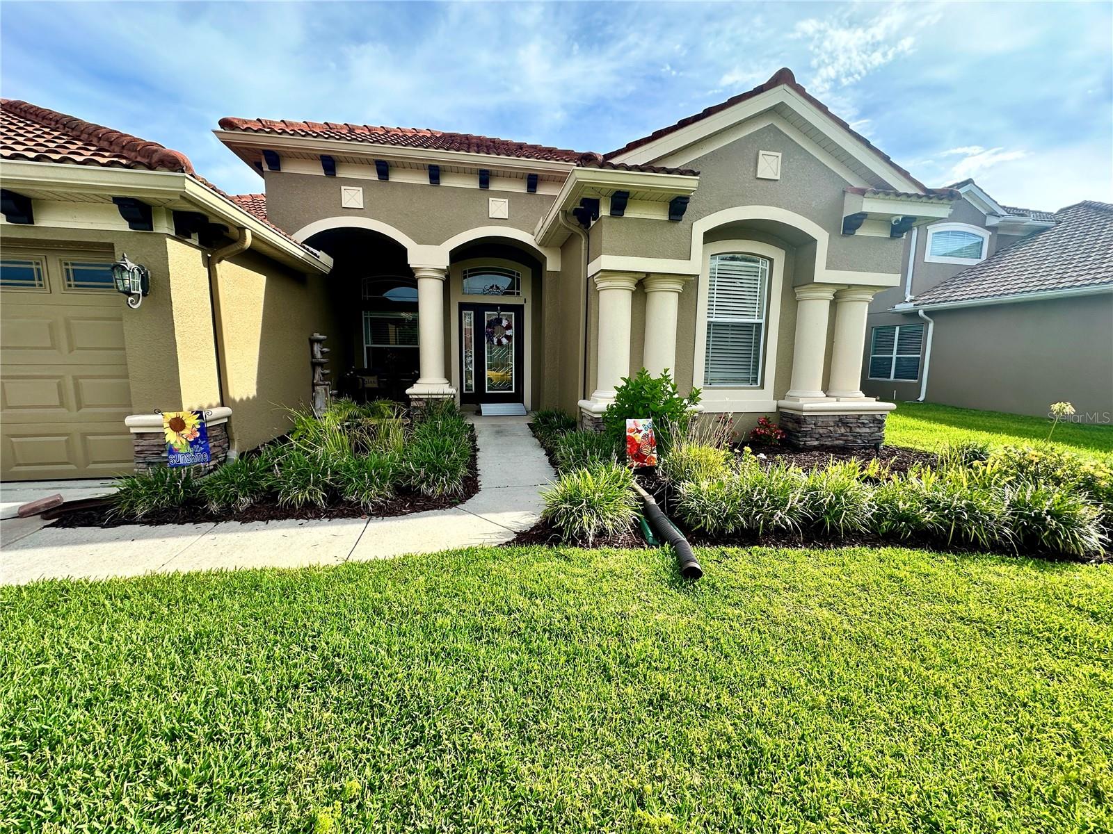 "Durable and Dependable: This property came through Helena and Milton untouched—no wind or flooding concerns! Your next home is here!"Ready to move in to. This tile roofed home with 4 bedrooms, 3 baths and a 3 car garage on a premium lot with no rear neighbors is a place of paradise. Discover the perfect blend of comfort and convenience at Waters Edge, a lively community with amenities for everyone. Enjoy lake views via the community dock, and take advantage of the clubhouse featuring a pool with water play area, basketball courts, and a playground—ideal for soaking up the beautiful Florida weather. You will find the clubhouse has a gym, game room, and media room which a perfect place to spend the day! Located just a short drive from Suncoast Parkway and I-75, this community has easy commuting to the airport or work. Welcome to Your Dream Home This stunning, move-in-ready, 4-bedroom, 3-bathroom home boasts mature landscaping and a spacious three-car garage. As you step inside, you'll be greeted by updated flooring and an abundance of natural light. The formal living and dining rooms at the front of the home lead you to the heart of the house: the kitchen. The kitchen is a chef's delight, featuring ample cabinet and counter space, stainless steel appliances, a breakfast bar, an island, and a pantry. It seamlessly opens to the family room, creating a perfect space for cooking and entertaining. The master bedroom is a serene retreat, giving ample space for a reading nook. The ensuite bathroom includes a walk-in closet, separate vanities, a shower stall, and a luxurious tub—ideal for relaxing with your favorite book. Additionally, the home features a versatile custom room that can be used as a makeup area, office, or hobby room. The fully paved back patio is perfect for grilling and enjoying the Florida weather, providing an inviting space to unwind at the end of the day. Don't miss the opportunity to make this beautiful home yours. Schedule a visit today!