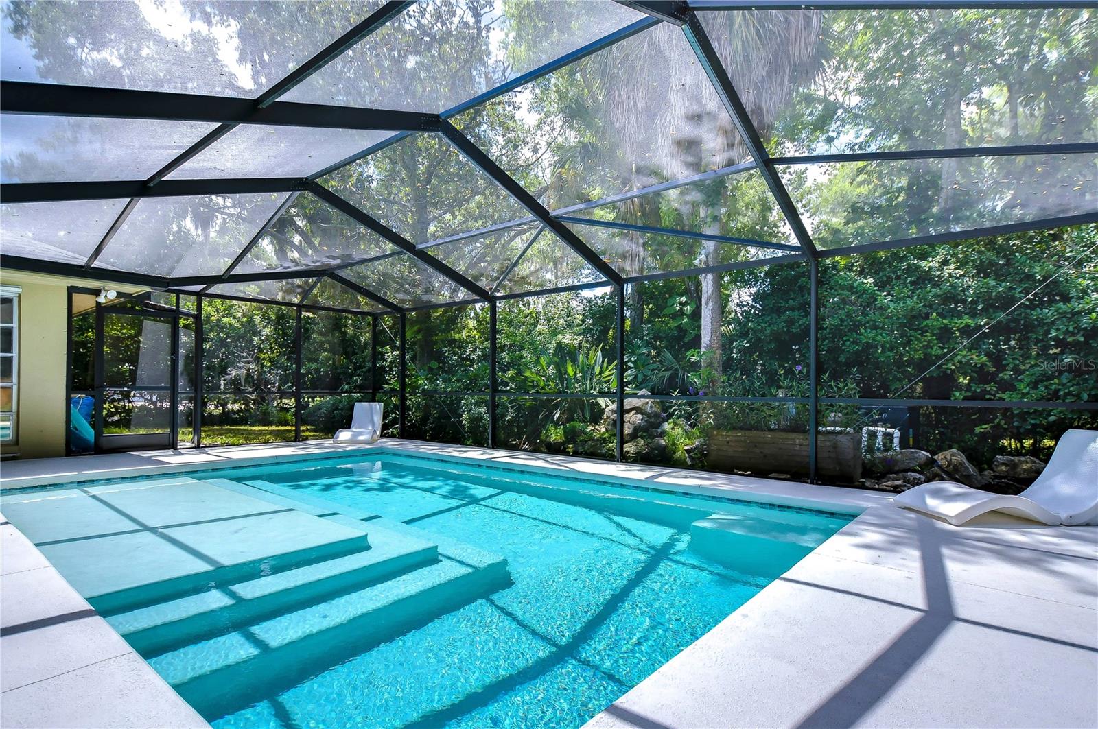***NO FLOOD INSURANCE REQUIRED!!!!*** ***Own a Piece of New Port Richey History!*** Nestled under the trees on a beautiful corner lot, 5522 Carlton Road was the first home built in Jasmine Point Estates in 1970. The original owner lived here until 2020, and the home's rich history includes a blessing by Rev. Ralph W Acree at a special event in 1970. Notably, former Apollo 15 Astronaut James B. Irwin was a frequent overnight guest! As you enter this amazing home, designed by an architect closely associated with the Terre Verde Development, you'll notice outstanding details. In the living room, just to the right of the entrance foyer, you're drawn to a beautiful built-in bookcase designed and built by a custom organ cabinet craftsman in Tampa. From the large living room, move into the dining room. Take a left through the swinging door, and you'll find yourself in the updated kitchen and breakfast nook overlooking the pool. Just off the kitchen is the spacious family room featuring a wood-burning fireplace with hand-selected Red River Ripple Stone from Texas. The home features 4 bedrooms, 3 of which have en-suite bathrooms. One bedroom is currently used as an office. On the far right side of the home, just off the kitchen, is an oversized laundry room with ample cabinets and a sink, a nice-sized mudroom, and a 4th bathroom. The oversized 2-car side-entry garage, located off the laundry room, includes a workshop. The current owners have added a large screened and heated pool in 2021. French doors take you from the family room to the covered patio and pool. A waterfall adds a touch of whimsy to the backyard, where you can enjoy beautiful Florida evenings around the fire-pit. Exterior lighting enhances your backyard experiences, and two wells provide irrigation for the .45-acre yard. Updates include a new roof installed in 2020, a new electric panel, a new well pump in 2023, and luxury vinyl flooring throughout the home. The HVAC systems are between 8 and 10 years new. Live your best life just minutes from everything downtown New Port Richey and the surrounding area have to offer. A trip to Tampa airport is a breeze via the Suncoast Parkway. Beaches, nightlife, and more are just minutes away from this amazing home! Schedule your private showing right away!