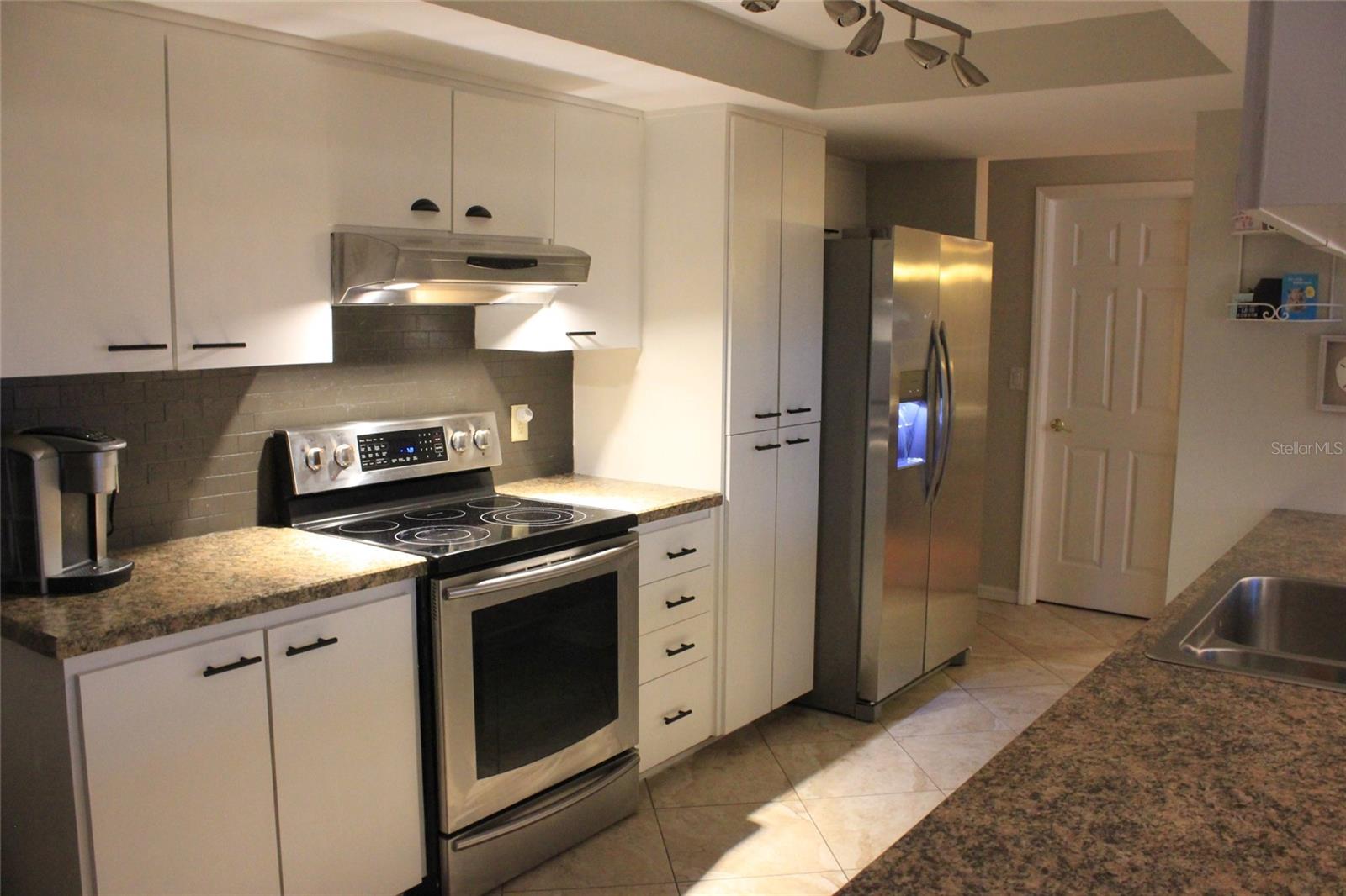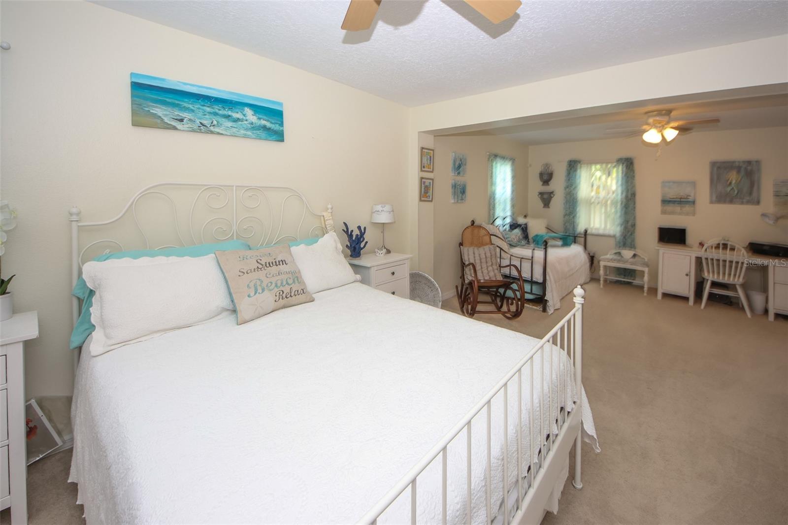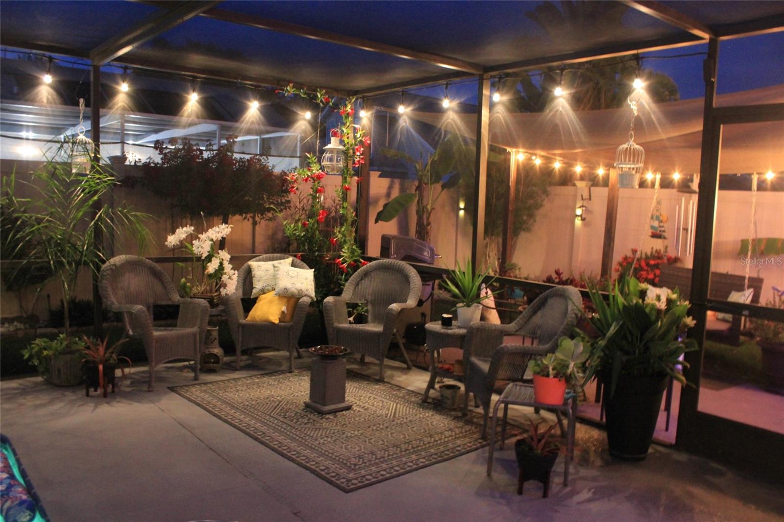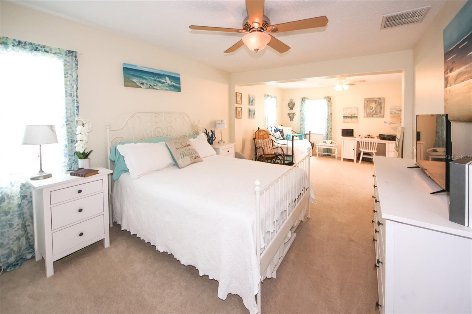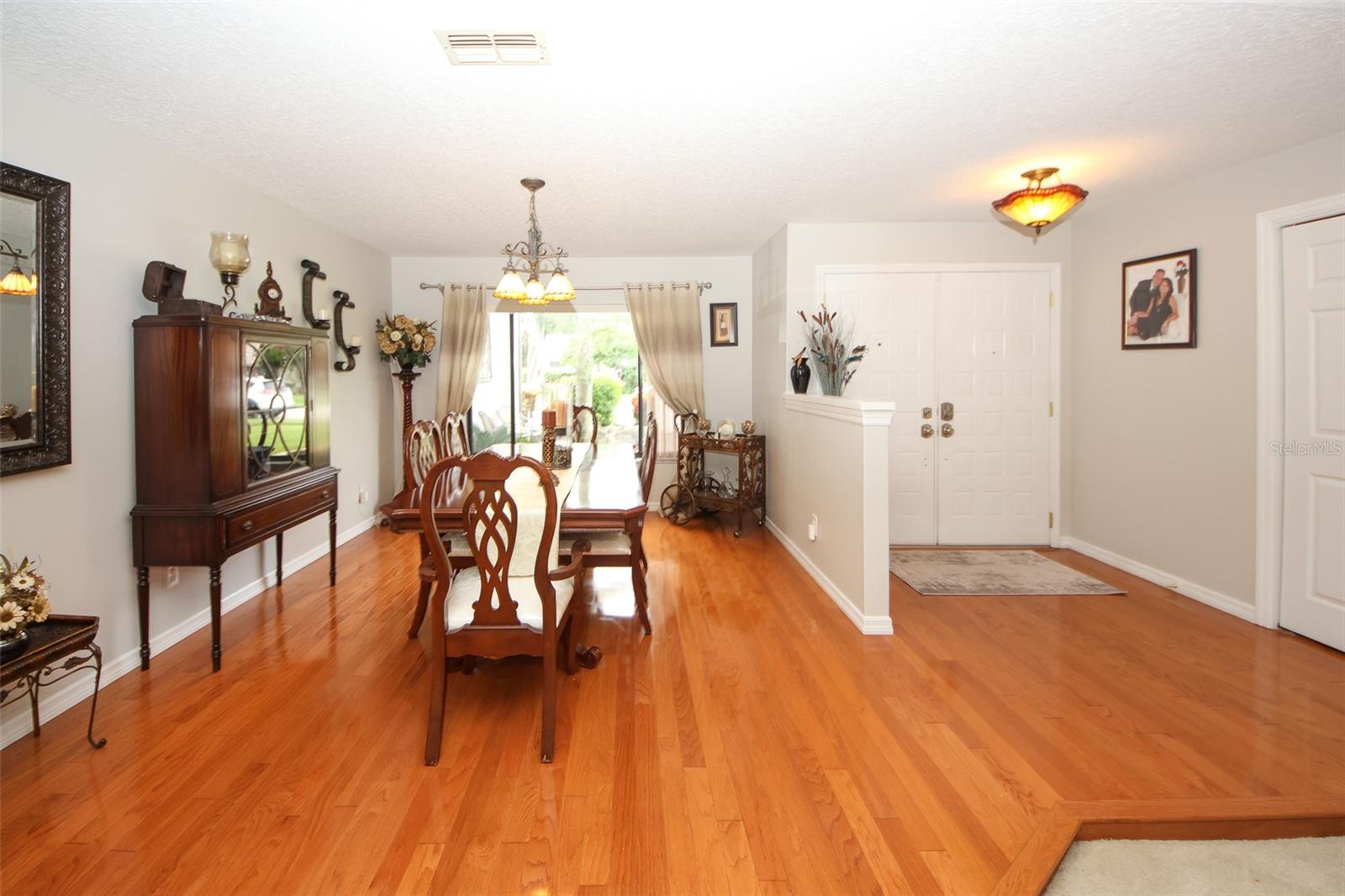This beautifully maintained pool home features a double-door entryway, an open floor plan with a wood-burning fireplace and skylights. The dining room has real wood floors, overlooking the open floor plan, cathedral ceilings, and fireplace. Unique features include an outside pool shower, a large pool deck, and a grill area. In addition, one of the bedrooms has a connected bonus room attached that opens to the pool deck (the bonus room is 15x11). The fenced yard features private seating areas and a grill patio area next to the pool deck. The roof was replaced in 2022, and the AC in 2016. The hot water tank was also replaced in 2022, and there's a whole house water purification system, irrigation, and updated windows throughout. Attic storage accessible by stair pull down in garage. Ring system present and will convey with sale. Additionally, the home's interior and exterior were painted within the past two years. The pool equipment, rain barrel, outside television, dry bar, and outside fridge all convey with the house. This is a must-see property, offering the best of Florida living, and it's conveniently located close to shopping, county parks, golf courses, and beaches, with easy access for Tampa commuters.