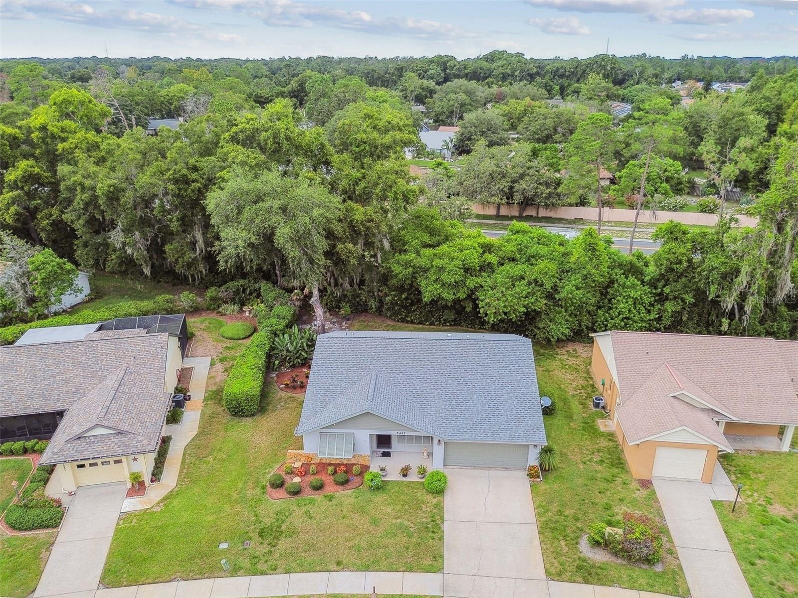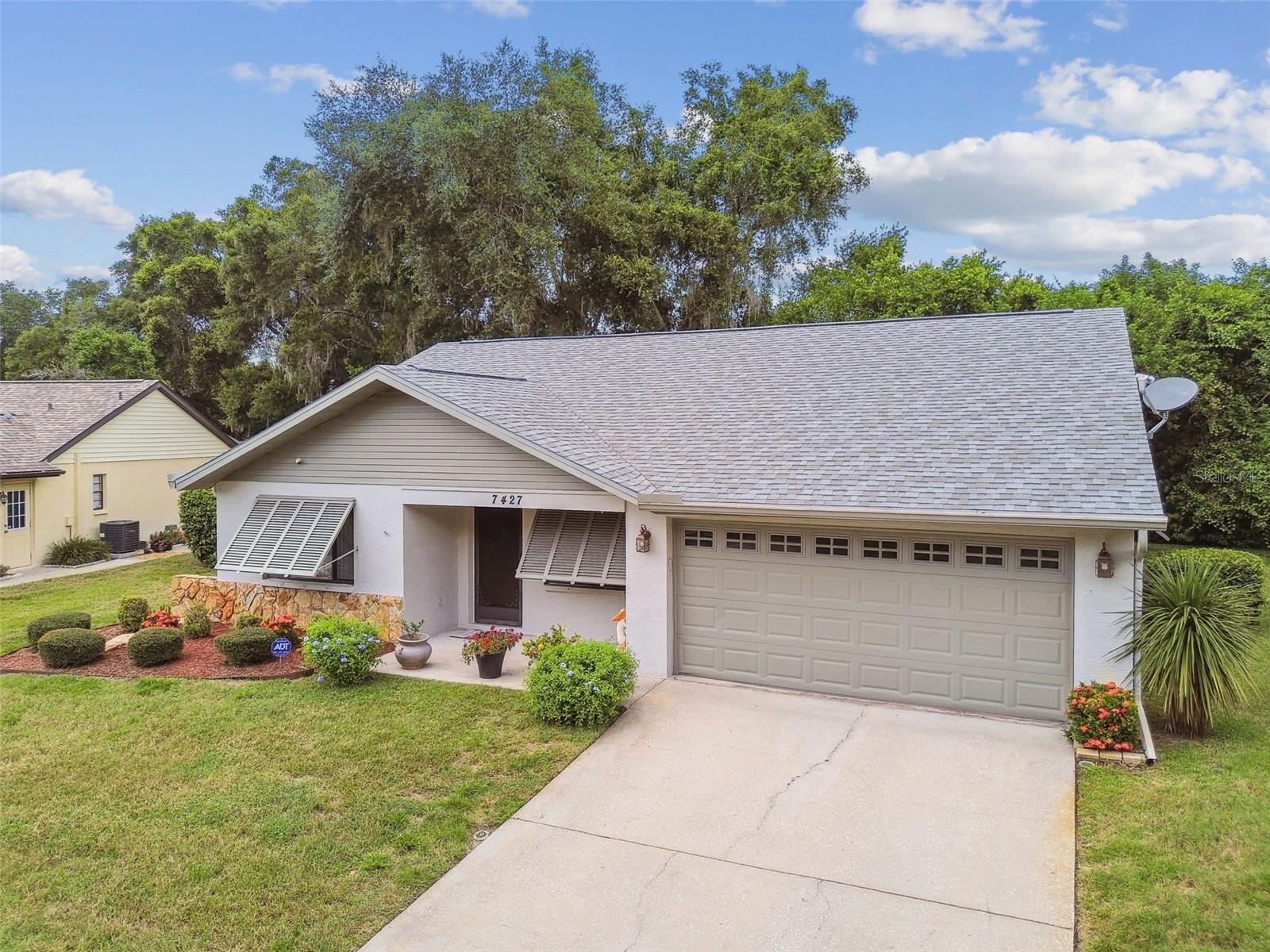 Welcome to 7427 Baltusrol Drive, 2-bedroom, 2-bathroom residence in the desirable community of Hunt Ridge in River Ridge, New Port Richey, FL. This home features a spacious living area with abundant natural light, a kitchen with granite countertops and appliances less than three years old, and an expansive primary suite with a walk-in closet and an updated en-suite bathroom. An additional bedroom provides comfort and versatility. The guest bathroom has also been updated to offer modern amenities and style. Step outside to a private patio overlooking a meticulously landscaped backyard. The home boasts a BRAND-NEW roof, exterior of the home painted within the last 3 years, and newer double-pane windows with hurricane shutters, ensuring energy efficiency, safety, and peace of mind. With a low HOA fee of $157 a month covering lawn mowing, grass spraying, grass watering, and trash, this home offers convenience. This prime location offers proximity to top-rated schools, The Express Way is less than 1/2 mile away making driving to TIA and downtown Tampa in less than 30 minutes. Shopping, dining, and entertainment options, blending suburban serenity with urban convenience. Schedule a private showing today.