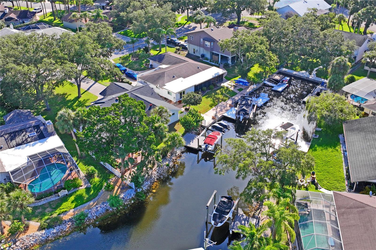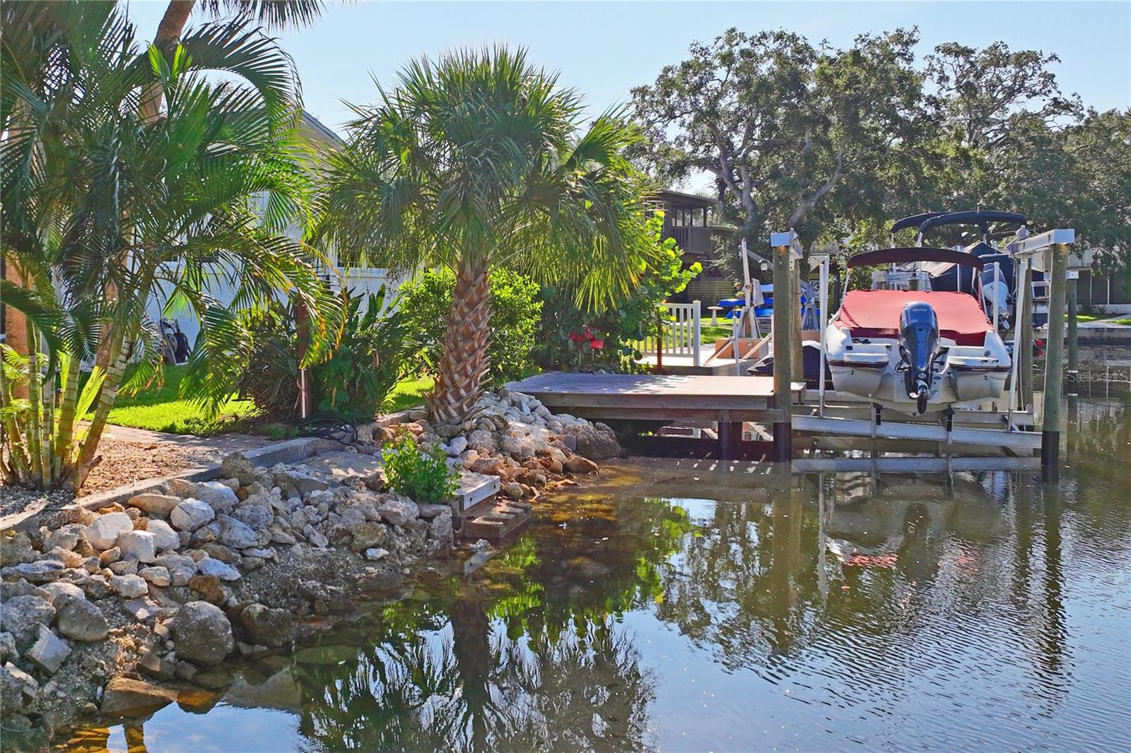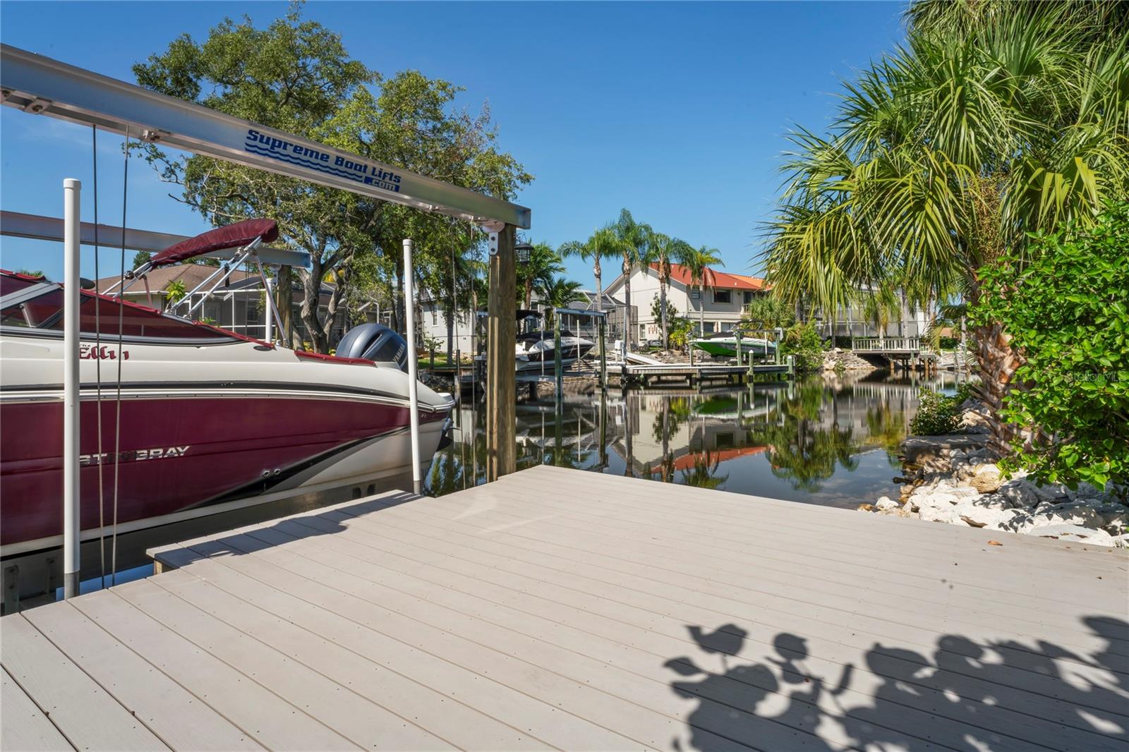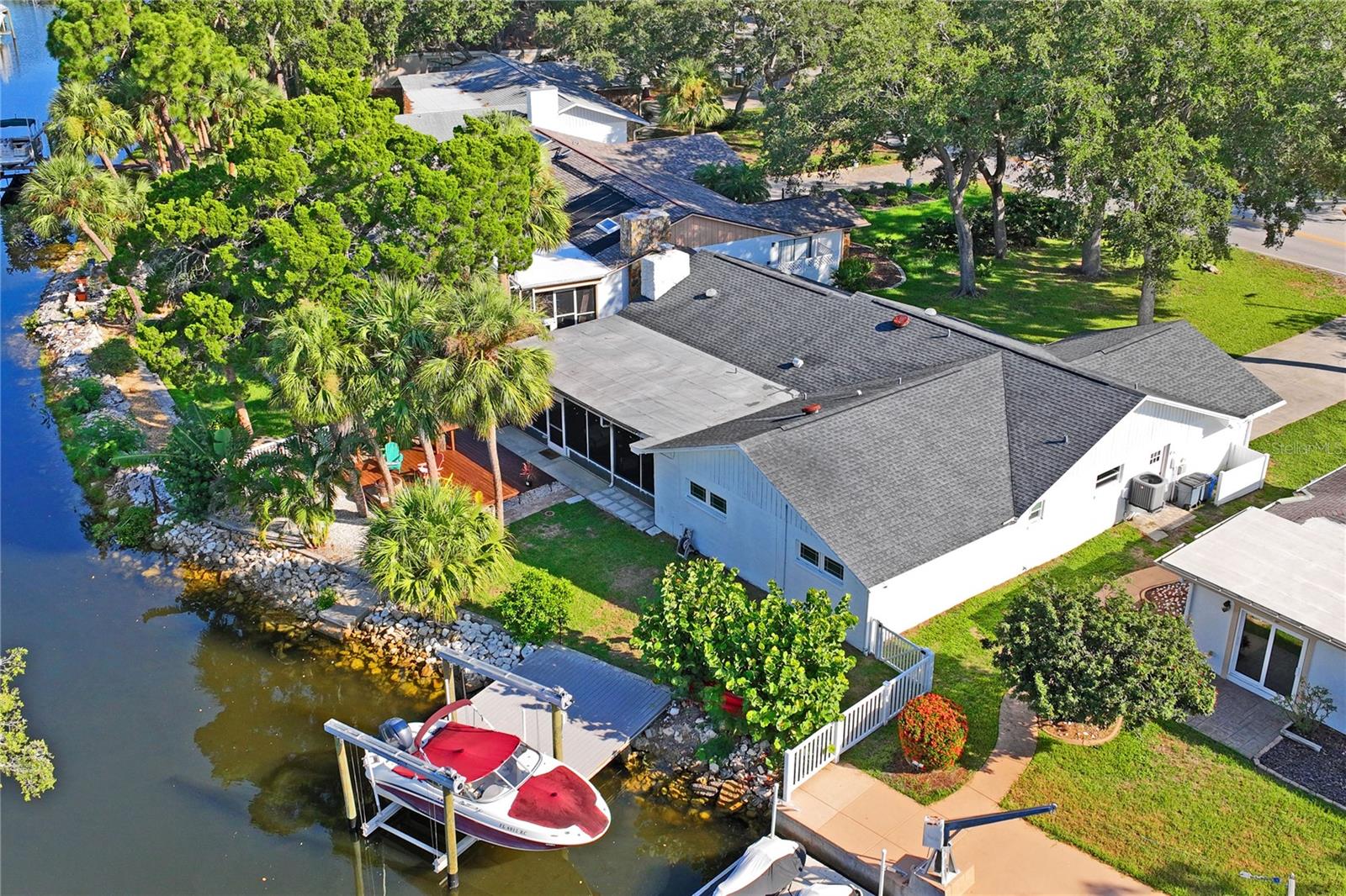 Welcome to your Florida dream home! Enter the double front doors and be welcomed into the large open living room. This gorgeous living space features vaulted ceilings, a wood burning fireplace, and overlooks the large screened patio. This stunning updated waterfront home features 2 bedrooms, 2 baths, bonus room, 2 car garage and a large driveway. The bonus room can easily be converted to a 3rd bedroom. This home includes many updates such as Luxury Vinyl Plank flooring throughout the home, impact resistant thermal windows, plantation shutters, solar illuminating lights, quartz counter tops, an induction stove and newly installed HVAC Duct work. The kitchen also features updated kitchen cabinets and farmhouse sink. Enjoy the tropical oasis on your backyard deck which overlooks the water with beautiful landscaping and a 10,000 pound boat lift. A short boat ride leads to the North channel which has direct access to the Gulf of Mexico. Boat and furnishings are negotiable! Well maintained, Deed Restricted community that includes heated community pool, club house, lighted tennis courts and private boat ramp. The neighborhood also features a private, gated residents ONLY Beach Club for $200 a year which includes a 1/4 mile of white sandy beaches, chairs, cabanas, grills, and beach bathrooms! Your choice to join! Conveniently located off US 19, this home offers easy access to downtown New Port Richey, ensuring proximity to shopping, dining, and entertainment. This is more than just a home; it’s a lifestyle. Experience the best of coastal living with convenience and elegance. Don’t miss out on this exceptional opportunity! Book Your Showing With Us Today!