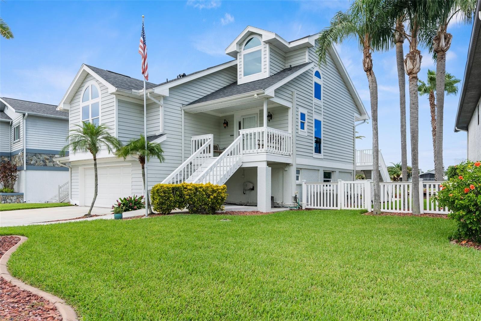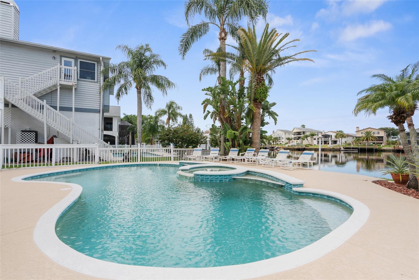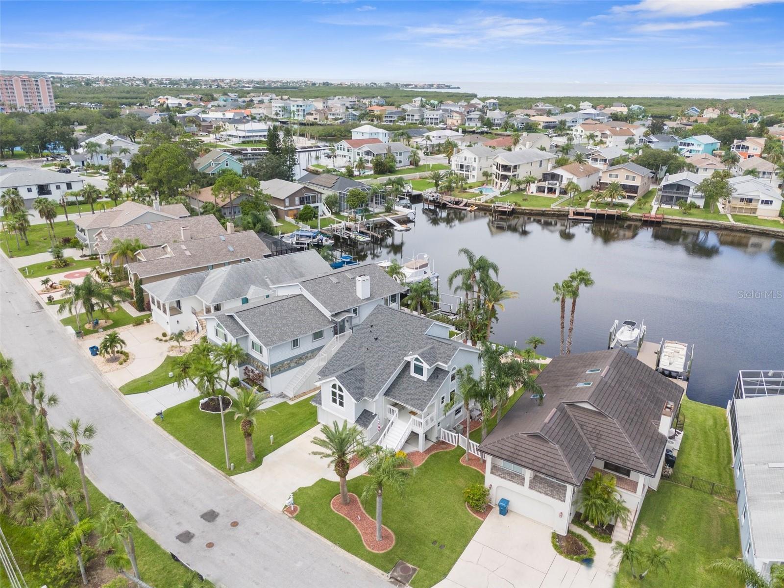 Hear that...it's the sound a palm trees rustling in the sea breeze and dolphins splashing in the turn basin right outside your backdoor. Welcome to Gulf Harbors Sea Forest! This beautiful area boasts an exclusive private beach club for residents only, stunning views, beautifully landscaped homes, and wonderful neighbors, all located within minutes of the ever-changing city scape of Downtown New Port Richey. As you arrive, your welcomed by the pristine landscape, custom curbing and commercial grade outdoor uplighting, making for a dramatic entrance. Walk upstairs to your second-floor entry and come inside to find the views of the water just past the oversized custom pool. A half bath as you step inside, perfect for visitors and a coat closet to match. The living room or great room is home to 3-hurrican impact sliding glass doors, cathedral ceilings and beautiful space for relaxing. Up a few steps, you land in the kitchen and dining space. Breakfast at the breakfast bar, or dinner under the chandelier, all with salt air at your backs. The views from the kitchen, will ensure for quite possibly the most pleasant cooking experience for even the most seasoned chef. Just past the kitchen you will find a utility closet outfitted with washer and dryer hookups. The primary suite is also located on the main level, with an oversized layout and room for plenty of large furniture pieces, two walk in closets, and an ensuite with a custom walk-in shower that you just must view in person to appreciate, with multiple shower heads including a stunning rain head and warm led lighting. Dual sinks and a water closet round out this great space. Up to the third level of the home, or second story if you will, you will find a newly renovated full bathroom and two generous sized bedrooms, again all with waterfront views and hurricane impact windows for prime efficiency and safety. Heading back down to the ground level, you will find the two-car garage with plenty of storage space. Around the corner is a multi-functional bonus space that outfits the entire ground floor of the home that you truly have to see in person. Head outside to the greatest treasure, a spacious outdoor space complete with propane gas hookups for a generator and a grill set up. An oversized custom heated saltwater pool with a spectacular overflow spa and water features. Of course, the most magical part of the home, the 50ft of water frontage. This is a turn basin, eliminating main canal traffic, and creating more privacy. Deep water and plenty of room for larger vessels. The concrete seawall is outfitted with both water and electric, so a lift or dock can easily be added to fit your desired needs. At night, this home comes alive with custom commercial grade landscape lightning and the expansive back deck is ready for entertaining. This home has it all. A newly upgrade roof in 2024 with 50-year transferable warranty, hurricane impact resistant windows & doors, security system, 220 service in garage, an additional 50 amps run for generator if needed. Brand new water softener, screens on all windows, 8 zone irrigation system, direct pool refill line so no water hose needed, plenty of green space outdoors to compliment the water frontage, repoured 6'' deep driveway with flex and wire mesh, 2'' conduit run in several locations making upgrades easy for future homeowners. Every inch of this home was well thought out. *Professional photos/ videos/floorplan coming soon!
