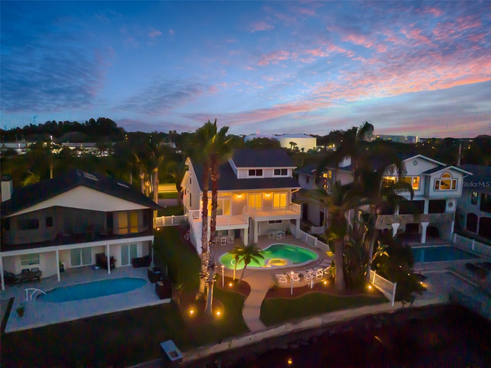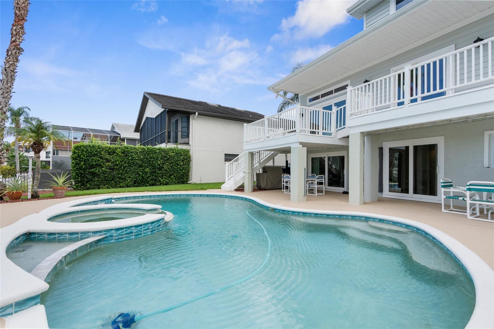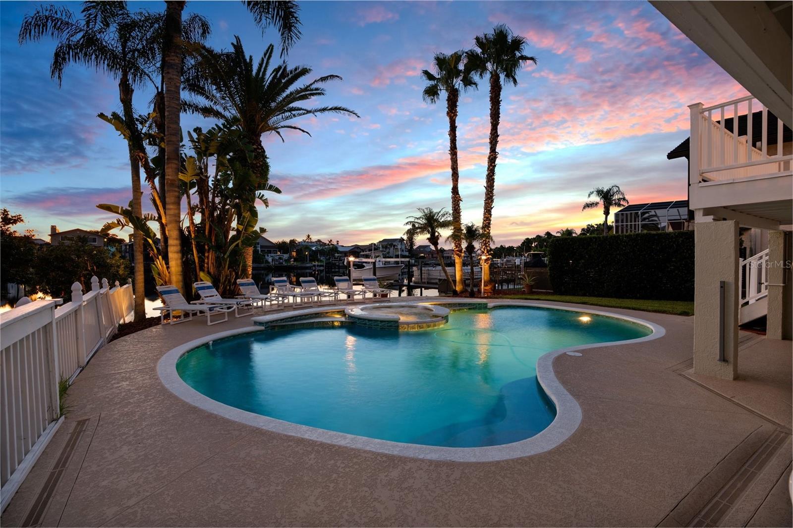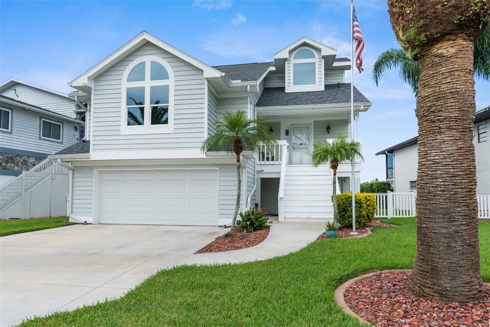 Hear that...it's the sound a palm trees rustling in the sea breeze and dolphins splashing in the turn basin right outside your backdoor. Welcome to Gulf Harbors Sea Forest! This beautiful area boasts an exclusive private beach club for residents only, stunning views, beautifully landscaped homes, and wonderful neighbors, all located within minutes of the ever-changing city scape of Downtown New Port Richey. As you arrive, your welcomed by the pristine landscape, custom curbing and commercial grade outdoor uplighting, making for a dramatic entrance. Walk upstairs to your second-floor entry and come inside to find the views of the water just past the oversized custom pool. A half bath as you step inside, perfect for visitors and a coat closet to match. The living room or great room is home to 3-hurrican impact sliding glass doors, cathedral ceilings and beautiful space for relaxing. Up a few steps, you land in the kitchen and dining space. Breakfast at the breakfast bar, or dinner under the chandelier, all with salt air at your backs. The views from the kitchen, will ensure for quite possibly the most pleasant cooking experience for even the most seasoned chef. Just past the kitchen you will find a utility closet outfitted with washer and dryer hookups. The primary suite is also located on the main level, with an oversized layout and room for plenty of large furniture pieces, two walk in closets, and an ensuite with a custom walk-in shower that you just must view in person to appreciate, with multiple shower heads including a stunning rain head and warm led lighting. Dual sinks and a water closet round out this great space. Up to the third level of the home, or second story if you will, you will find a newly renovated full bathroom and two generous sized bedrooms, again all with waterfront views and hurricane impact windows for prime efficiency and safety. Heading back down to the ground level, you will find the two-car garage with plenty of storage space. Around the corner is a multi-functional bonus space that outfits the entire ground floor of the home that you truly have to see in person. Head outside to the greatest treasure, a spacious outdoor space complete with propane gas hookups for a generator and a grill set up. An oversized custom heated saltwater pool with a spectacular overflow spa and water features. Of course, the most magical part of the home, the 50ft of water frontage. This is a turn basin, eliminating main canal traffic, and creating more privacy. Deep water and plenty of room for larger vessels. The concrete seawall is outfitted with both water and electric, so a lift or dock can easily be added to fit your desired needs. At night, this home comes alive with custom commercial grade landscape lightning and the expansive back deck is ready for entertaining. This home has it all. A newly upgrade roof in 2024 with 50-year transferable warranty, hurricane impact resistant windows & doors, security system, 220 service in garage, an additional 50 amps run for generator if needed. Brand new water softener, screens on all windows, 8 zone irrigation system, direct pool refill line so no water hose needed, plenty of green space outdoors to compliment the water frontage, repoured 6'' deep driveway with flex and wire mesh, 2'' conduit run in several locations making upgrades easy for future homeowners. Every inch of this home was well thought out. *Professional photos/ videos/floorplan coming soon!