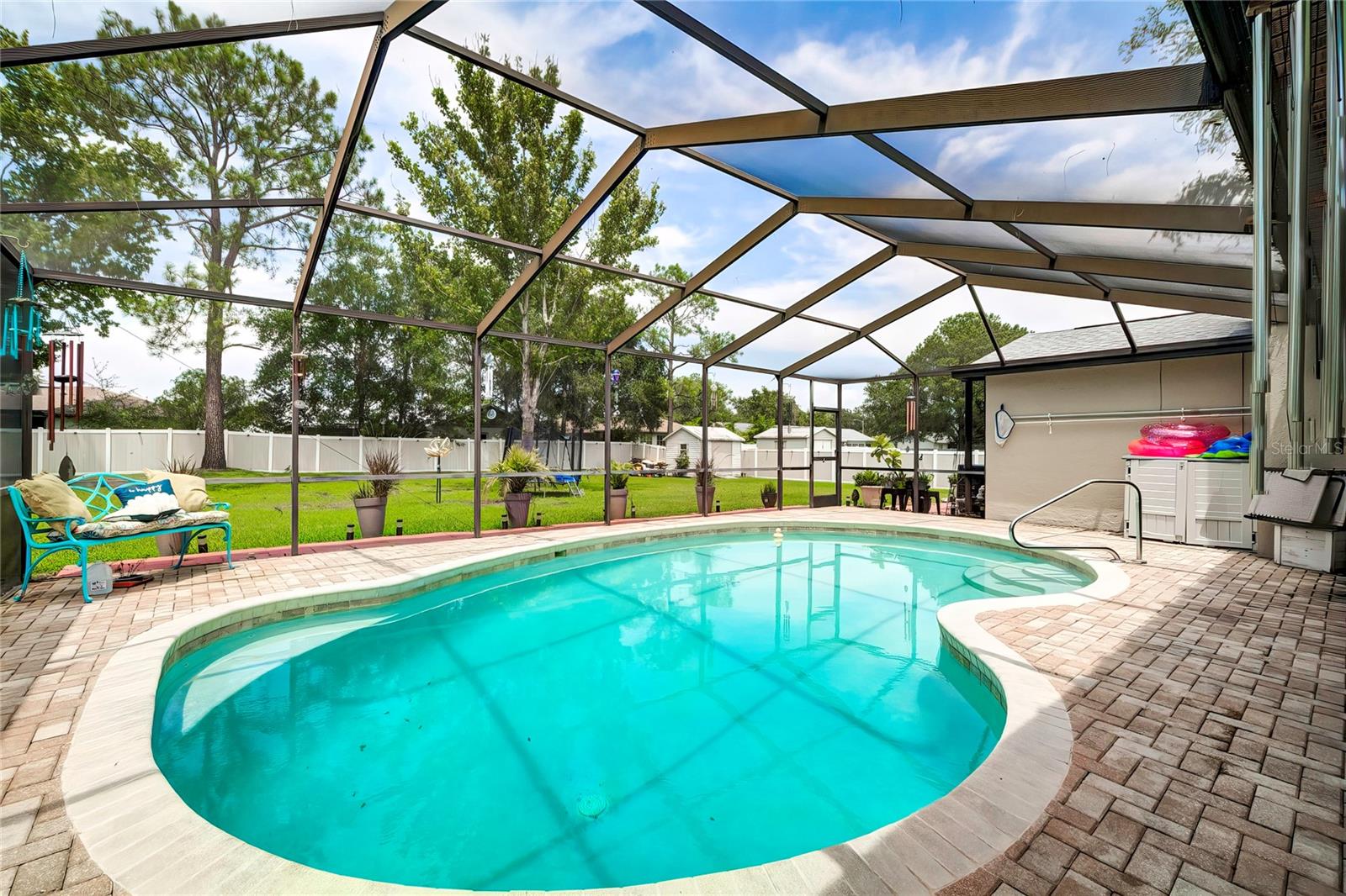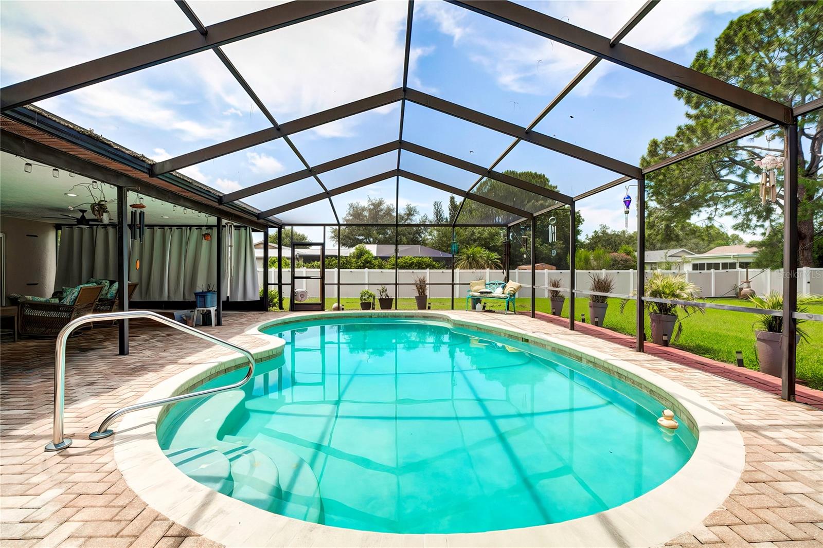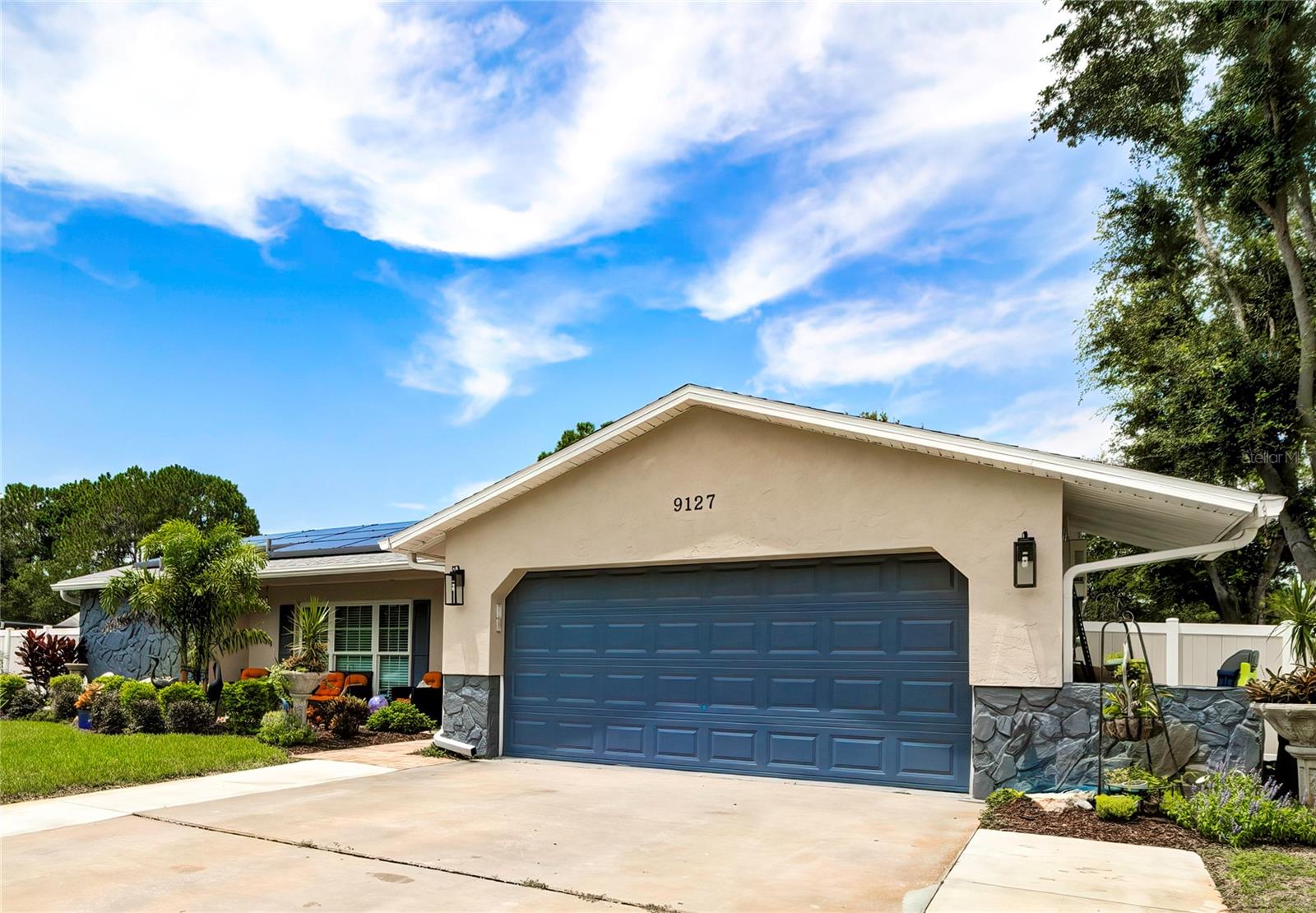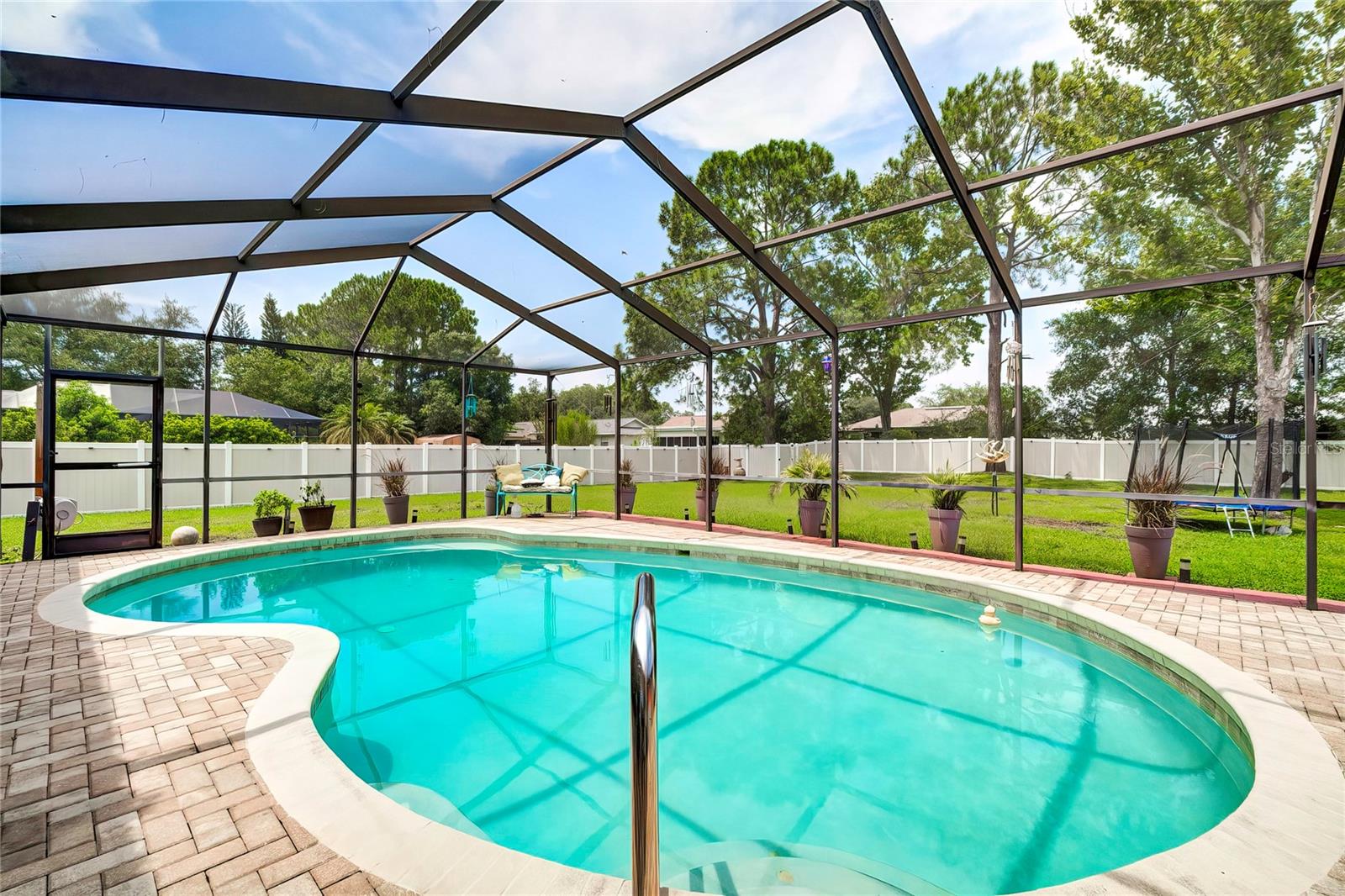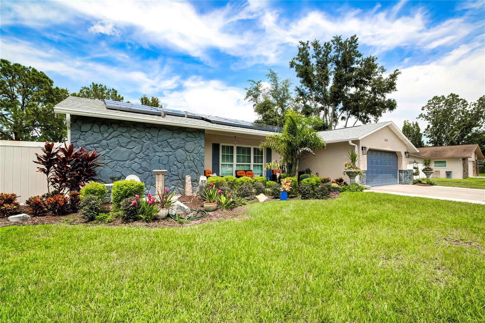 Welcome to your dream home, where beauty meets functionality in every corner! This 4-bedroom, 2-bathroom single family home offers the perfect blend of contemporary updates and outdoor bliss, making it an ideal sanctuary for any homeowner with no HOA or CDD fees. KEY FEATURES INCLUDE: Gorgeous Landscaping: The moment you arrive, you’ll be captivated by the meticulously maintained front yard, featuring lush greenery, vibrant flowers, and a palm tree that creates a tropical and inviting atmosphere. Bright, Clean, Modern Interior: Step inside to discover a freshly renovated interior that boasts an open-concept design with an abundance of natural light. Modern fixtures, stainless steel appliances, sleek finishes, neutral tones, and a cozy fireplace make this space both stylish and welcoming. Private Fenced Backyard: Your own personal oasis awaits in the spacious 1/2 acre backyard. Enjoy privacy with a fully fenced yard, perfect for entertaining, gardening, or just relaxing. A shed for extra storage is a huge bonus. Sparkling Pool: Beat the heat and unwind in your gorgeous in-ground pool, surrounded by a generous patio area under a meticulous pool cage that is perfect for sunbathing, barbecuing, or hosting gatherings. New Roof & Solar Panels: Rest easy knowing that this home is not only beautiful but also energy-efficient, thanks to a brand-new roof 11/2023 and state-of-the-art solar panels that is leased and can be easily transferred to the buyer. Save on insurance and energy bills while enjoying peace of mind for years to come. Prime Location: Conveniently located near Trinity with all this vibrant community has to offer including Medical Center, Golf Courses, Top-Notch Schools (Longleaf Elementary and River Ridge School Districts). Veterans Expressway and State Route 19 provide easy access for all your commuting needs. WHAT'S NOT TO LOVE? Seller may even consider buyer concessions if made in an offer. Don't miss the opportunity to own this beautifully updated home with everything you need for modern living and outdoor enjoyment. Schedule a showing today and experience the best of Florida living in this delightful New Port Richey gem today!