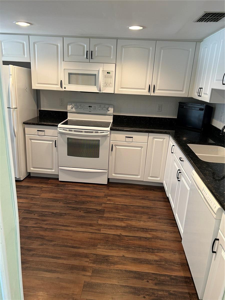 One or more photo(s) has been virtually staged. Priced to Sell! Beautiful, 3BR condo in 34655 area code in Pasco County! Conveniently located, move-in ready, spacious 1,392 sq/ft living space that includes another 97 sq/ft of enclosed rear porch also under air! Clean and well maintained. NO CARPET. Newer ceramic tile in Kitchen, main hall and Great Room! All BR's feature laminate, wood look flooring. Kitchen features a generous amount of cabinets with white, raised panel profile doors and drawers. Kitchen also features granite countertops with undermount sink. A small eat in area is available as well. Spacious Dining Room/Great Room combination provides an open and airy feel with lots of space for a large dining table and sectional sofa. Enjoy morning coffee in the under air Florida Room with additional corridor set up for darts and exercise equipment. A fully enclosed with privacy wall, 26'x23' courtyard offers complete privacy for sunning, barbecuing and just plain relaxing outside. Inside, an additional atrium provides a unique space for decorative flair. This unit comes with a single space carport plus another parking space. Also, a unique, 4.5'x11' enclosed storage shed is included allowing for practical storage needs! Close to shopping, healthcare with ease of access to Tampa, airport, North Pinellas Beaches and Tarpon Springs. Enjoy exterior, maintenance free living in this "boutique'ish" Community of 16 Condo units. Come and See!!!