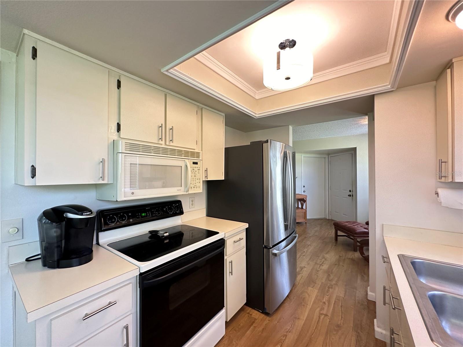 Discover the charm of this 2-bedroom, 2-bathroom condo in the sought-after Heritage Lake 55+community. This well-maintained home features a one-car attached garage, a spacious lanai, and numerous upgrades. The living areas have 8 ceilings, beautiful Luxury Vinyl flooring, adding a touch of modern elegance. Split bedroom floor plan. Key updates include a new AC unit (1 year old), a hot water heater (2 years old), and an upgraded electrical panel. The washer and dryer are also just 3 years old, ensuring that all the essentials are up-to-date. Vibrant community offering an active lifestyle. Enjoy a heated pool and spa with serene views of the lake, and take advantage of the clubhouse's endless activities, including dances, parties, card games, and billiards. Stay fit with the exercise area and classes, or relax with a good book in the library. Outdoor enthusiasts will appreciate the tennis courts, pickleball, shuffleboard, and bocce ball courts. Your condo fees cover recreational facilities, ground maintenance, pest control, exterior home maintenance (including painting and roof care), escrow reserves, trash removal, basic cable, common area taxes, management, and more. This condo enables you to fully enjoy the relaxed Florida way of life, allowing you to unwind while being conveniently located near shopping centers, beaches, restaurants, and hospitals. Moreover, the property is a mere 45-minute drive from both Tampa and St. Pete airports. With its move-in ready condition,