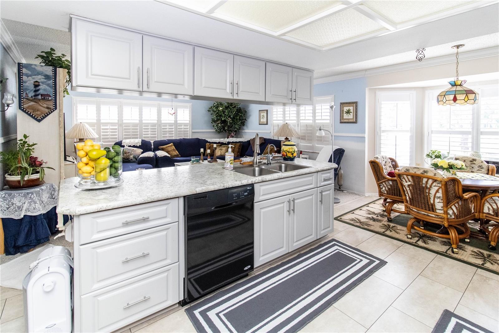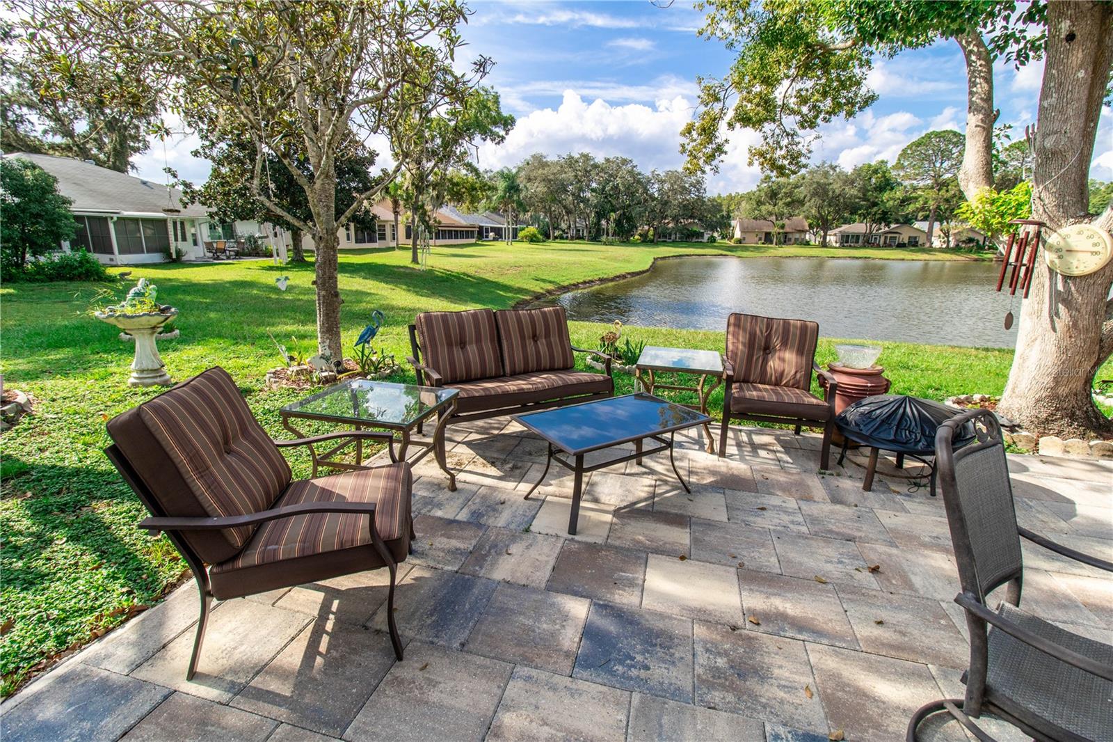 This newly updated 2 bed 2 full bath 2 car garage sits on a quiet Cul de sac. Roof is 2019 Both Bathrooms and the kitchen tastefully updated 2021.Beautiful Plantation shutters in most rooms. This cozy home sits on a picturesque lake in the well established Heritage Lakes Community. The kitchen cabinets have all been replaced. Both bathrooms upgraded with High end tile and fixtures. Tile floor throughout main living areas makes for easy clean and keeps house cool. Large lanai overlooks the serene Pond with stone paver patio. This is a 55 and over community with lots of activities including clubhouse, pool and tennis courts Bingo, bocce and shuffleboard courts.