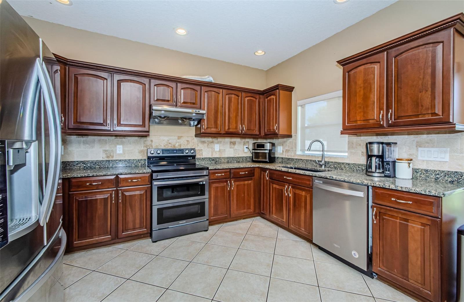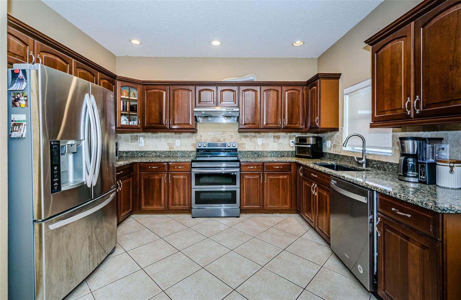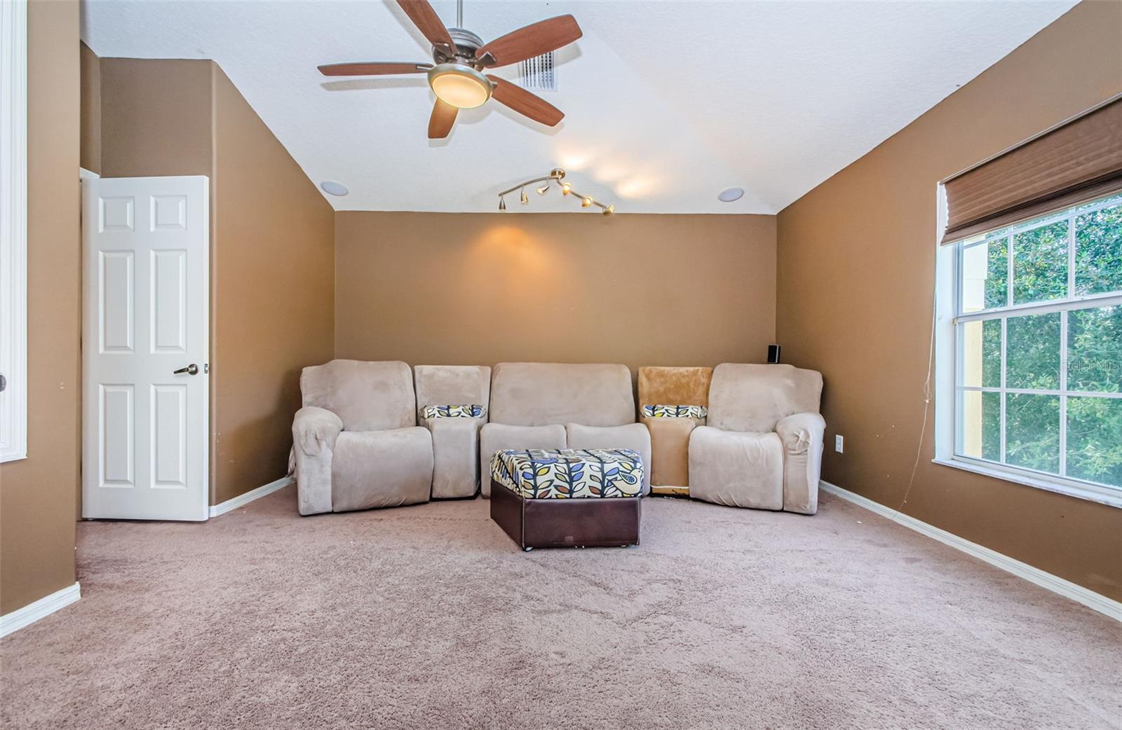 Don't miss your opportunity to view this spacious, move-in ready home in the sought after gated community of Waters Edge! This must-see home features a 3-car garage, 3 full baths, and 5 bedrooms, with a bonus room that could be used as a sixth bedroom or media room. On the first floor you will find the living room, dining room, family room, and kitchen flow seamlessly, allowing plenty of room for entertaining family and friends. There's also a bedroom on the first floor with an adjacent full bath that would make a perfect guest suite. Two sliders lead out to a nice-size covered back patio, where you can enjoy your morning coffee in your fenced-in back yard. Upstairs, you will find a spacious master suite, with his and her walk-in closets and attached bathroom that boasts an updated tub and separate shower, dual sinks, and private water closet. Also on the second floor are the remaining bedrooms, bonus room, and another full bath. The hot water tank was replaced in July 2024. The home has a wired security system. You will not want to miss out on all of the amenities that are available in this community, some of which are the clubhouse game room, banquet room, fitness center and pool. There are also plenty more ways to stay active, including basketball, pickleball, and a fishing pier. The HOA fees include cable, internet, trash, and security. Minutes from the Suncoast Parkway, you will have easy access to the Tampa Airport, hospitals, dining, and shopping. Make an appointment today to come and view your new home!