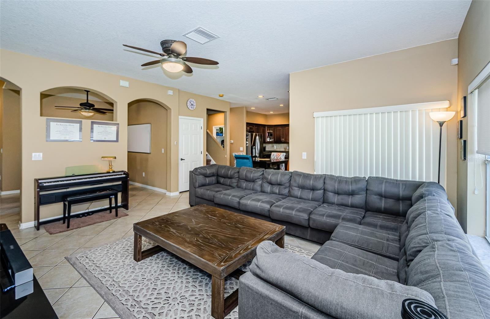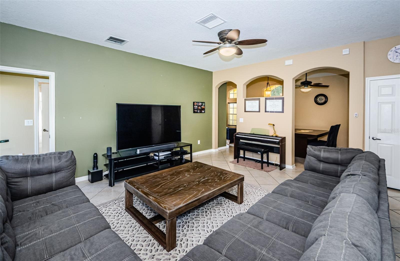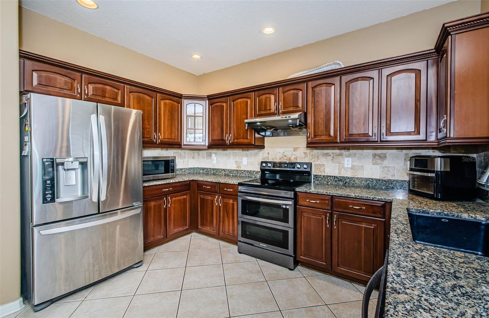 Don't miss your opportunity to view this spacious, move-in ready home in the sought after gated community of Waters Edge! This must-see home features a 3-car garage, 3 full baths, and 5 bedrooms, with a bonus room that could be used as a sixth bedroom or media room. On the first floor you will find the living room, dining room, family room, and kitchen flow seamlessly, allowing plenty of room for entertaining family and friends. There's also a bedroom on the first floor with an adjacent full bath that would make a perfect guest suite. Two sliders lead out to a nice-size covered back patio, where you can enjoy your morning coffee in your fenced-in back yard. Upstairs, you will find a spacious master suite, with his and her walk-in closets and attached bathroom that boasts an updated tub and separate shower, dual sinks, and private water closet. Also on the second floor are the remaining bedrooms, bonus room, and another full bath. The hot water tank was replaced in July 2024. The home has a wired security system. You will not want to miss out on all of the amenities that are available in this community, some of which are the clubhouse game room, banquet room, fitness center and pool. There are also plenty more ways to stay active, including basketball, pickleball, and a fishing pier. The HOA fees include cable, internet, trash, and security. Minutes from the Suncoast Parkway, you will have easy access to the Tampa Airport, hospitals, dining, and shopping. Make an appointment today to come and view your new home!