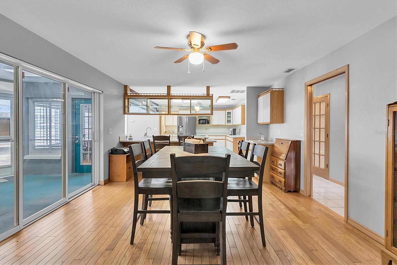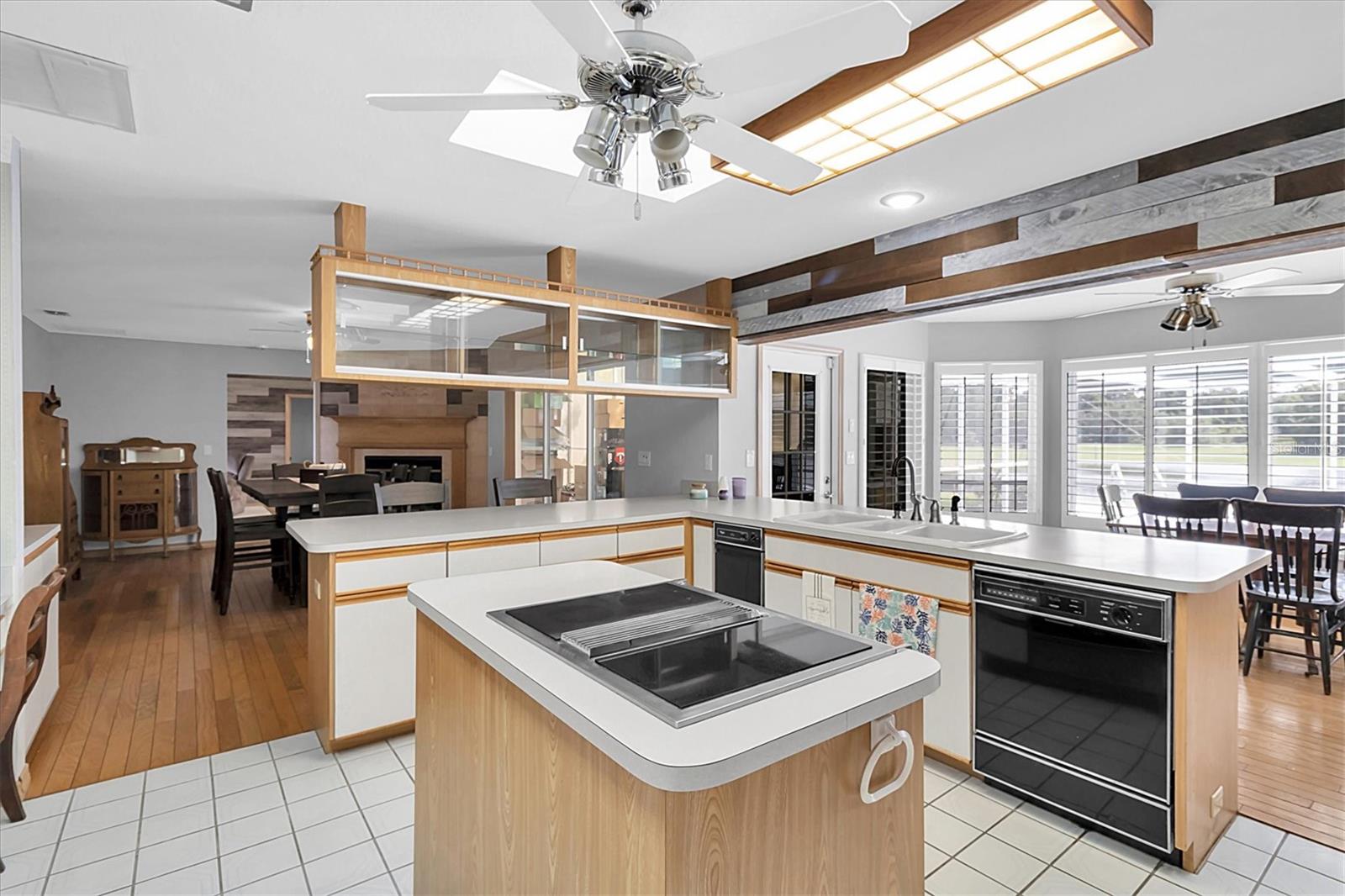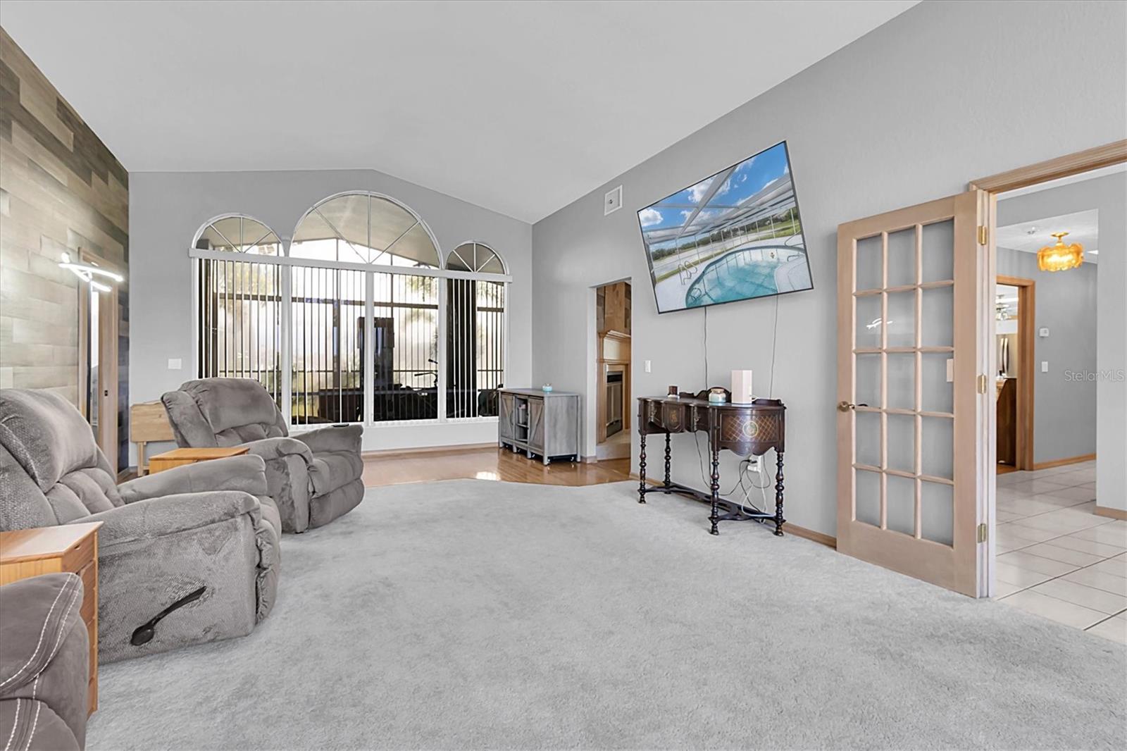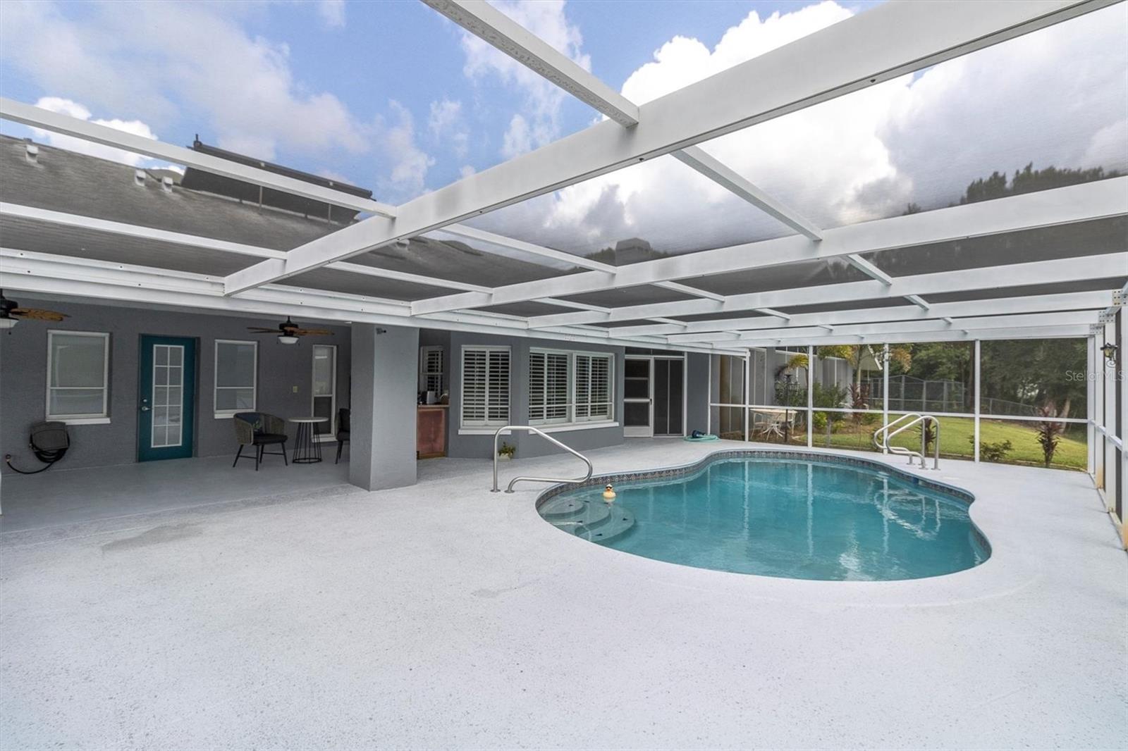 Welcome to 8607 Cranes Roost Dr, New Port Richey! Nestled on a picturesque 1.23-acre estate with serene lake views, this expansive 3,611 sq ft home is designed to accommodate multigenerational living with ease. The morning sunrises on your back deck are breathtaking and the sunsets from the front porch are incredible as well. Each bedroom is thoughtfully equipped with a walk-in closet, providing ample storage for all. The heart of the home features a large, open-concept kitchen that seamlessly flows into the breakfast nook and family room, where a cozy fireplace invites relaxation. Entertain in style with the spacious formal dining room and living room, both offering elegant settings for gatherings. Step outside to the screened-in pool area and lanai, where you can enjoy tranquil lake views year-round. A separate screened porch provides additional outdoor living space that runs the entire length of the rear of the home. The property also boasts a versatile craft/hobby/workroom, a generous utility room, and a 4+ car garage, making this home the ultimate home! There is a fenced dog run area and separate outdoor storage shed area as well. Perfect home to add upgrades and improvements as plenty of room for interior expansion and reconfiguration. The seller has the ORIGINAL blueprints from the home as well!