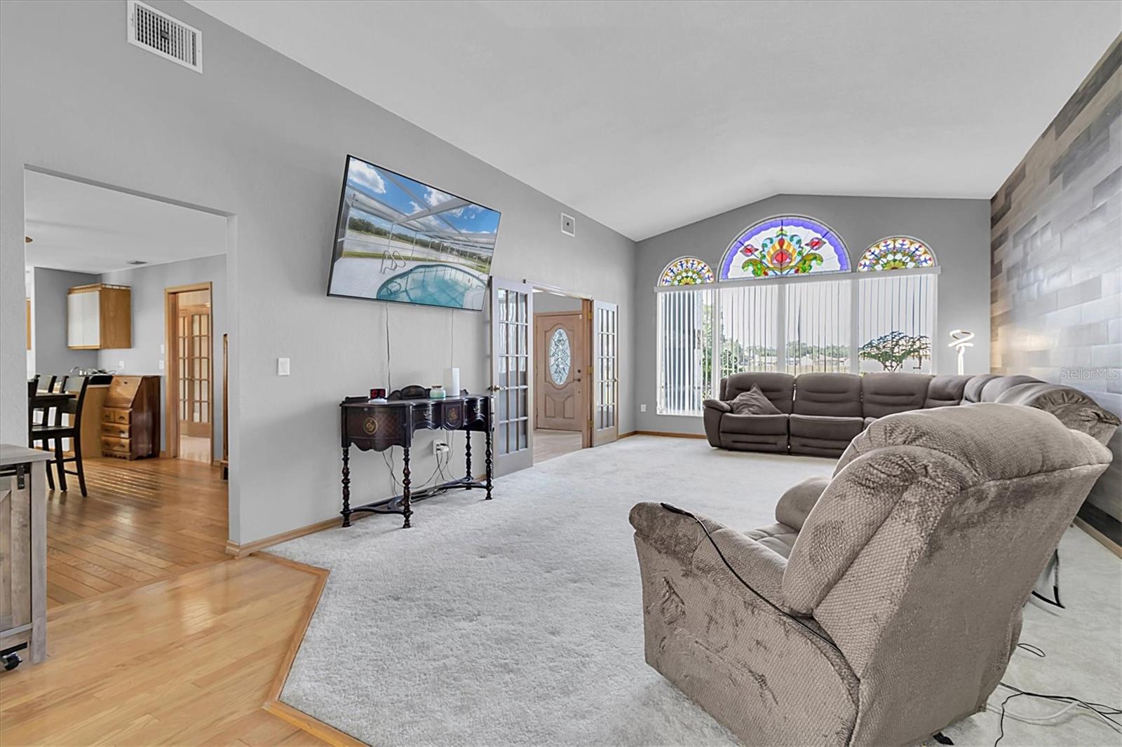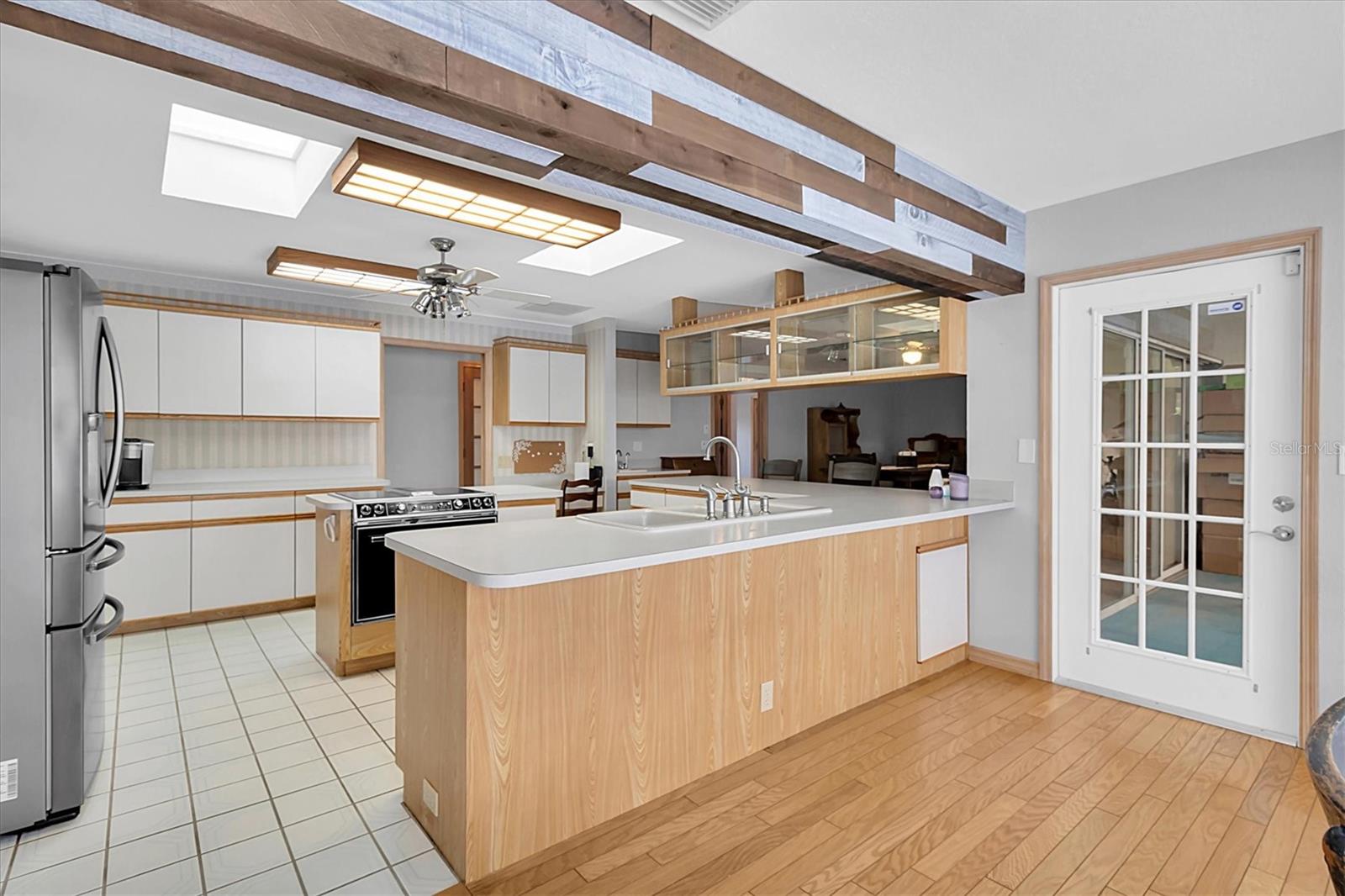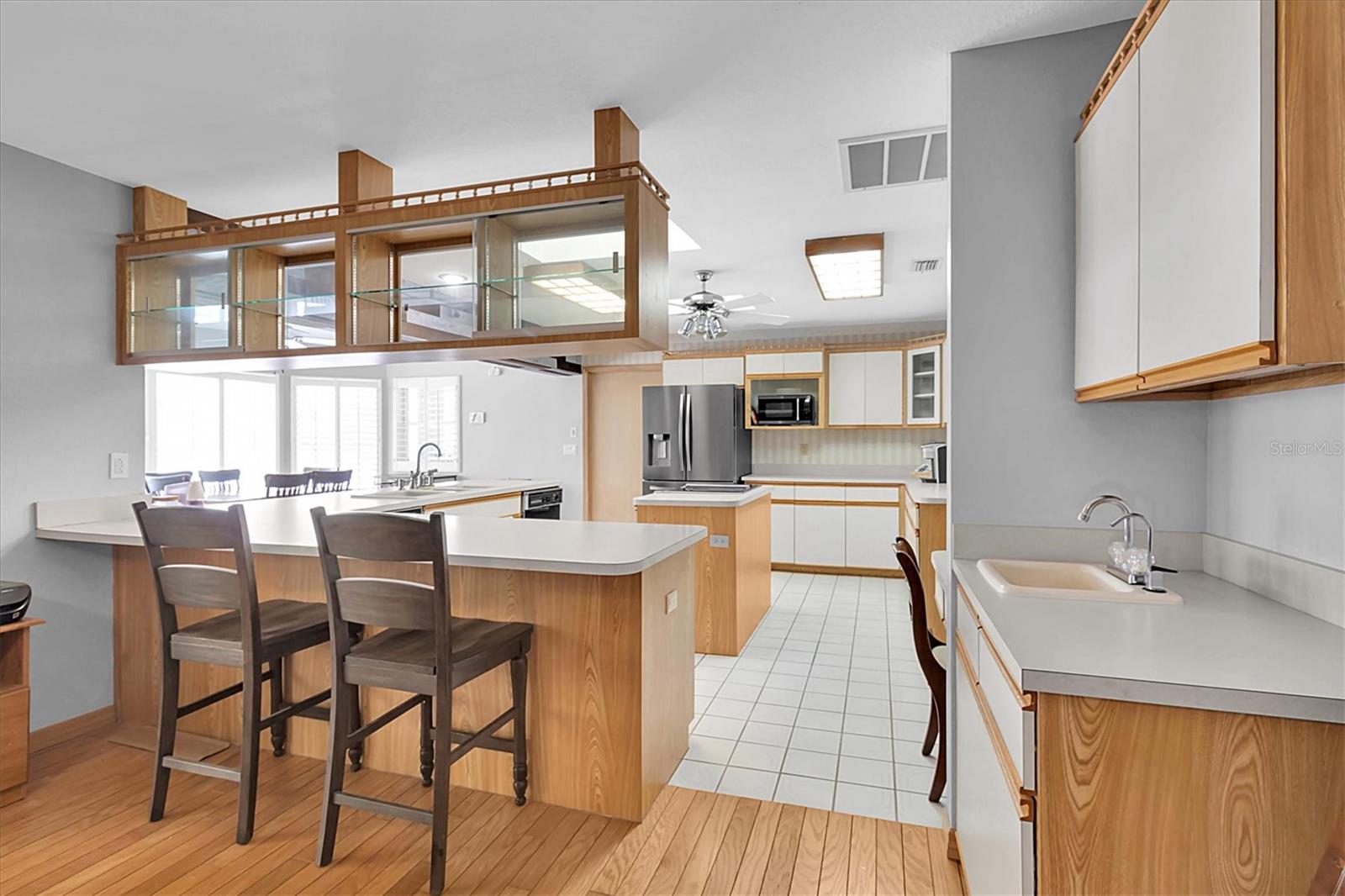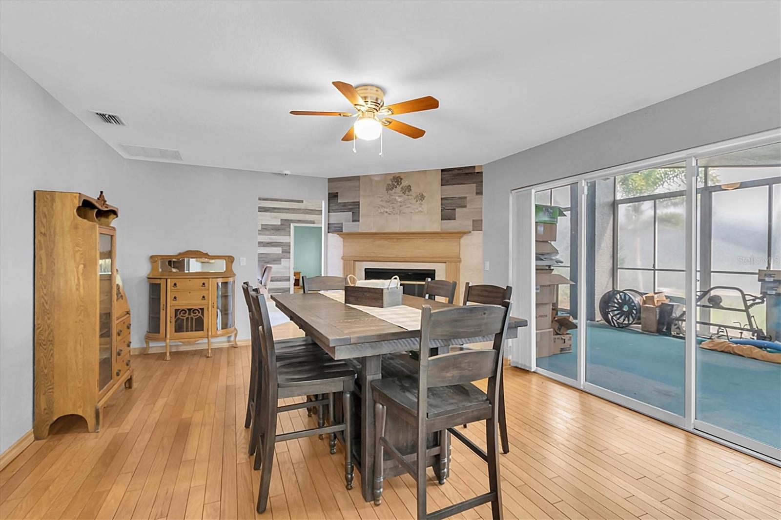 Welcome to 8607 Cranes Roost Dr, New Port Richey! Nestled on a picturesque 1.23-acre estate with serene lake views, this expansive 3,611 sq ft home is designed to accommodate multigenerational living with ease. The morning sunrises on your back deck are breathtaking and the sunsets from the front porch are incredible as well. Each bedroom is thoughtfully equipped with a walk-in closet, providing ample storage for all. The heart of the home features a large, open-concept kitchen that seamlessly flows into the breakfast nook and family room, where a cozy fireplace invites relaxation. Entertain in style with the spacious formal dining room and living room, both offering elegant settings for gatherings. Step outside to the screened-in pool area and lanai, where you can enjoy tranquil lake views year-round. A separate screened porch provides additional outdoor living space that runs the entire length of the rear of the home. The property also boasts a versatile craft/hobby/workroom, a generous utility room, and a 4+ car garage, making this home the ultimate home! There is a fenced dog run area and separate outdoor storage shed area as well. Perfect home to add upgrades and improvements as plenty of room for interior expansion and reconfiguration. The seller has the ORIGINAL blueprints from the home as well!