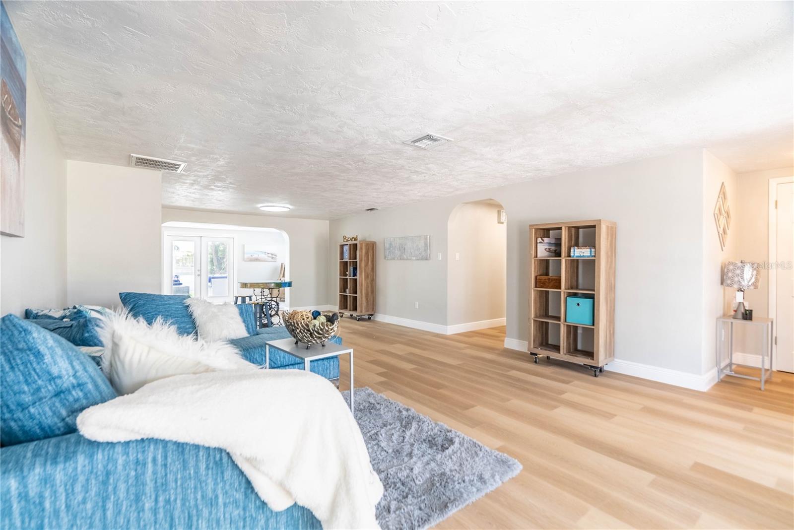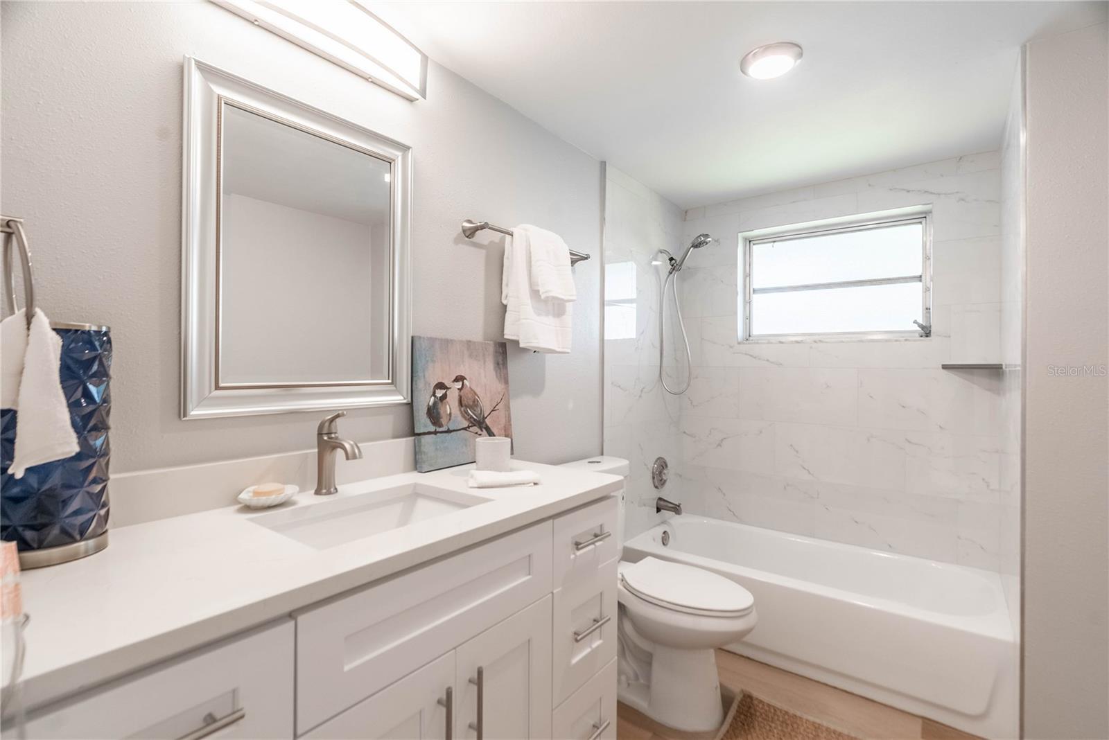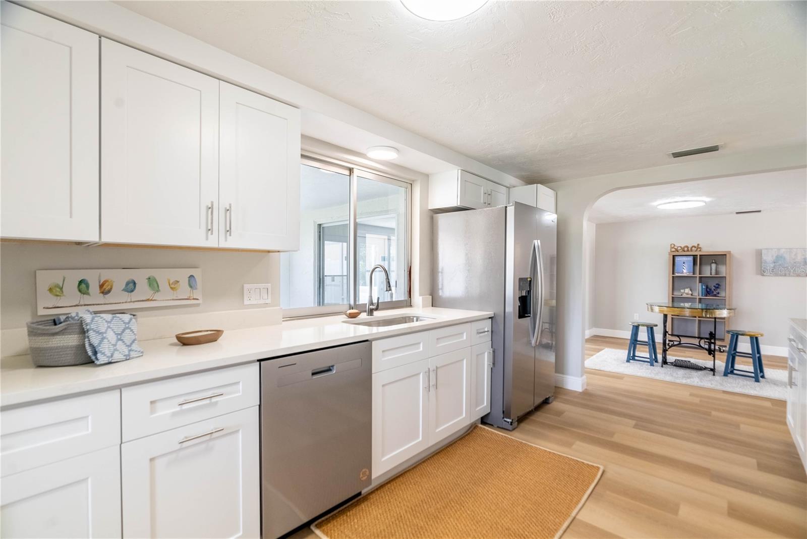 PRICE REDUCED FOR IMMEDIATE SALE and seller's financial loss for all the improvements made are the buyer's gain! If you love the Florida lifestyle, come for a visit (and stay!) in a growing area of New Port Richey. This COMPLETELY RENOVATED (2023) concrete block constructed home is within the Gulf Harbors Floramar community, best known for its private sandy beach for neighborhood residents (optional community membership $180 per year), boat ramp, and located within a few miles of the downtown offering riverfront venues for restaurants, shops, theater. Wow. The premium lot is almost double the size of most others in this community, just under a quarter of an acre, on a corner, and pie-shaped. So much parking for your guests and even temporarily to park an RV or boat on either side of the house (Community Rules do not allow permanent storage of large vehicles visible onsite). NOT WATERFRONT but adjacent properties on both sides are waterfront. Aerial photos capture the beauty of this waterfront area. The home is a 2 Bedroom (potential for 3rd bedroom with some modifications), 2 Bathroom with over 1700 square feet of cooled living space, and a 2 car garage. With this open floor plan, the new owner will have many options for creating space to serve multi-purposes, from a cooled Florida room or office to open dining and living and family areas. The list of upgrades include a NEW 2023 (flat) roof, NEW air conditioning system with expanded duct work, Completely new kitchen with stylish cabinetry, stainless steel new appliances, new quartz countertops, new hot water heater, new washer dryer which is in a cooled laundry room. There is a 2 car garage. The whole place has been freshly painted inside and outside. All new lighting. Electric panels are updated and to code. The bathrooms have been renovated to include exceptionally pleasing stylish cabinets and tile work and all new fixtures. Master bathroom has double vanity. The backyard is simply an oasis. You MUST SEE! An open patio with concrete slab is a great place for the barbecue area. There is also an enormous screened-in outdoor area providing the enjoyment of outdoor living without worries about bugs. What a great place for pets and family members to safely enjoy the outdoors. Add some twinkling lights overhead, maybe a bar, a hot tub and you will be in paradise. This home is worth the time to come see it! No expense has been spared and it is like new - really. Furnishings available. Schedule today - don't wait!