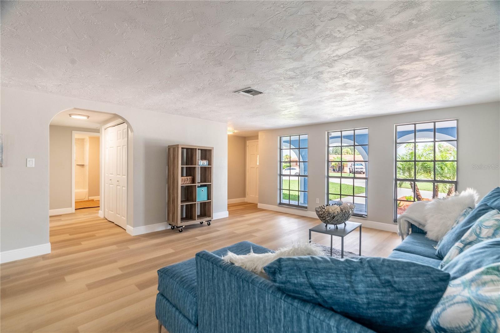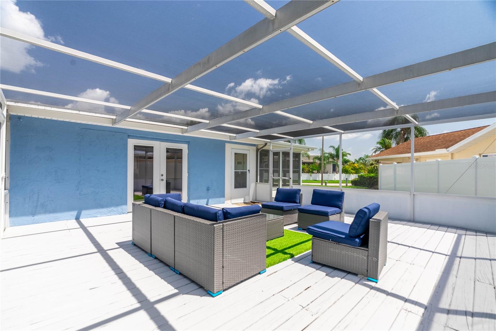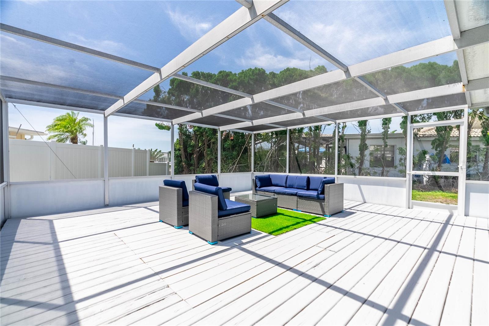 PRICE REDUCED FOR IMMEDIATE SALE and seller's financial loss for all the improvements made are the buyer's gain! If you love the Florida lifestyle, come for a visit (and stay!) in a growing area of New Port Richey. This COMPLETELY RENOVATED (2023) concrete block constructed home is within the Gulf Harbors Floramar community, best known for its private sandy beach for neighborhood residents (optional community membership $180 per year), boat ramp, and located within a few miles of the downtown offering riverfront venues for restaurants, shops, theater. Wow. The premium lot is almost double the size of most others in this community, just under a quarter of an acre, on a corner, and pie-shaped. So much parking for your guests and even temporarily to park an RV or boat on either side of the house (Community Rules do not allow permanent storage of large vehicles visible onsite). NOT WATERFRONT but adjacent properties on both sides are waterfront. Aerial photos capture the beauty of this waterfront area. The home is a 2 Bedroom (potential for 3rd bedroom with some modifications), 2 Bathroom with over 1700 square feet of cooled living space, and a 2 car garage. With this open floor plan, the new owner will have many options for creating space to serve multi-purposes, from a cooled Florida room or office to open dining and living and family areas. The list of upgrades include a NEW 2023 (flat) roof, NEW air conditioning system with expanded duct work, Completely new kitchen with stylish cabinetry, stainless steel new appliances, new quartz countertops, new hot water heater, new washer dryer which is in a cooled laundry room. There is a 2 car garage. The whole place has been freshly painted inside and outside. All new lighting. Electric panels are updated and to code. The bathrooms have been renovated to include exceptionally pleasing stylish cabinets and tile work and all new fixtures. Master bathroom has double vanity. The backyard is simply an oasis. You MUST SEE! An open patio with concrete slab is a great place for the barbecue area. There is also an enormous screened-in outdoor area providing the enjoyment of outdoor living without worries about bugs. What a great place for pets and family members to safely enjoy the outdoors. Add some twinkling lights overhead, maybe a bar, a hot tub and you will be in paradise. This home is worth the time to come see it! No expense has been spared and it is like new - really. Furnishings available. Schedule today - don't wait!