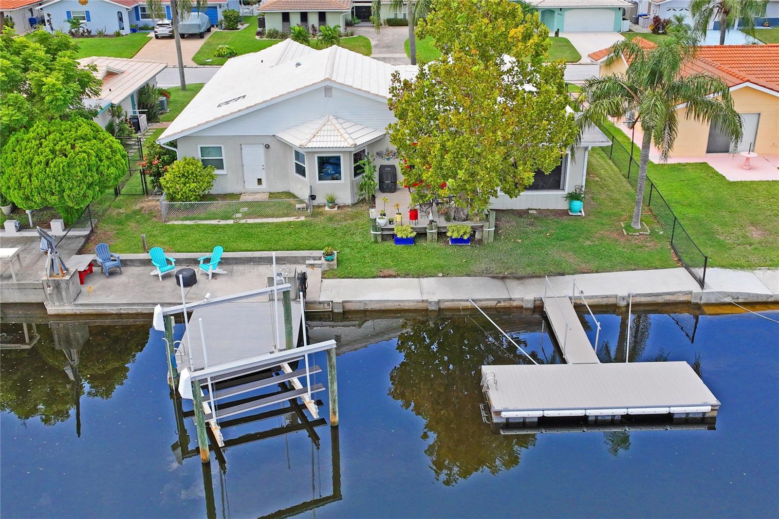 Welcome to your waterfront paradise, where luxurious living meets coastal tranquility! Nestled in the charming, golf cart-friendly community of Gulf Harbors Flor-a-mar, this stunning 3-bedroom, 2-bathroom home, with a flexible 4th room perfect for an office, craft room, or storing your fishing gear, offers the ultimate waterfront lifestyle. With 2,094 sq ft, this spacious home is a haven for water lovers and hobby enthusiasts alike, complete with a private floating dock and boat lift on a deep-water canal, just minutes from the open Gulf of Mexico. Step inside and be greeted by the warmth of real wood flooring, leading you through the inviting interiors. The bedrooms feature luxury vinyl plank flooring, combining elegance with easy maintenance. A pass through gas fireplace adds a cozy touch, warming both the living room and bedroom, creating an intimate yet open atmosphere ideal for both family moments and entertaining guests. The updated kitchen is a chef’s delight, featuring real wood cabinets, granite countertops, slate appliances, and a bar top that overlooks the formal dining space, perfect for hosting dinner parties. Thoughtful updates, including energy-efficient windows, high-impact doors, recessed lighting, and updated fixtures, ensure both style and functionality throughout. Enjoy outdoor living year-round in the spacious screened lanai, perfect for unwinding or entertaining. This impeccably maintained home also offers peace of mind with renovations from 2017, including Hurricane Rated garage doors and windows for added security. Beyond the home, the exclusive Gulf Harbors Beach Club awaits. With white sand shores, cabanas, picnic tables, beach chairs, BBQ grills, and stunning sunset views, this private beach sanctuary offers a lifestyle of relaxation and recreation. Membership is optional at only $200/year per household. For boating enthusiasts, this home is a dream come true. Set sail from your own dock and boat lift for a day of fishing, diving, water sports, shelling, or island exploring—all right out your door. Conveniently located near golf courses, dining, shopping, and just a beer away from the open Gulf, this coastal haven offers a lifestyle beyond compare. This home is more than just a dwelling—it’s an experience. Whether you're seeking a peaceful retreat or the perfect place to entertain, 4918 Forecastle Dr offers a blend of sophistication, serenity, and the timeless beauty of Gulf Coast living. Seller is motivated—bring reasonable offers! Don’t miss this opportunity to make this waterfront haven your own. Schedule your showing today!