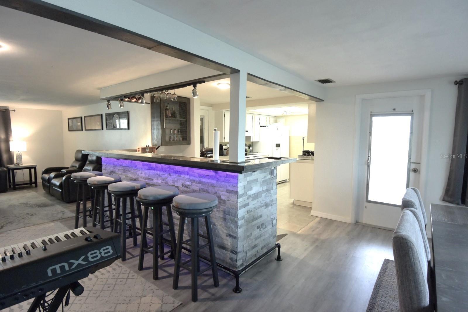 Welcome to your dream home in the desirable Colonial Hills of New Port Richey, Florida! This stunning 1,405 sqft, 2-bedroom, 2-bathroom residence offers the perfect blend of modern luxury and cozy comfort. Step inside to an open floor plan that’s perfect for entertaining, featuring a custom bar complete with LED lighting, a built-in kegerator, and a drink refrigerator. Enjoy the beauty and durability of new LVP flooring throughout the home, along with recently updated, modern bathrooms. Both bedrooms are generously sized, providing ample space for relaxation. Savor your morning coffee or evening sunsets on either the front or rear porch, and enjoy the privacy of a fenced backyard. The over-sized garage offers plenty of storage and workspace. Major updates include a roof installed in 2017, and all windows have been upgraded to impact-resistant for added peace of mind. Conveniently situated just a few blocks from State Rd 54, you’ll find getting around the Tampa Bay area a breeze. This affordable gem is truly one of a kind and won't last long at this price. Don’t miss your chance to own this exceptional home—schedule your showing today before it's gone!